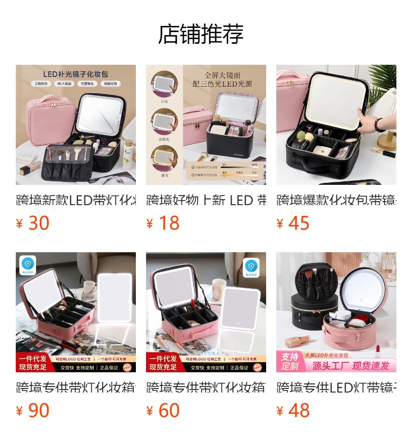 适用场景: 家用收纳 材质: pu 有无拉杆: 无 滚轮样式: 单向轮 开盖方式: 拉链 是否带锁: 否 风格: 清新甜美 品牌: 001 颜色: 黑色LED三色灯光,粉色LED三色灯光 上市年份季节: 2025年春季 重量: 1.05 kg/个 装箱信息:长宽高:36X50X74cm 装箱重量: 22KG 装箱数量:18pcs