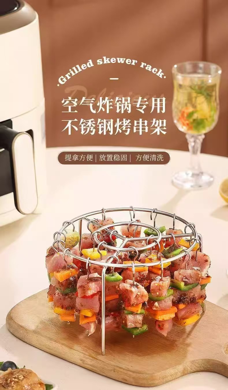 空气炸锅烤架烤箱配件不锈钢立式烤串烤肉烧烤签子烤针厨房家用