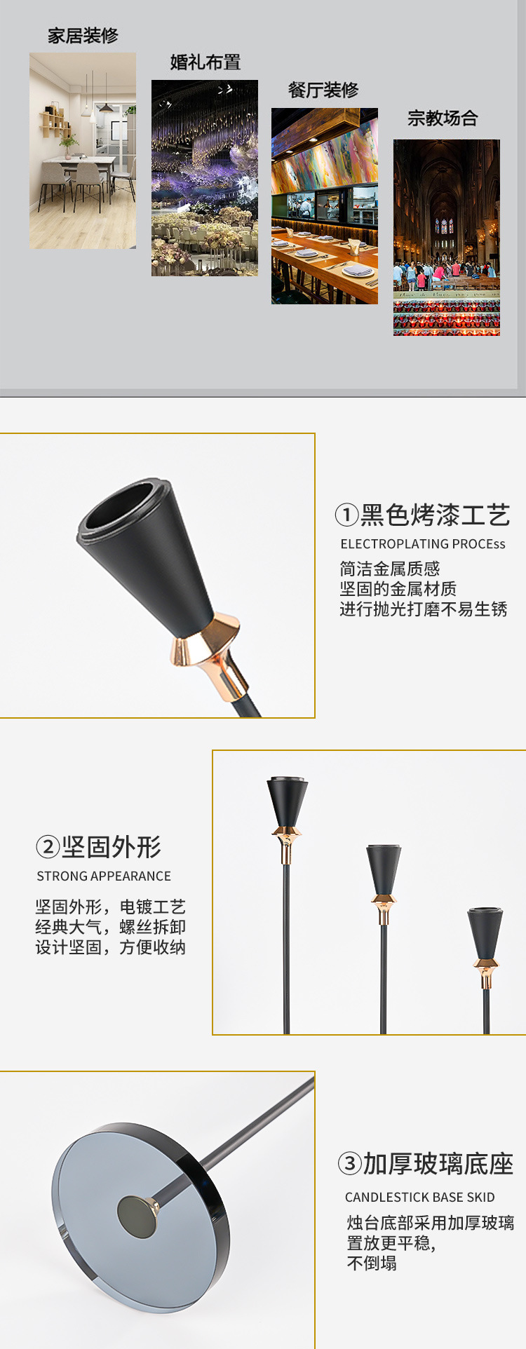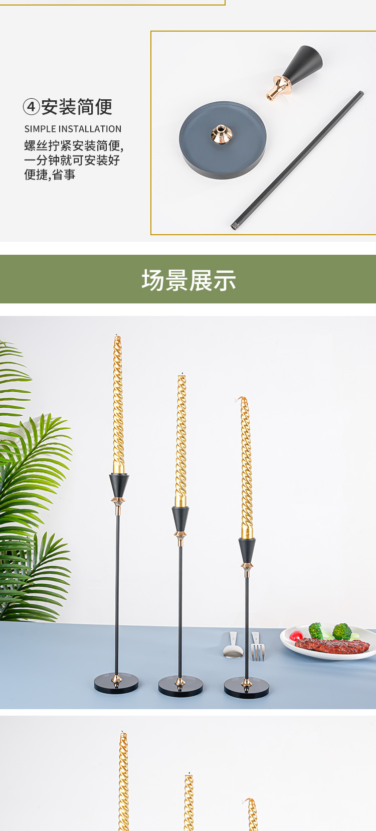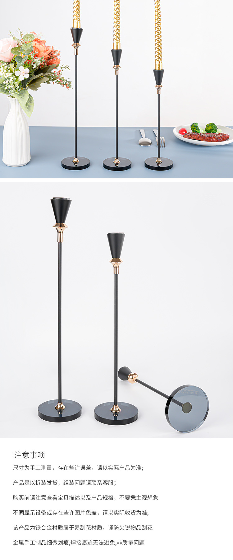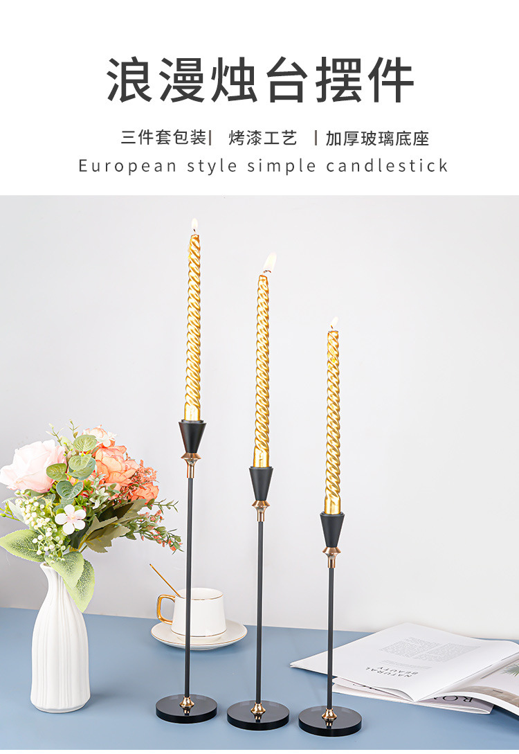 跨境金属烛台高级感三件套西餐浪漫烛光晚餐婚庆道具装饰金属杆蜡 投诉