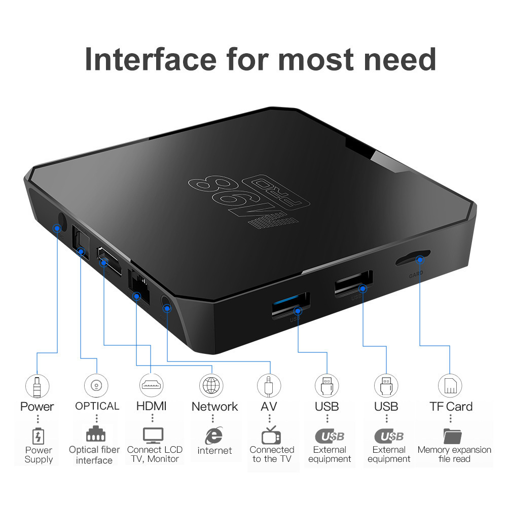 M98PRO安卓网络电视机顶盒视频播放器盒子tvbox新款蓝牙跨境5 English | 投诉