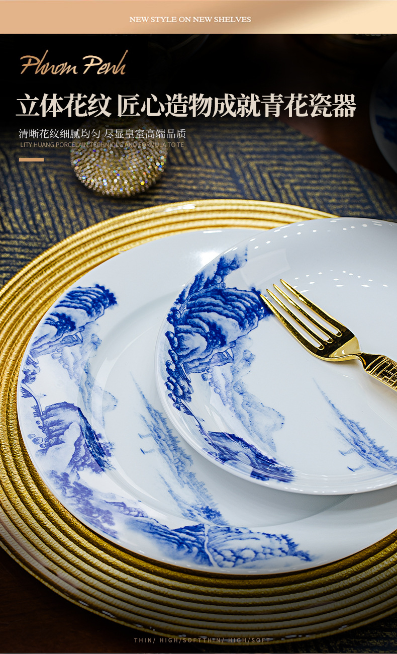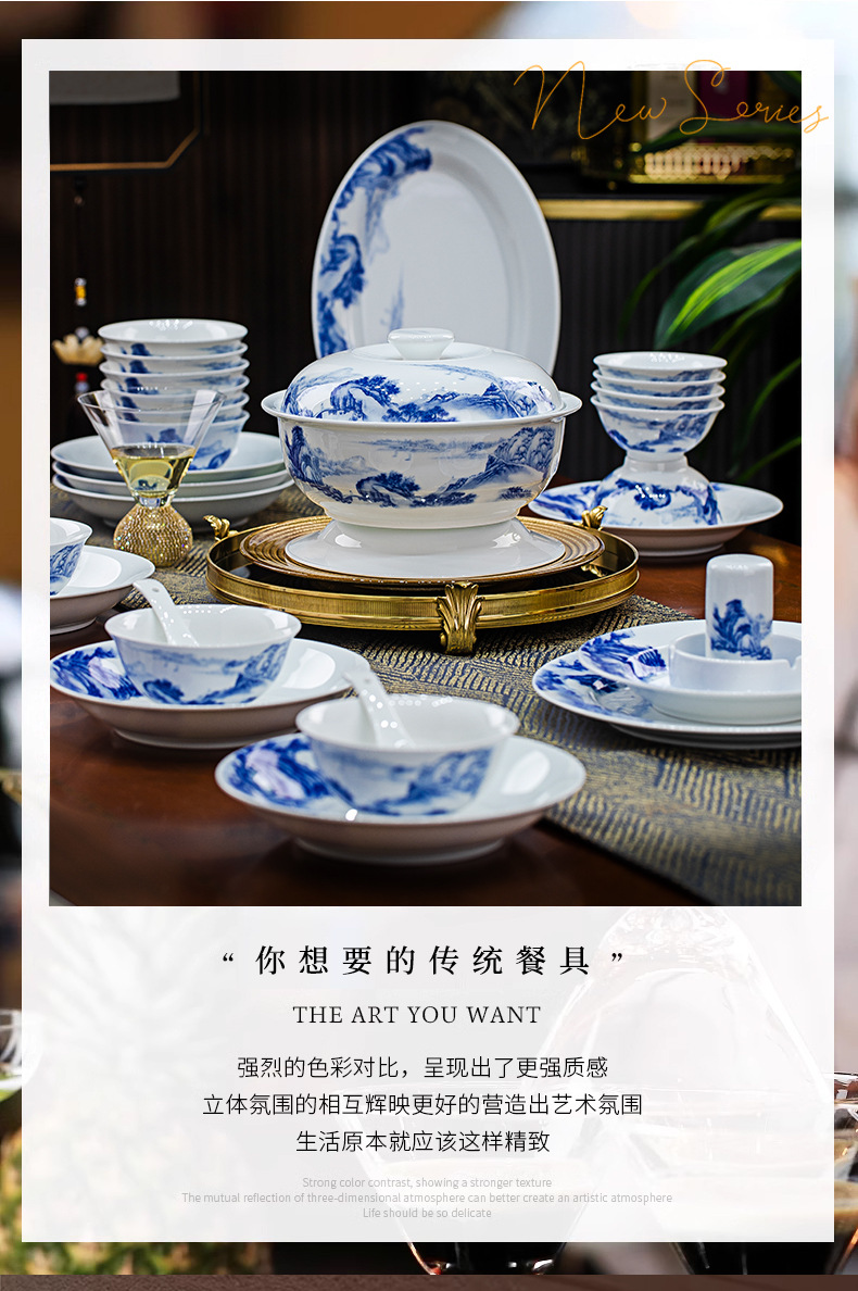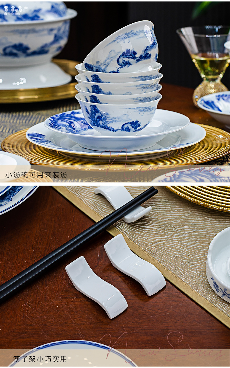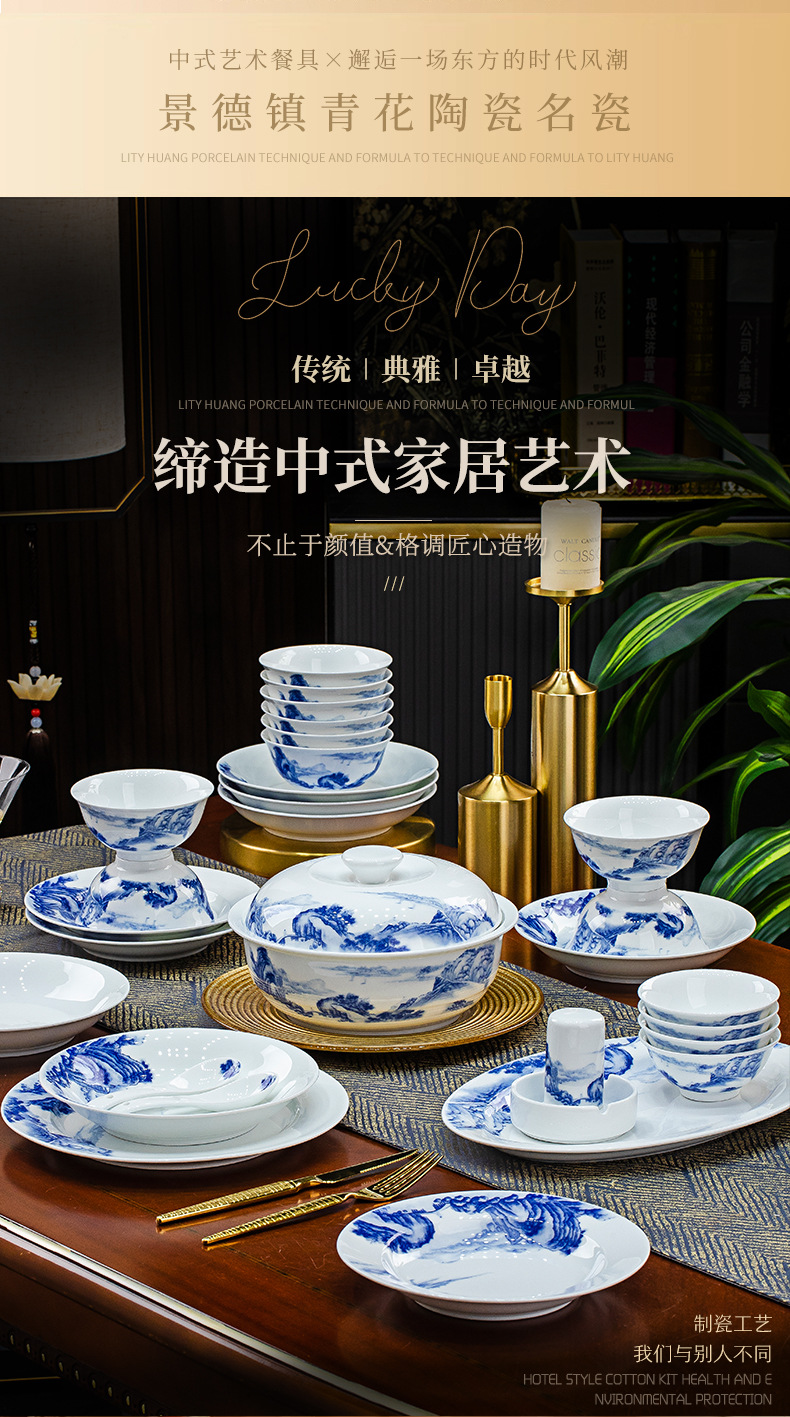 景德镇釉下彩青花瓷餐具套装碗碟套装家用中式高温白瓷乔迁送礼 English | 投诉