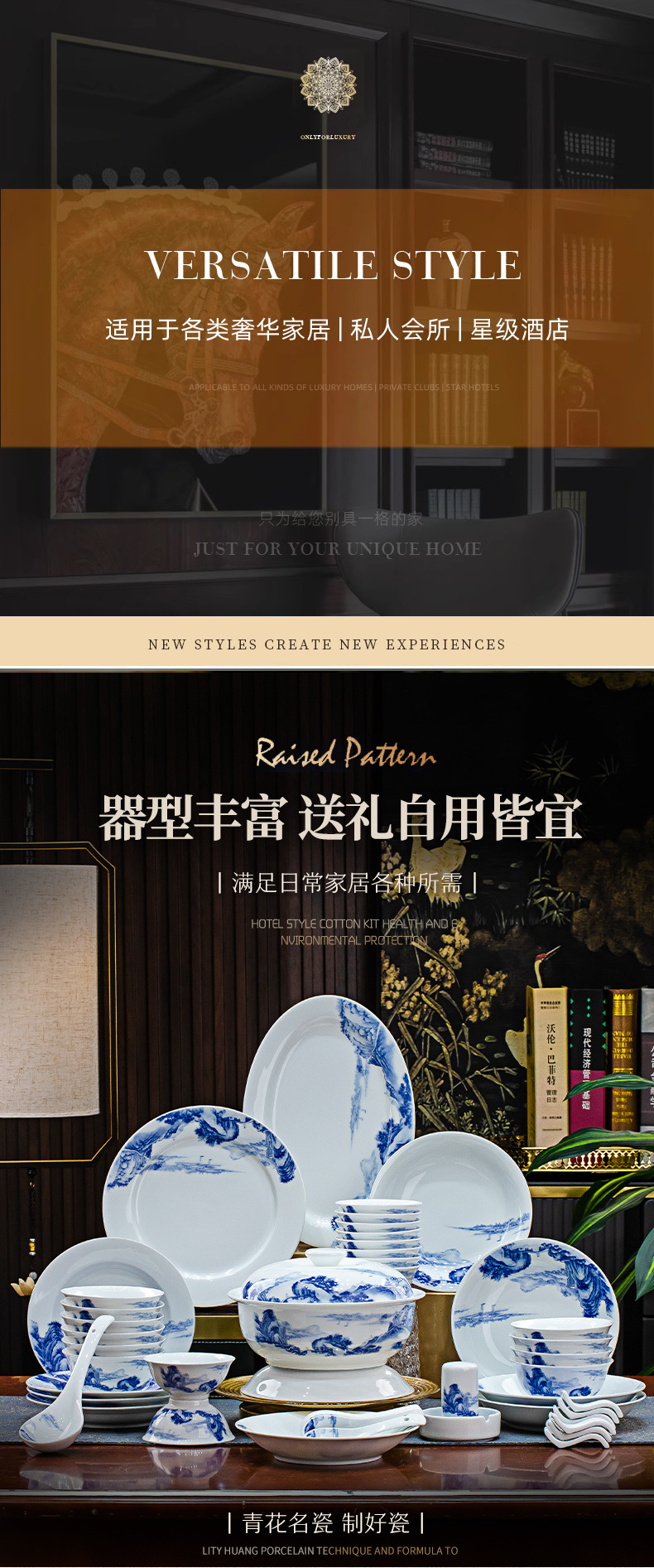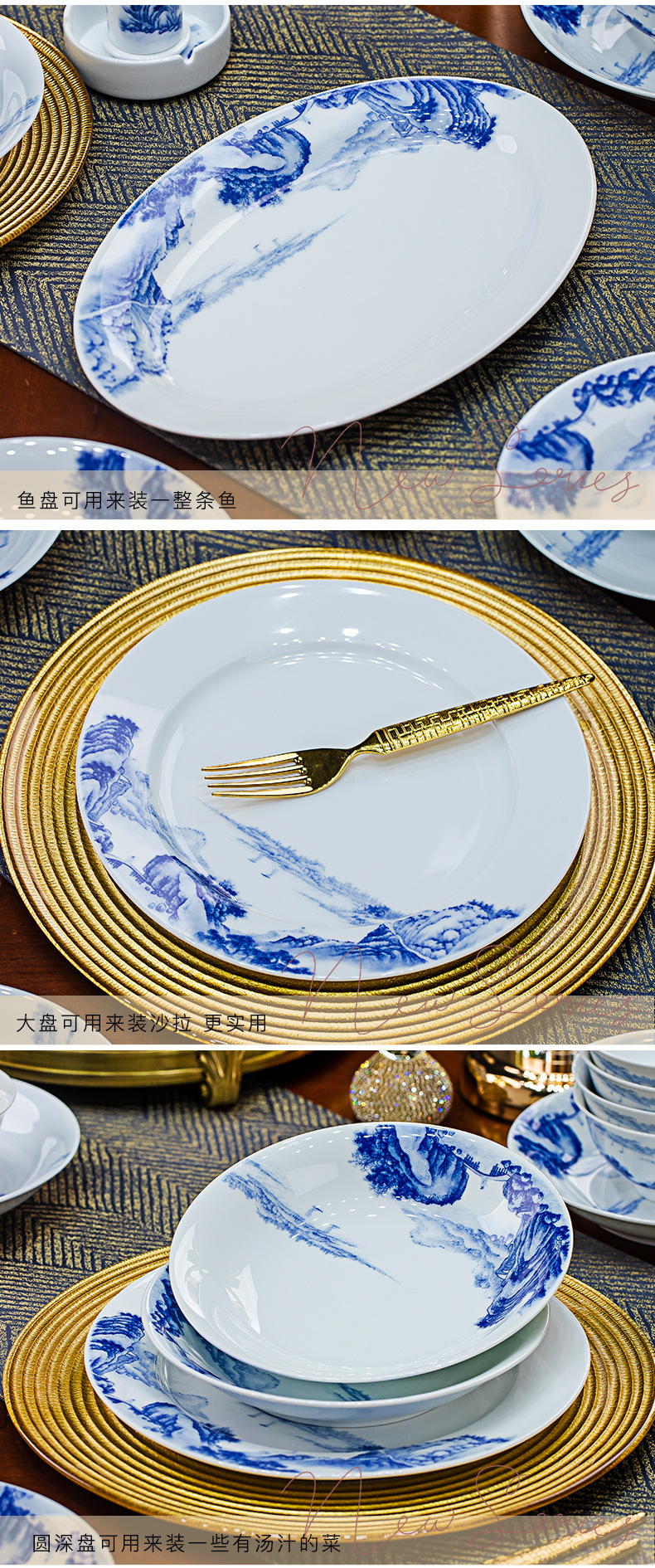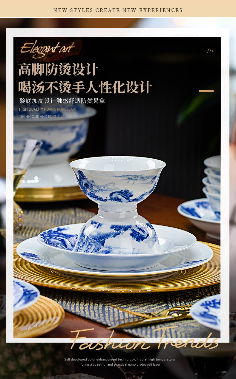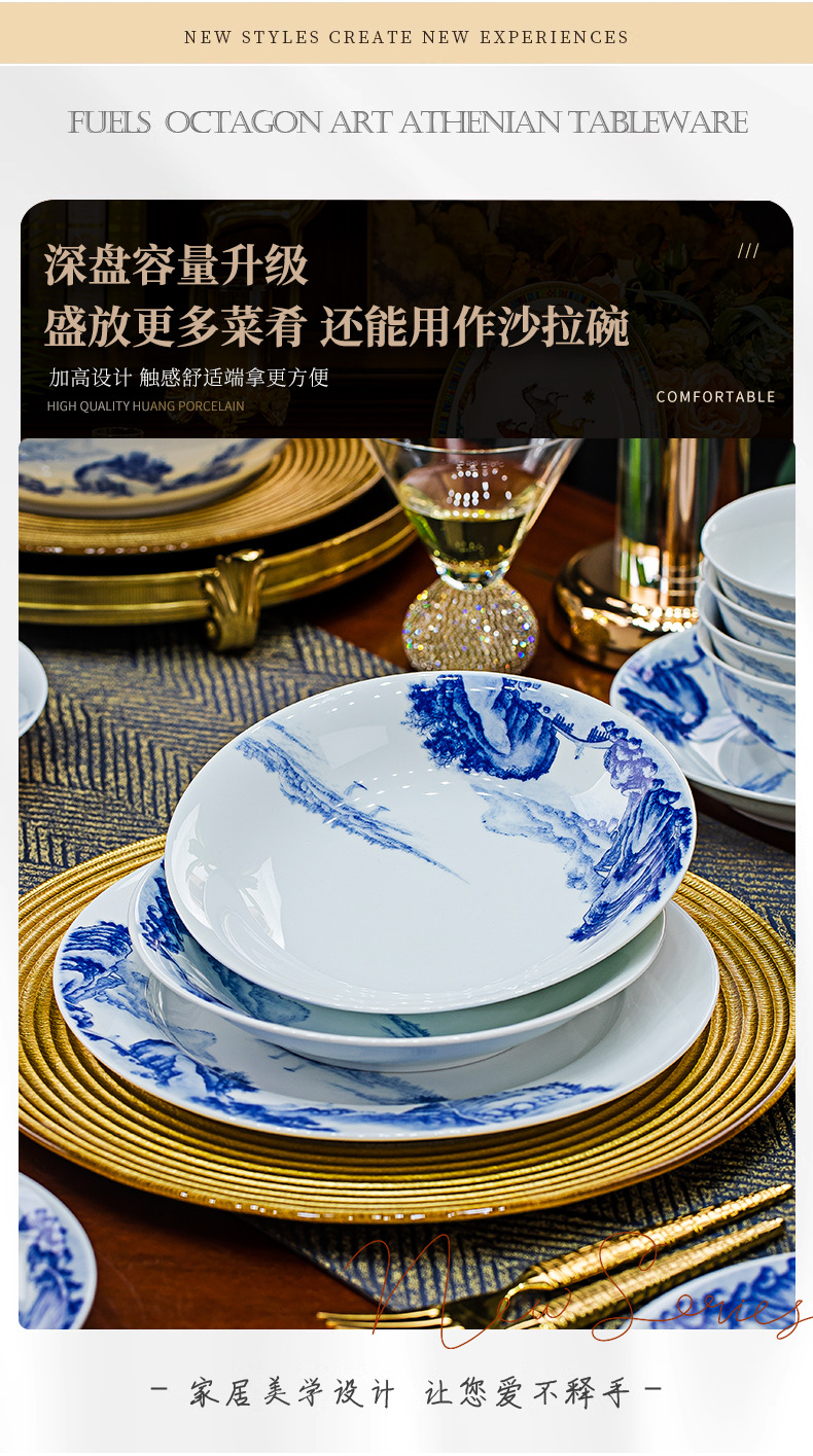 景德镇釉下彩青花瓷餐具套装碗碟套装家用中式高温白瓷乔迁送礼 English | 投诉