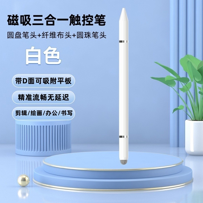 磁吸三合一触控笔可吸附平板电容笔适用于ipad苹果华为手机手写笔