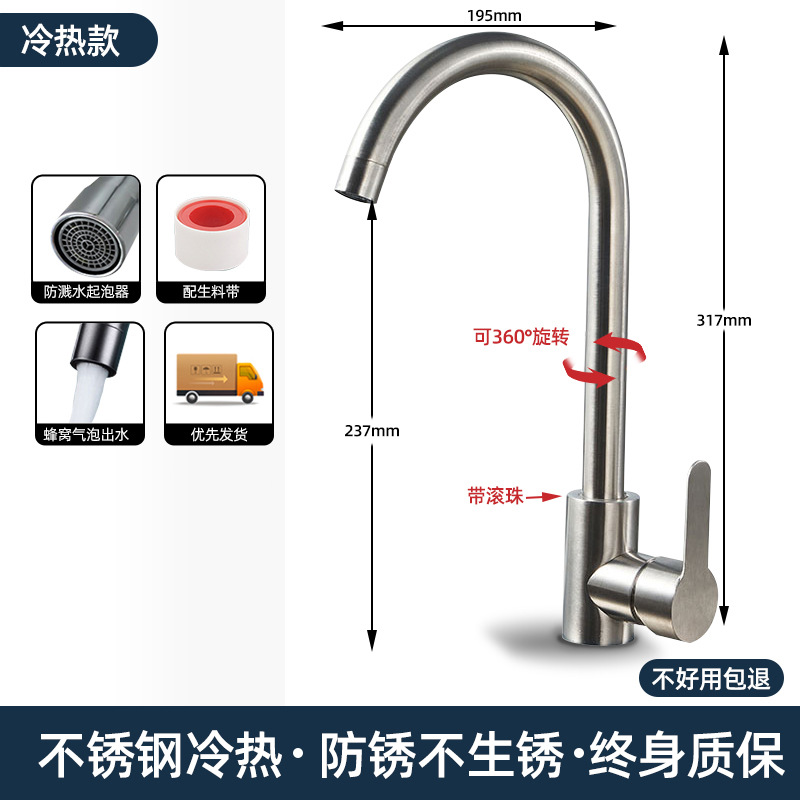 【冷热大弯款】优质304不锈钢厨房水龙头+漏水包退 ¥2950 8857件可售