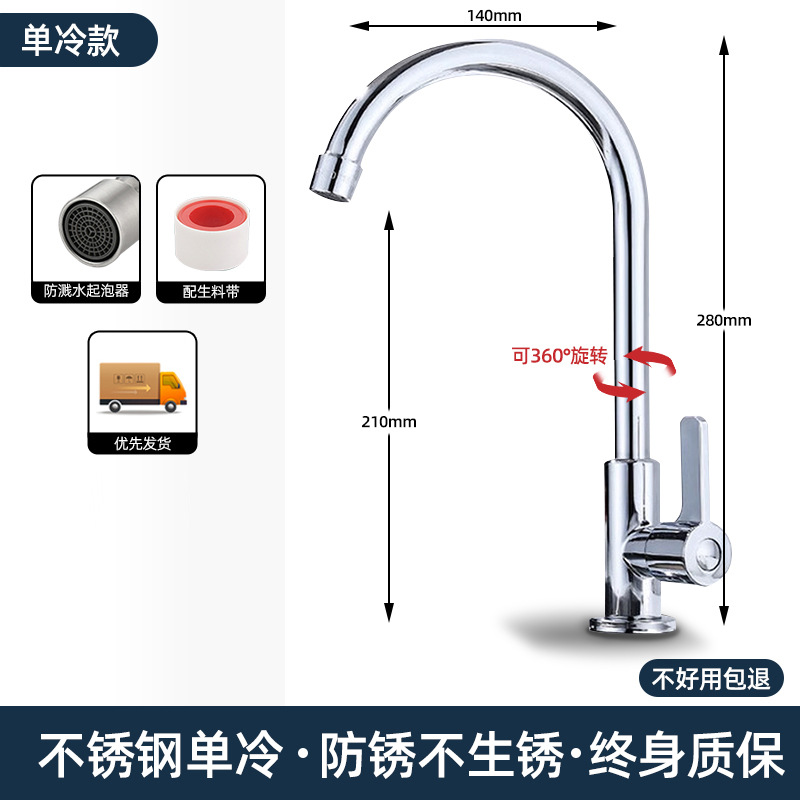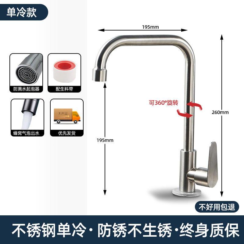 【单冷大弯款】优质304不锈钢厨房水龙头+漏水包退 ¥1750 8878件可售