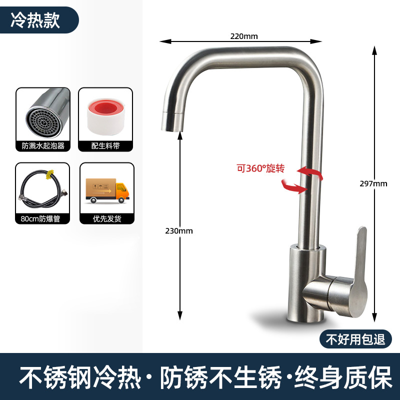 【冷热大弯款】优质304不锈钢厨房水龙头+80cm防爆管+漏水包退 ¥3550 8843件可售