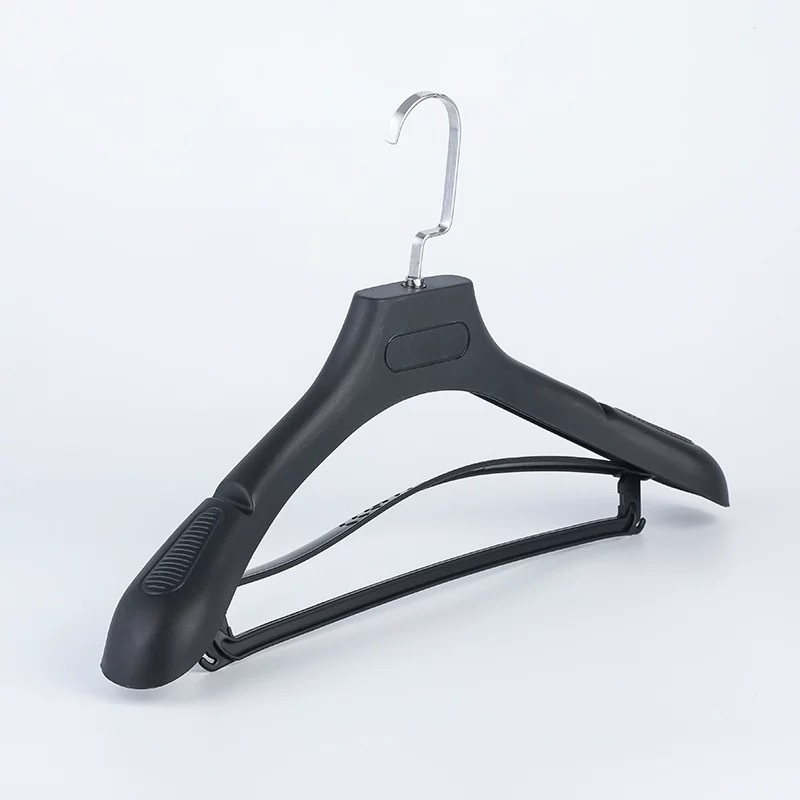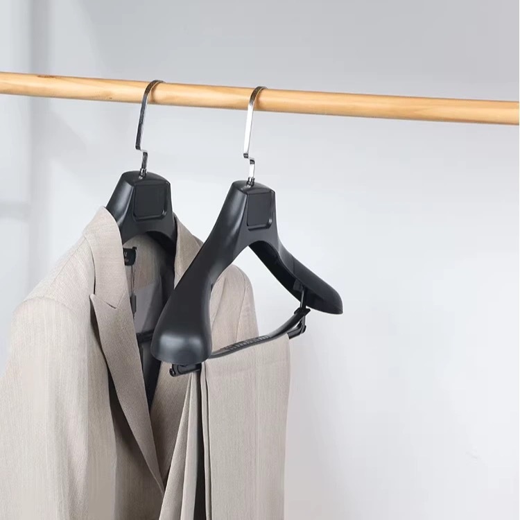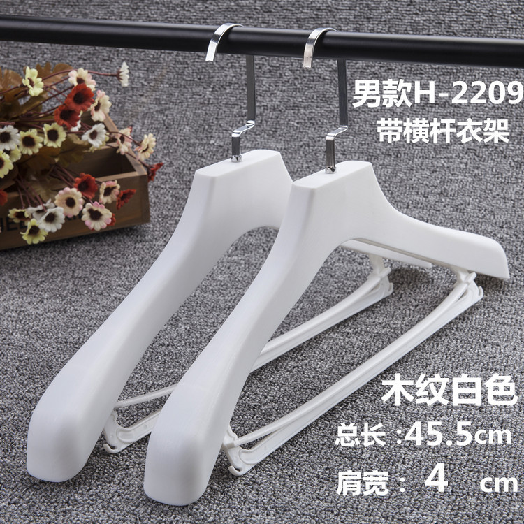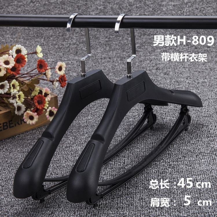 带横杆的西装衣架,做工精细,用料扎实,不是薄的那种。肩部两头的磨砂和宽肩设计,防滑无痕,不用担心衣服会起包