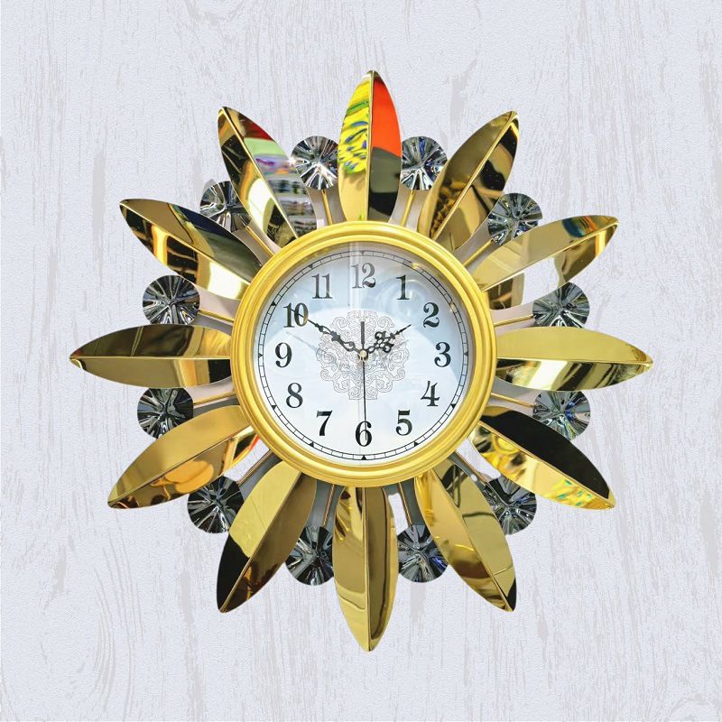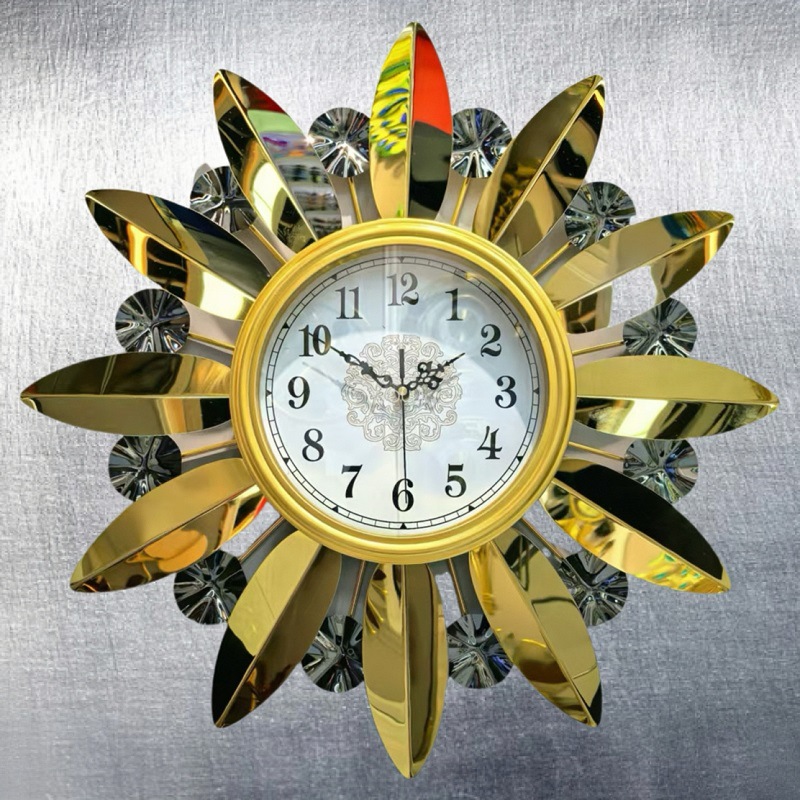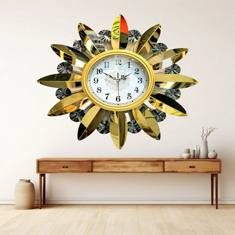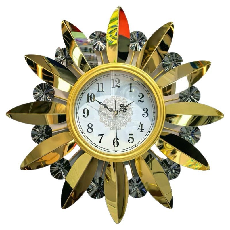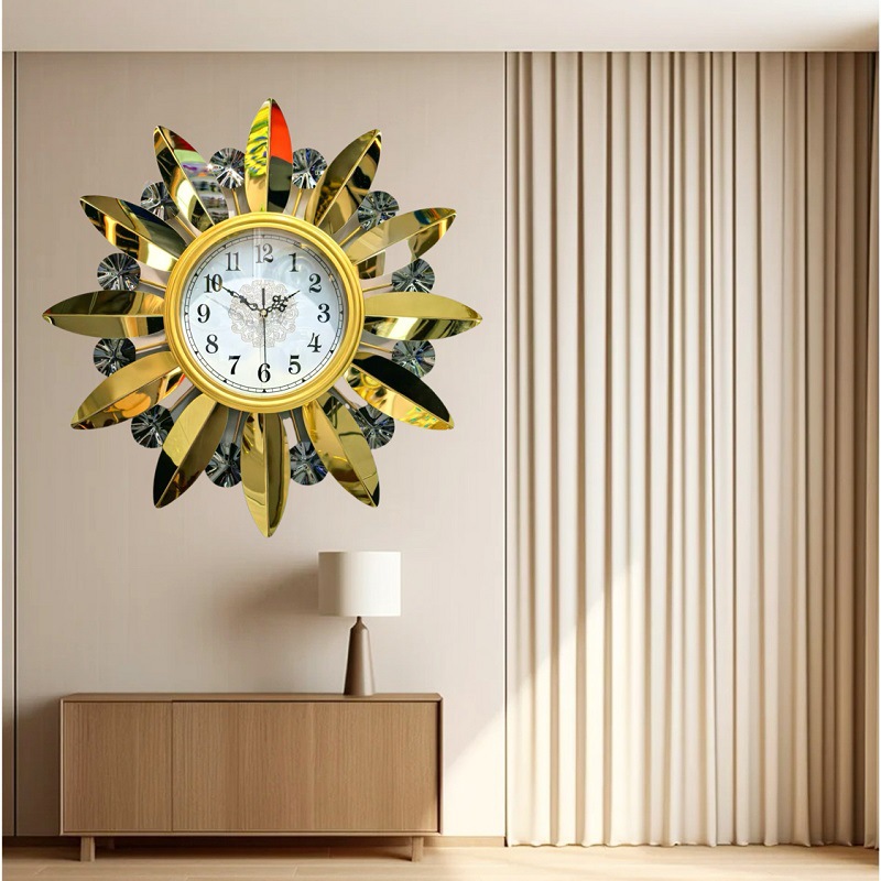 简约大方金色仿金属质感时尚钟表 高档镜面装饰挂钟客厅挂墙钟表