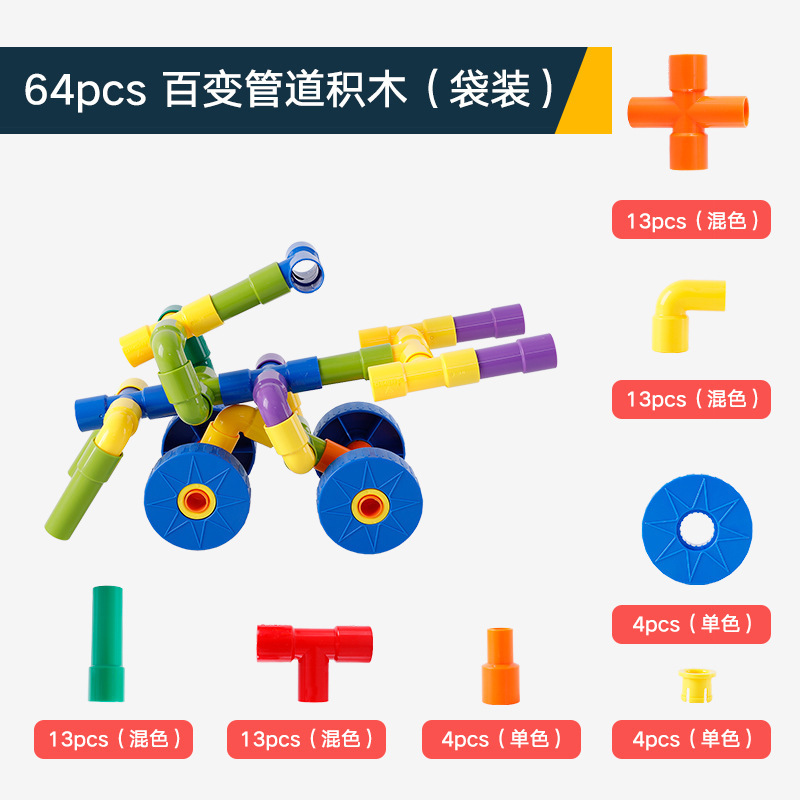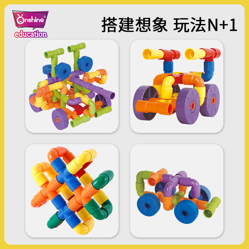onshine水管塑料积木拼插管道儿童3玩具6-7-8周岁9男孩子女益智力