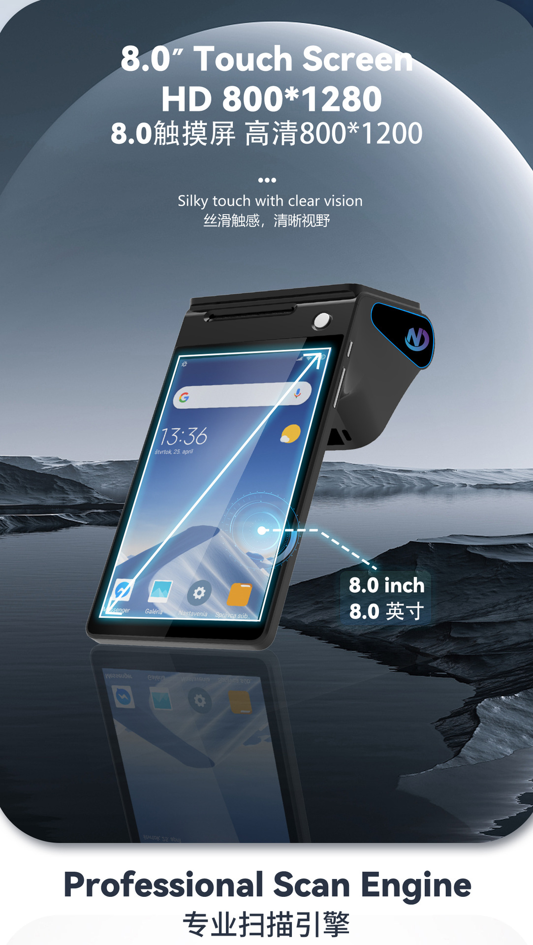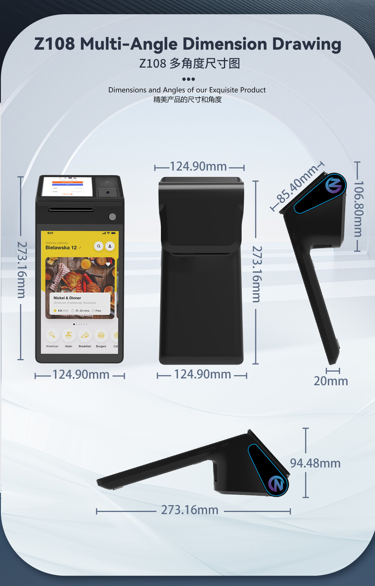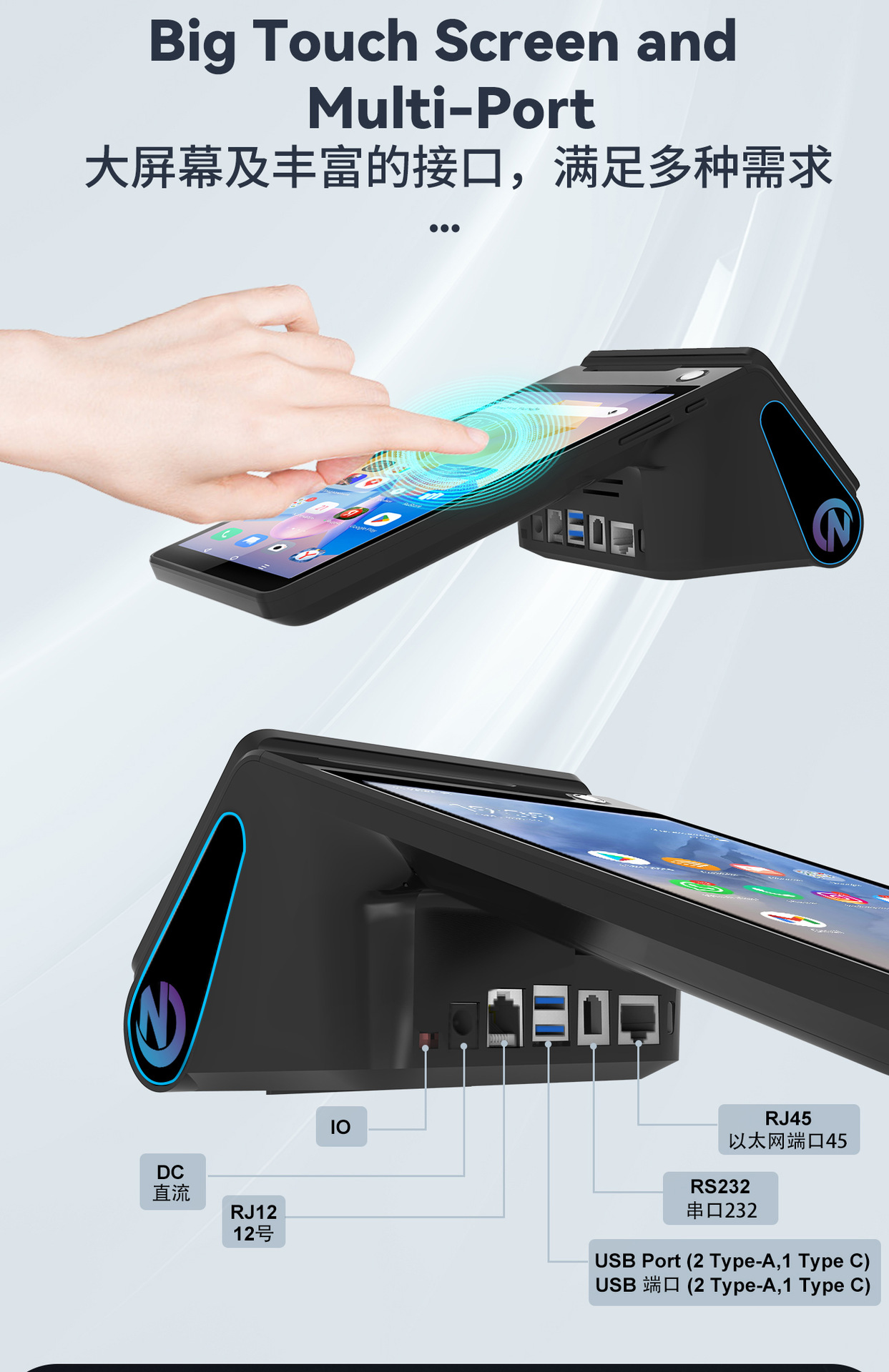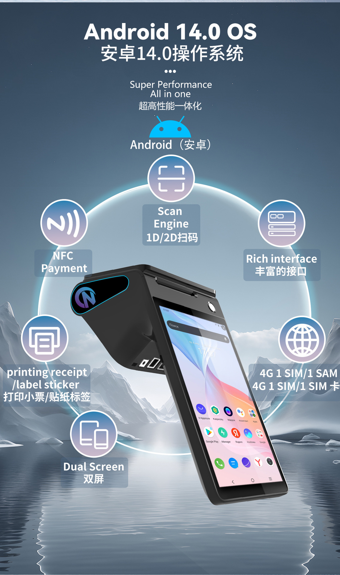 跨境直营双屏幕手持收银打印机餐厅手持收银机酒店收银打印一体机 English | 投诉