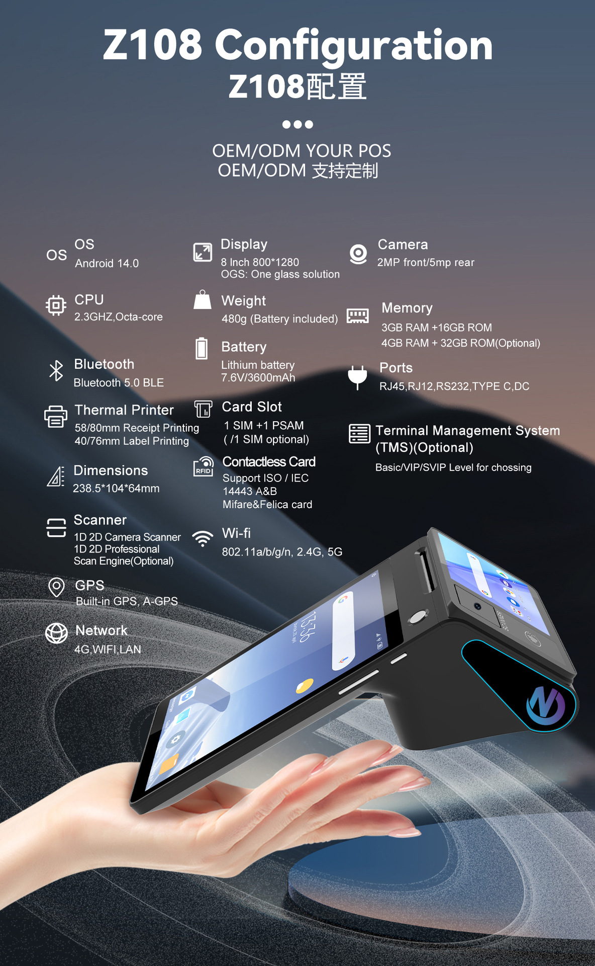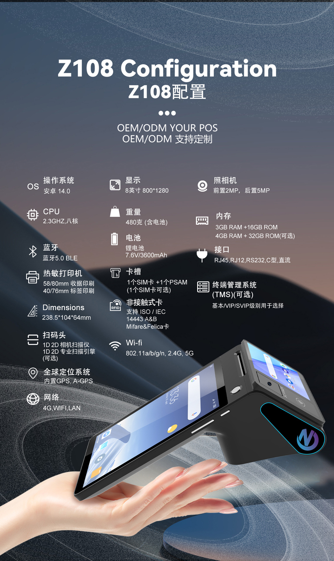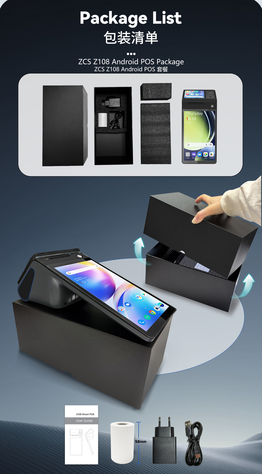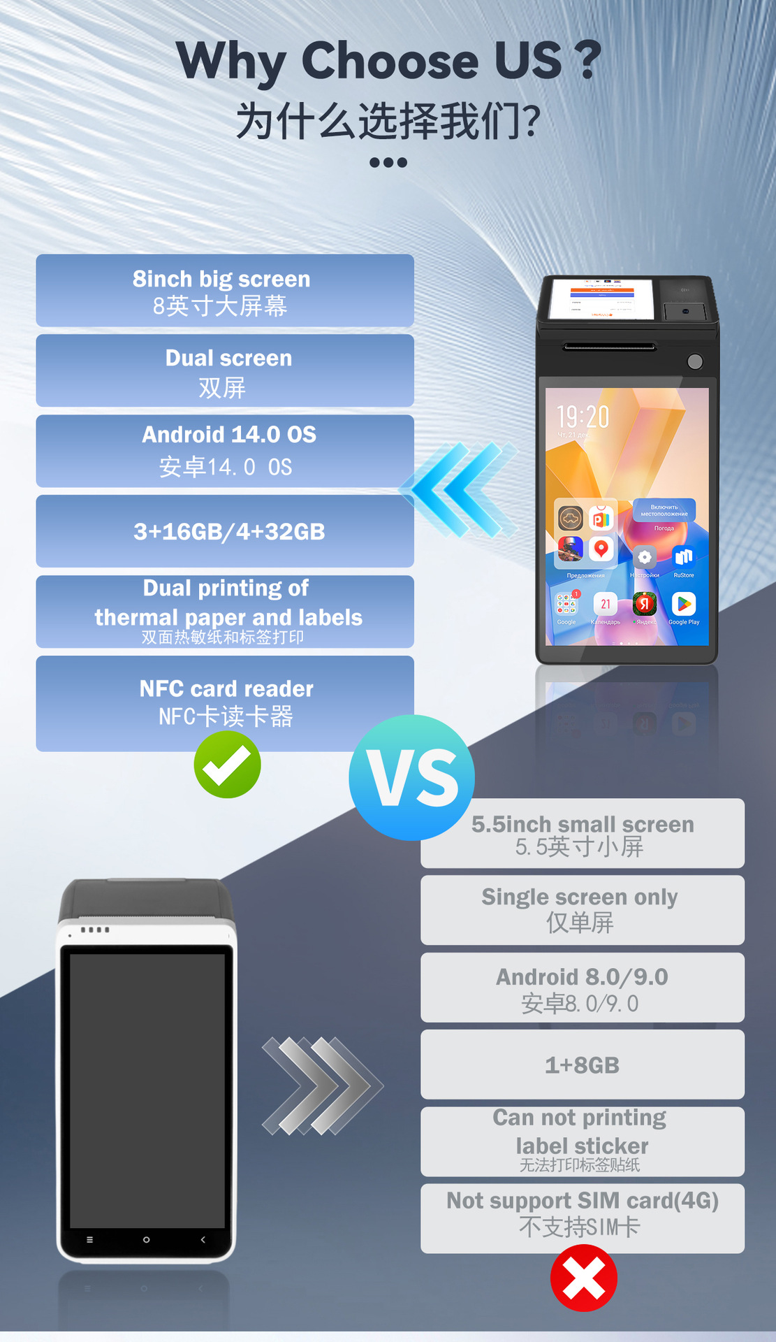 跨境直营双屏幕手持收银打印机餐厅手持收银机酒店收银打印一体机 English | 投诉
