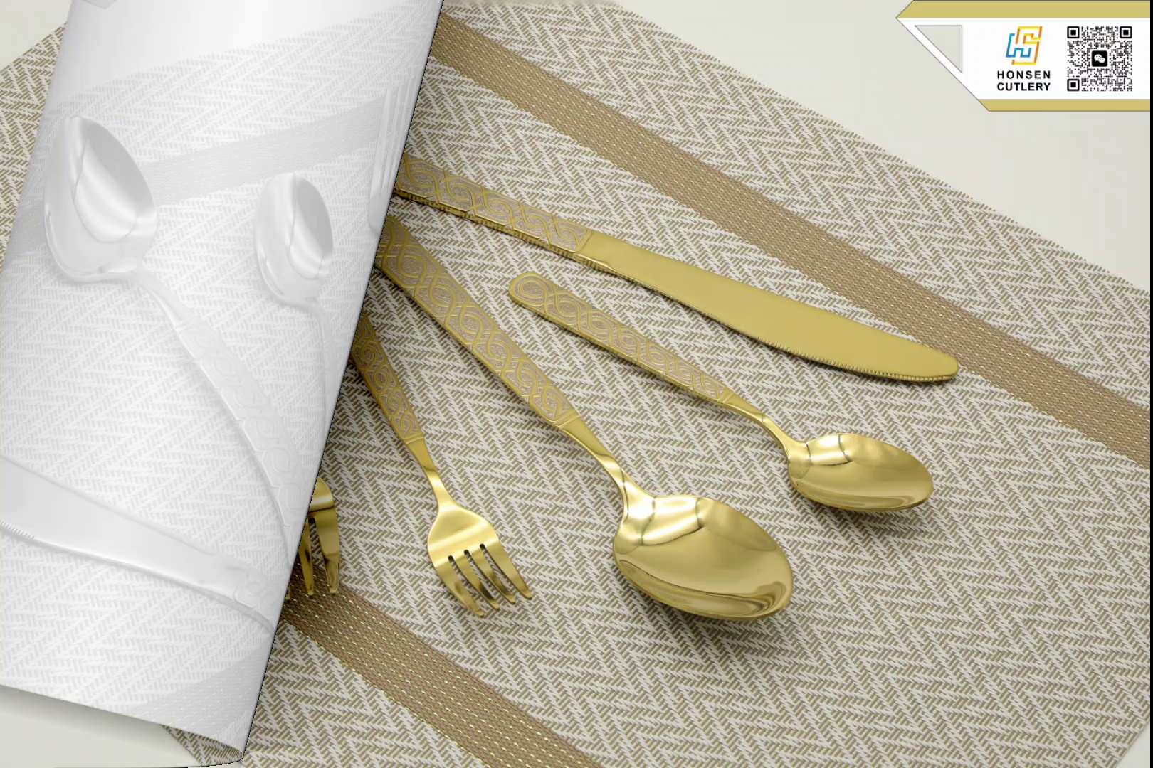 HONSEN鸿盛镀金喷砂不锈钢西餐具刀叉勺调羹汤匙厨房用品CS1002