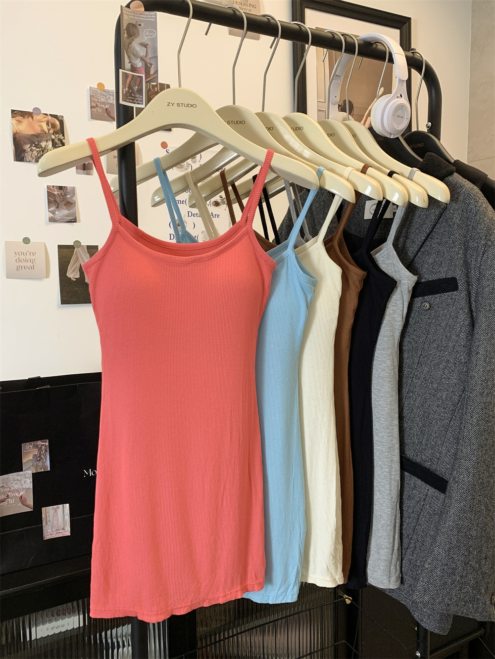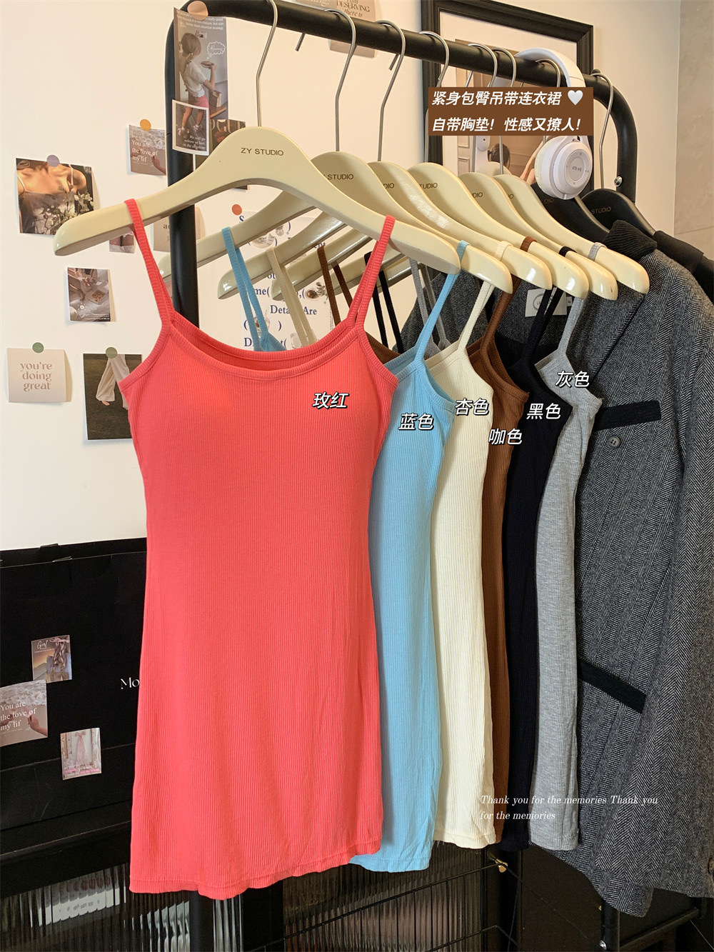 6881纯欲性感带胸垫吊带连衣裙女夏季高级感气质修身显瘦包臀短裙 English | 投诉