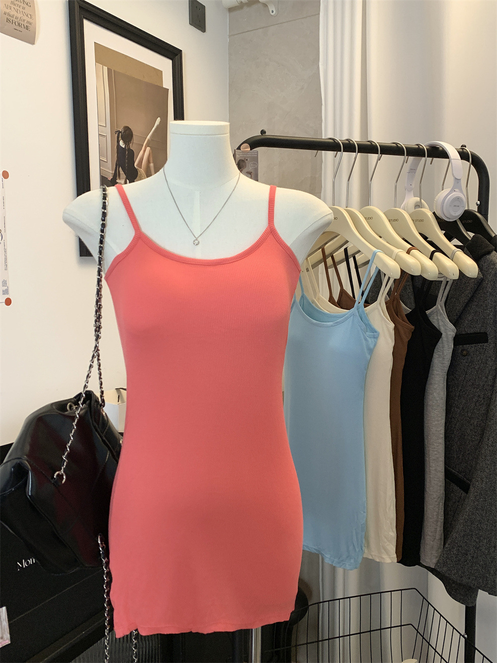 6881纯欲性感带胸垫吊带连衣裙女夏季高级感气质修身显瘦包臀短裙