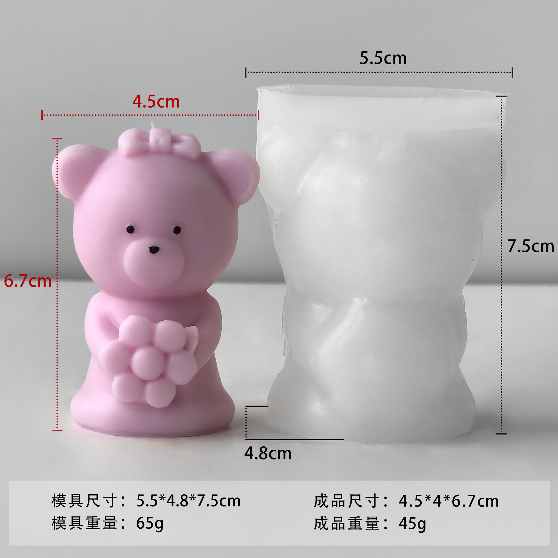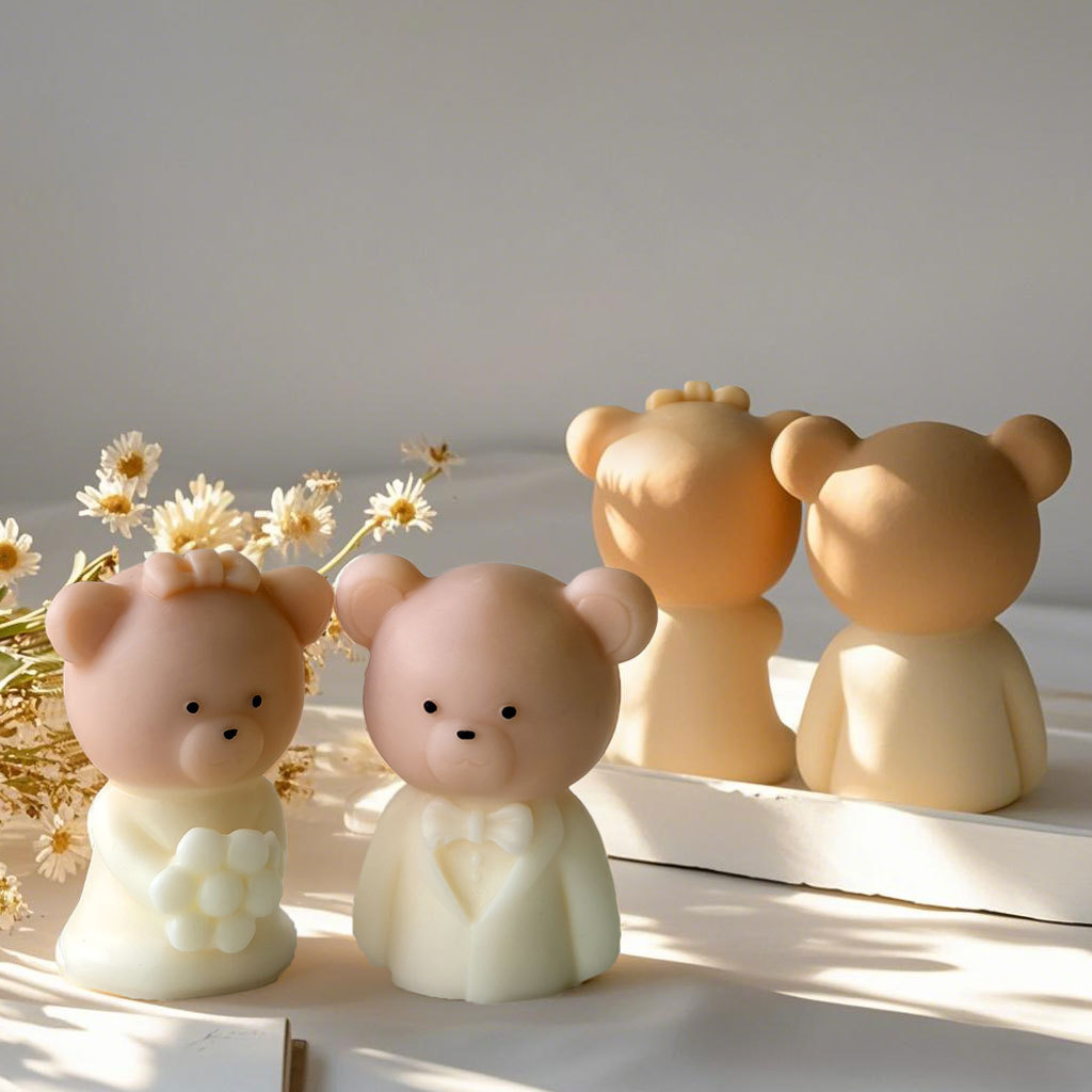 卡通小熊蜡烛石膏硅胶模具diy情人节小熊蜡烛蛋糕模具