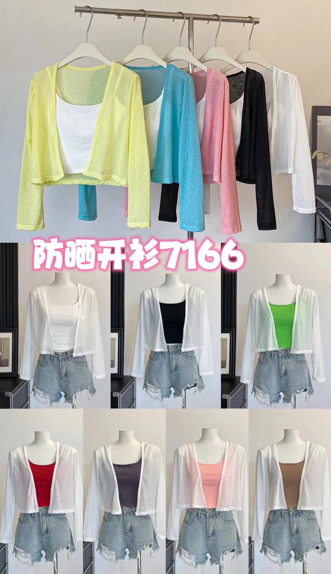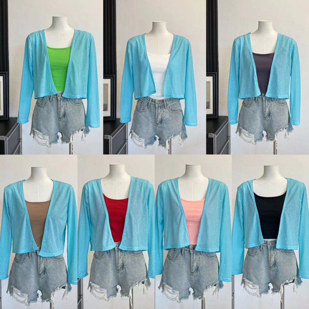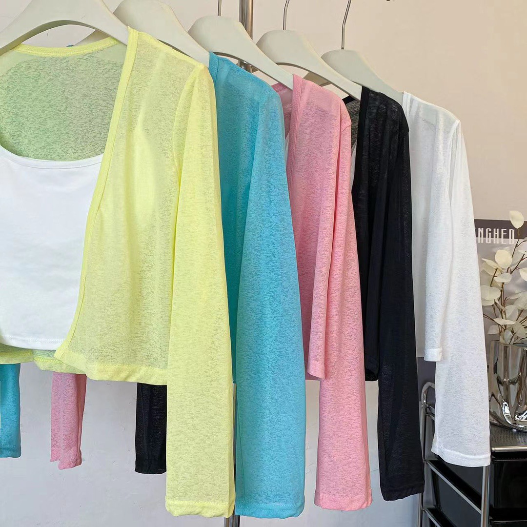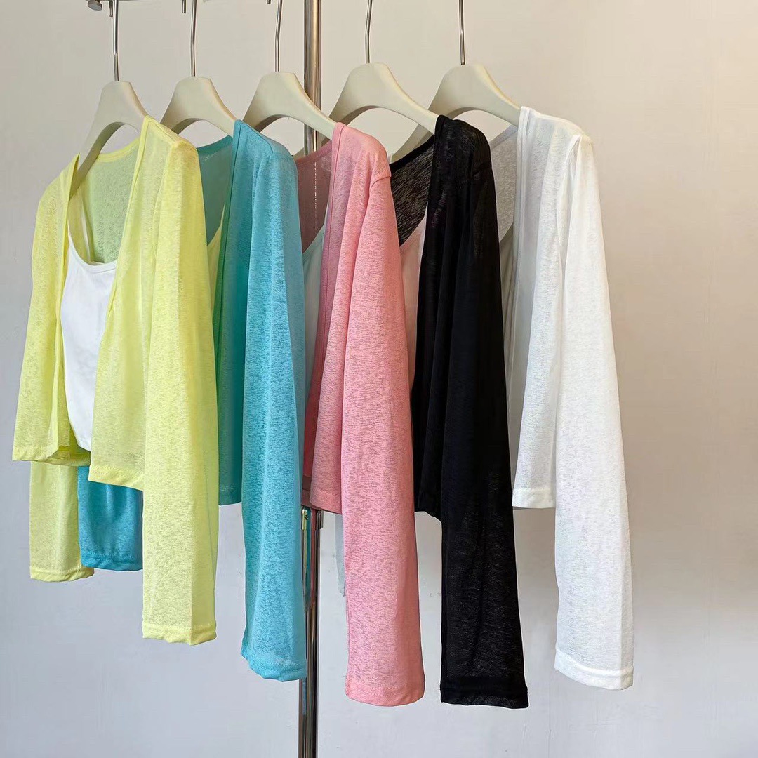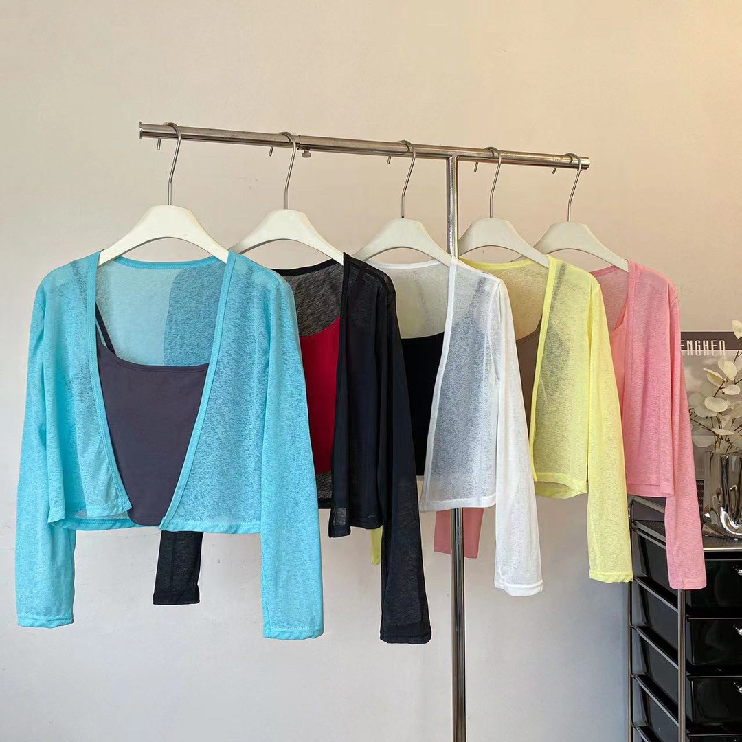 版型: 宽松型 衣长: 短款(40cm《衣长≤50cm) 上市年份/季节: 2024年夏季 颜色: 白色(单开衫),黑色(单开衫),黄色(单 尺码: 均码 货号: 7166 面料名称: 氨纶 风格: 清新风 流行元素: 透视 风格类型: 清新甜美 重量: 0.1 kg/件