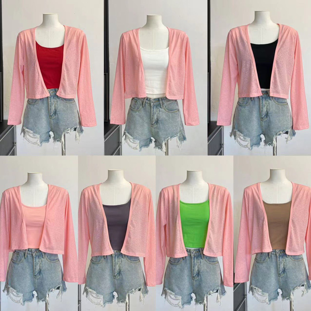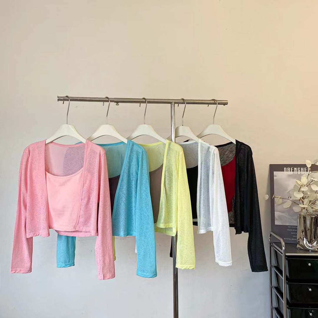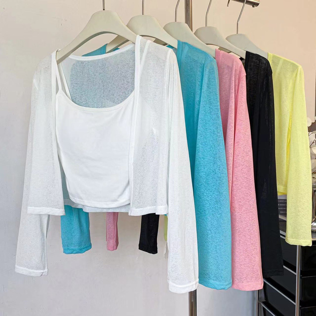薄款防晒开衫女夏季辣妹吊带披肩外搭罩衣坎肩短款百搭空调外套 English | 投诉