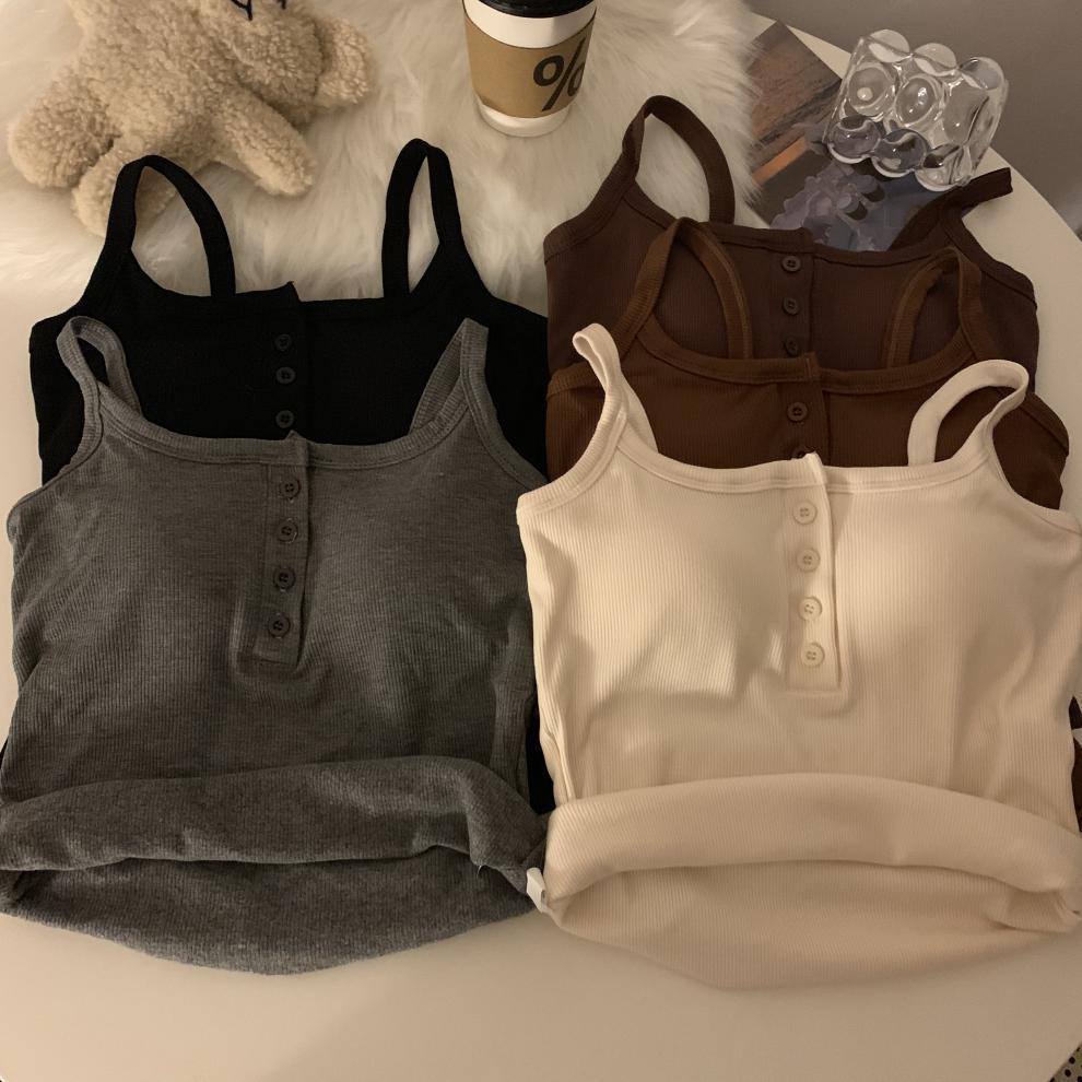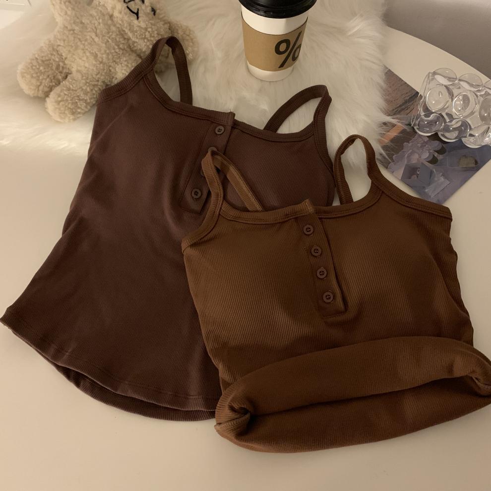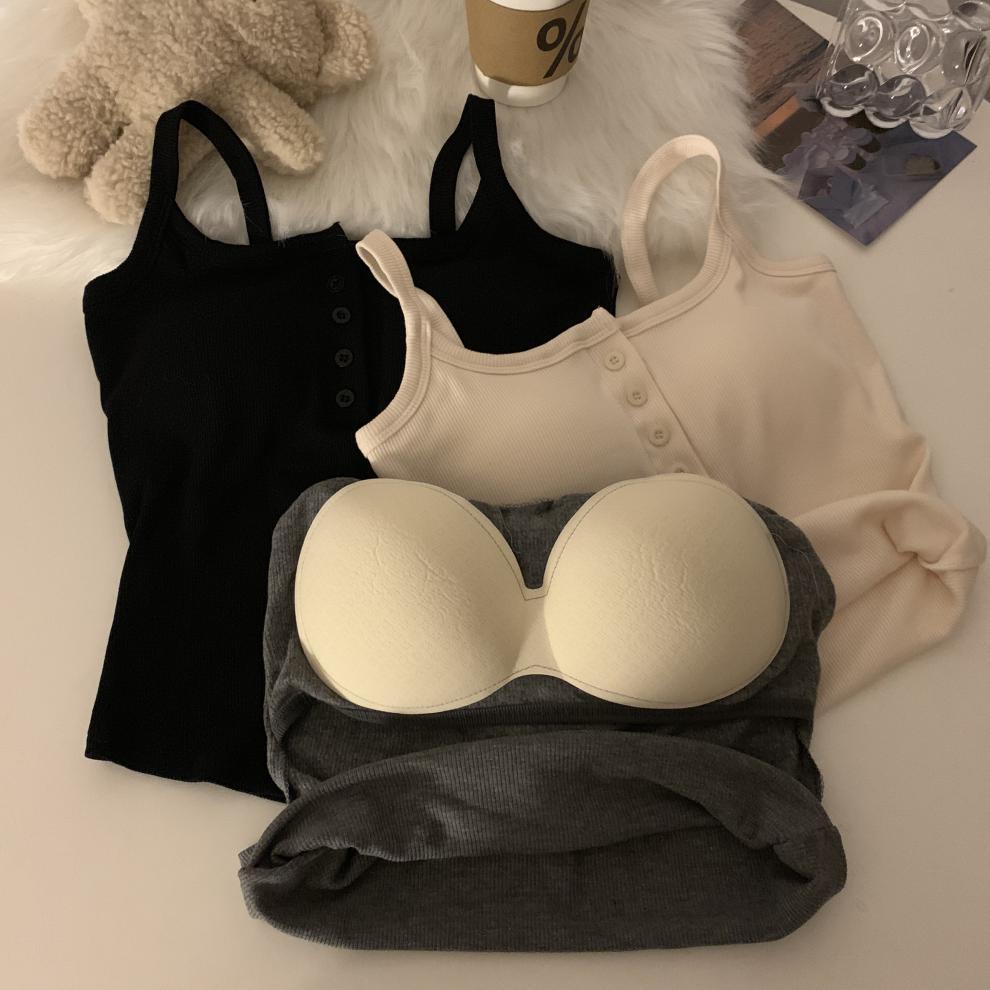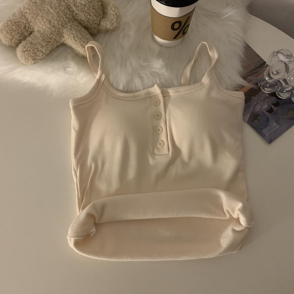 9674#秋冬磨毛无袖打底吊带背心辣妹保暖内搭带胸垫美背短款上衣 English | 投诉