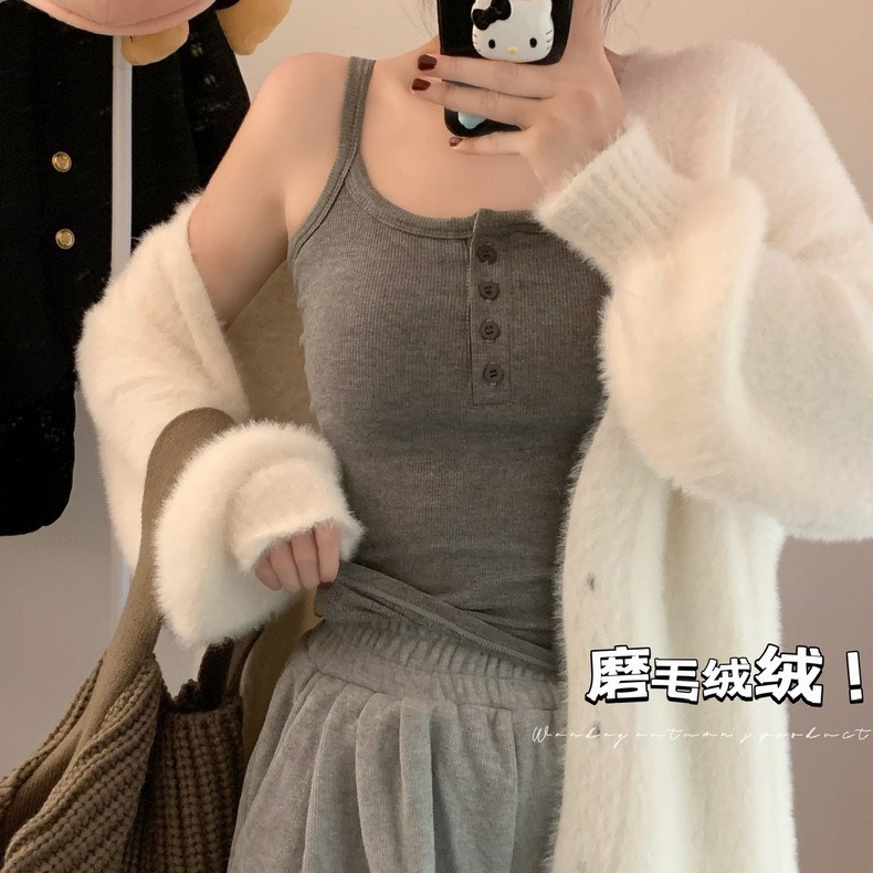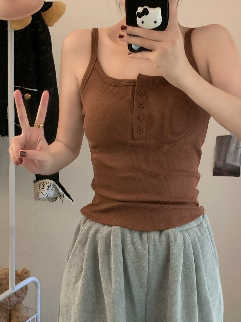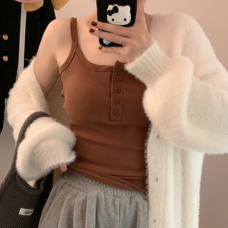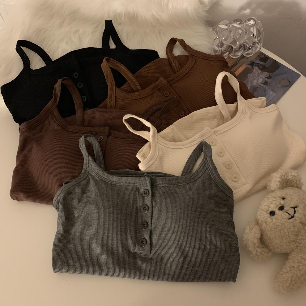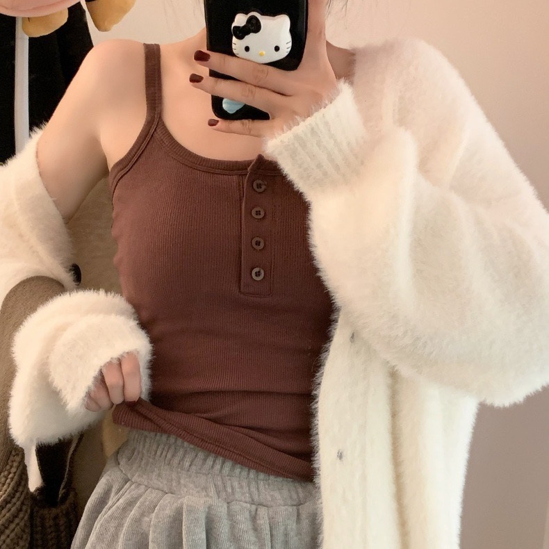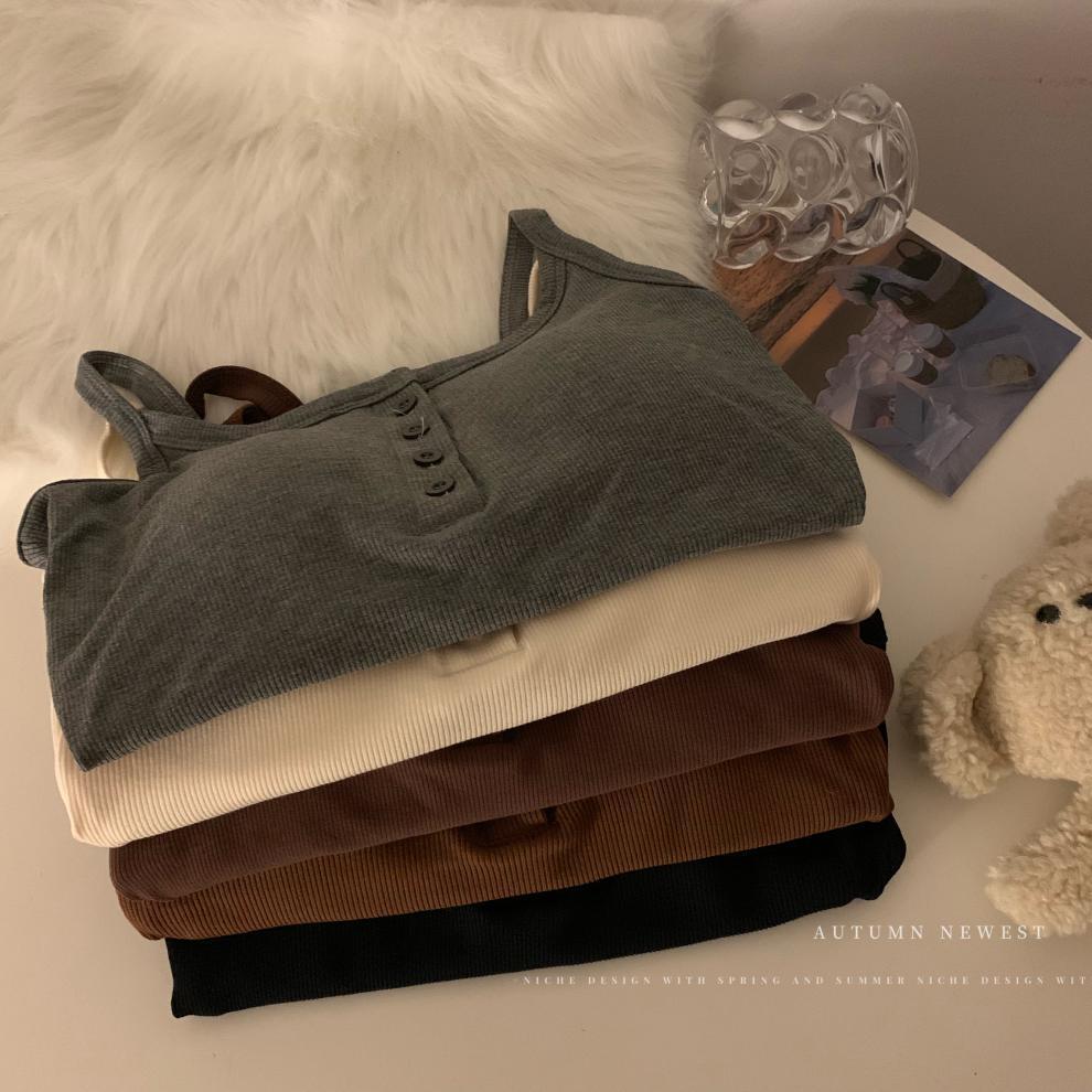 9674#秋冬磨毛无袖打底吊带背心辣妹保暖内搭带胸垫美背短款上衣 English | 投诉