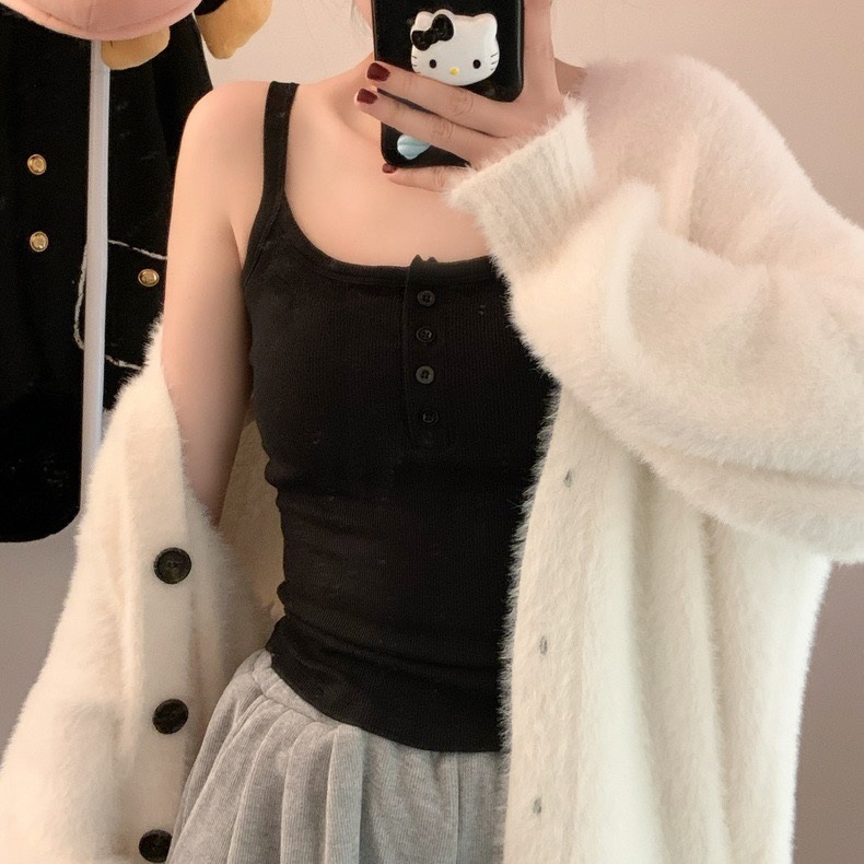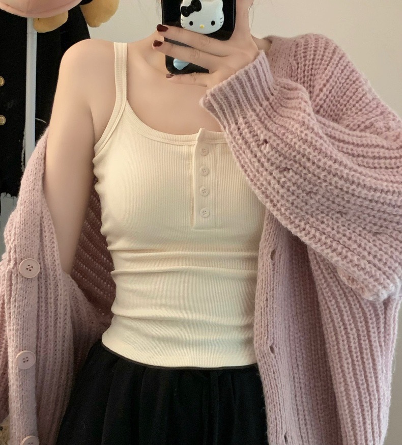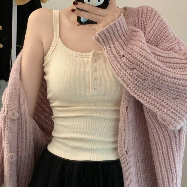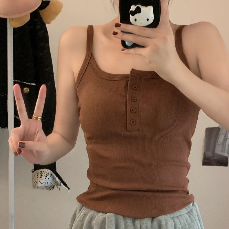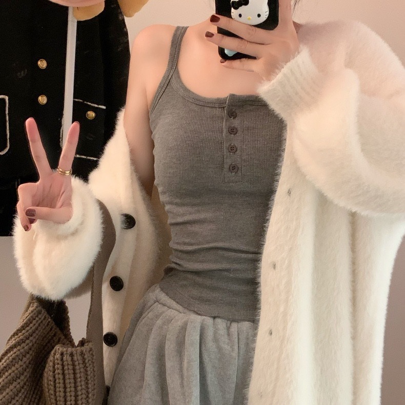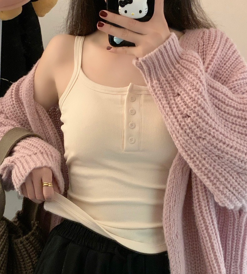 9674#秋冬磨毛无袖打底吊带背心辣妹保暖内搭带胸垫美背短款上衣 English | 投诉