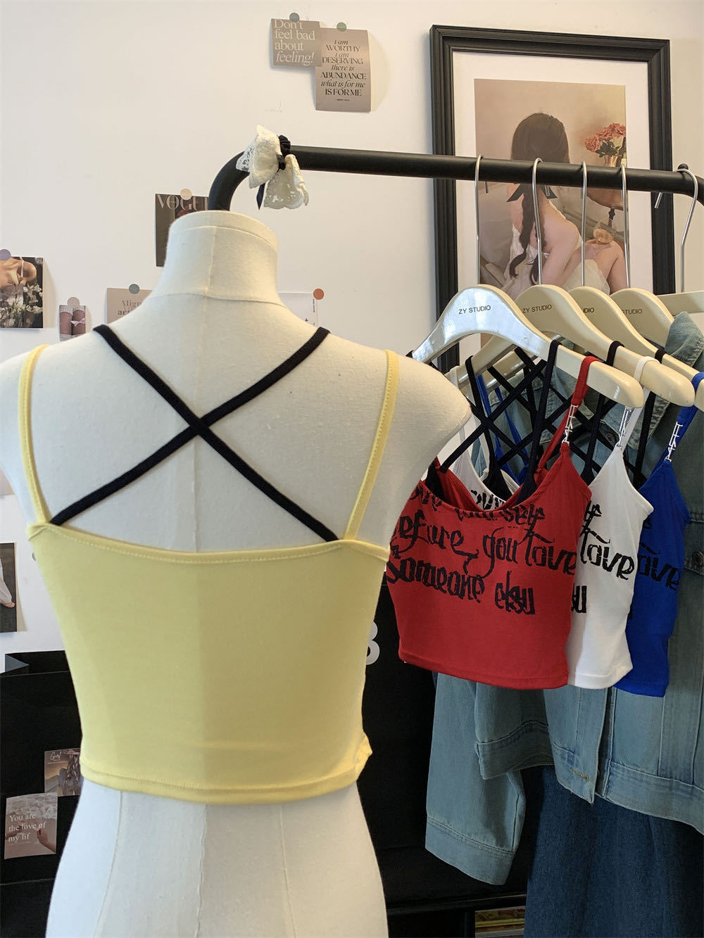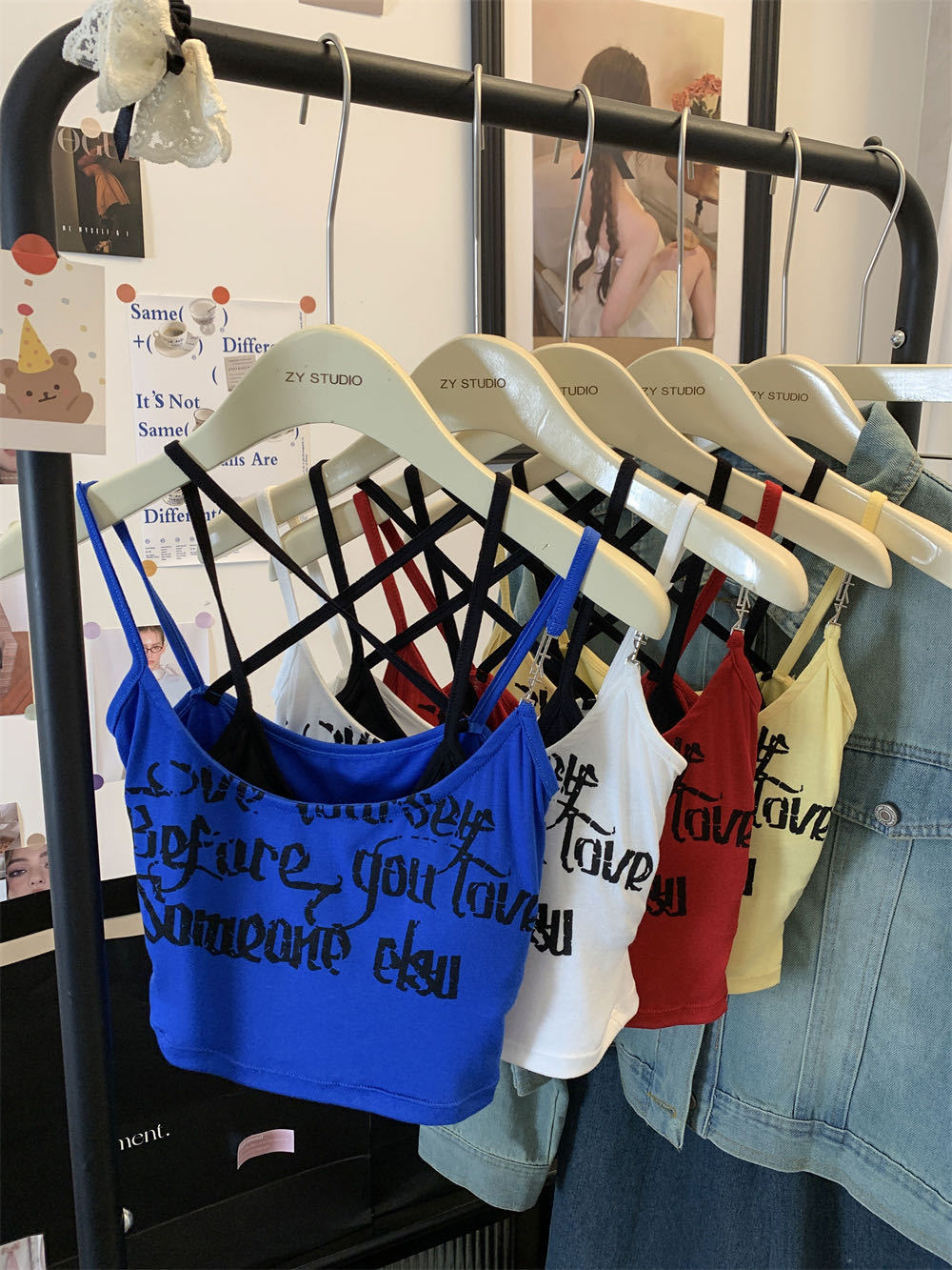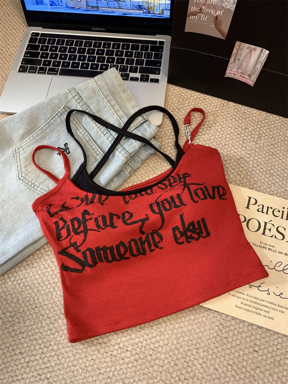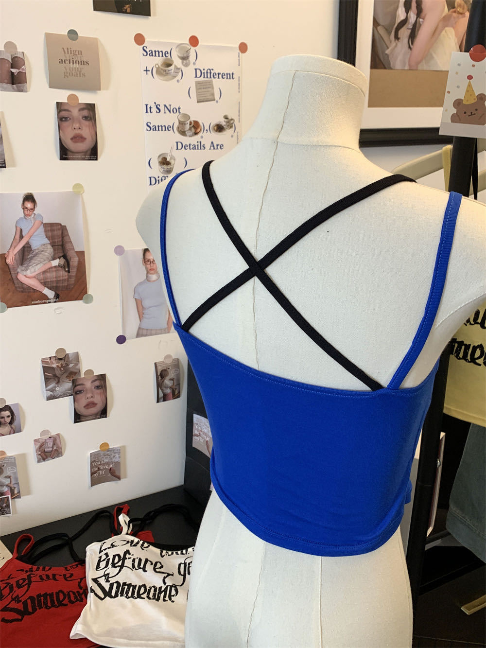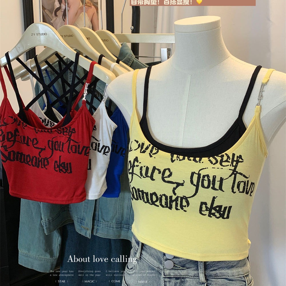 6907泰式辣妹撞色假两件印花吊带背心夏季叠穿双肩带短款露脐上衣 English | 投诉