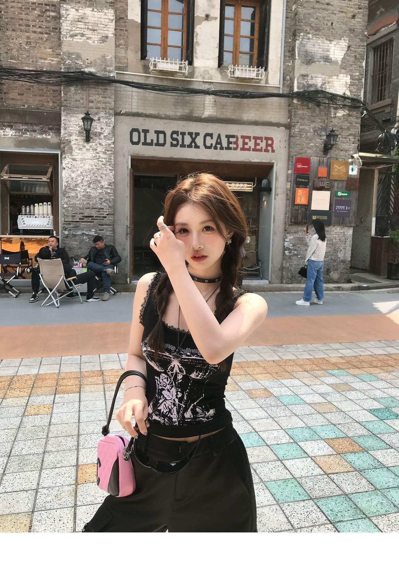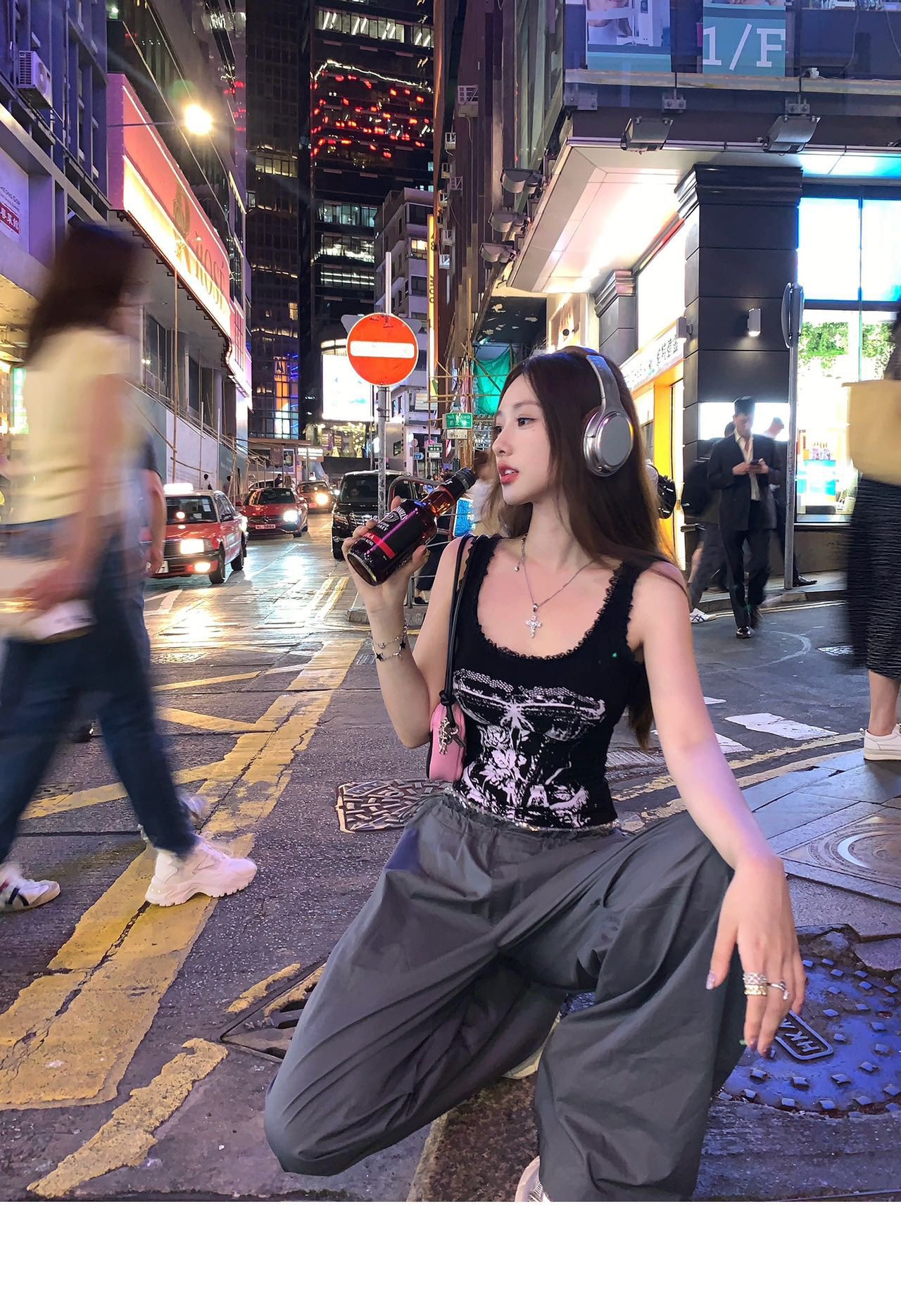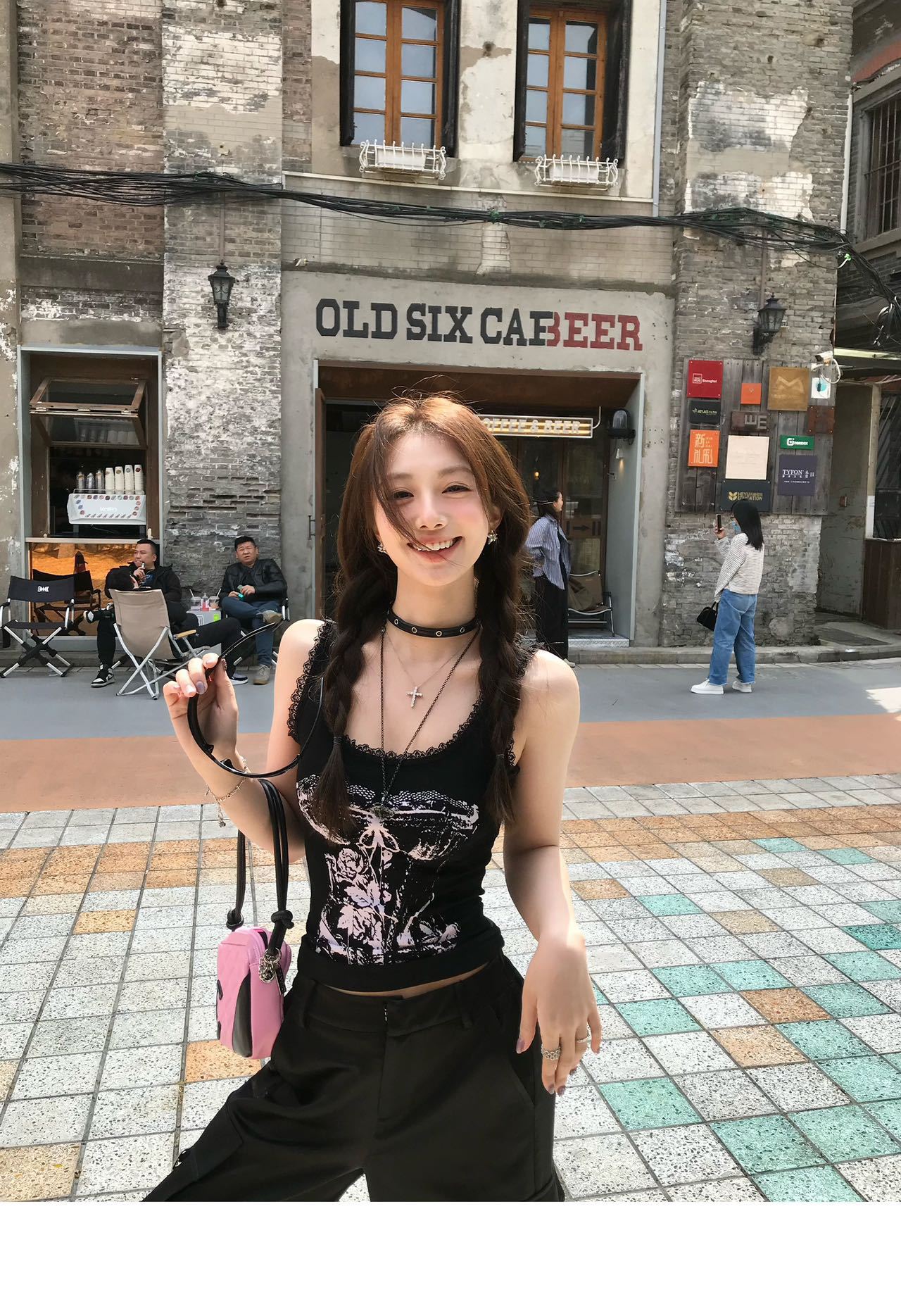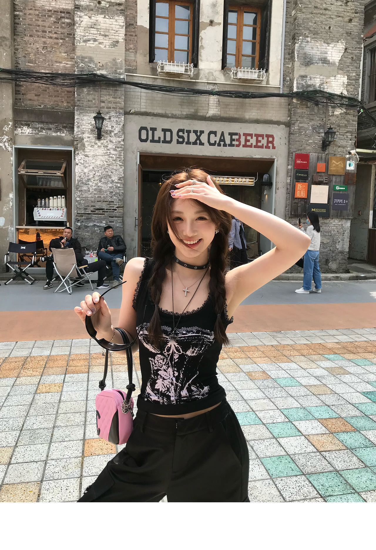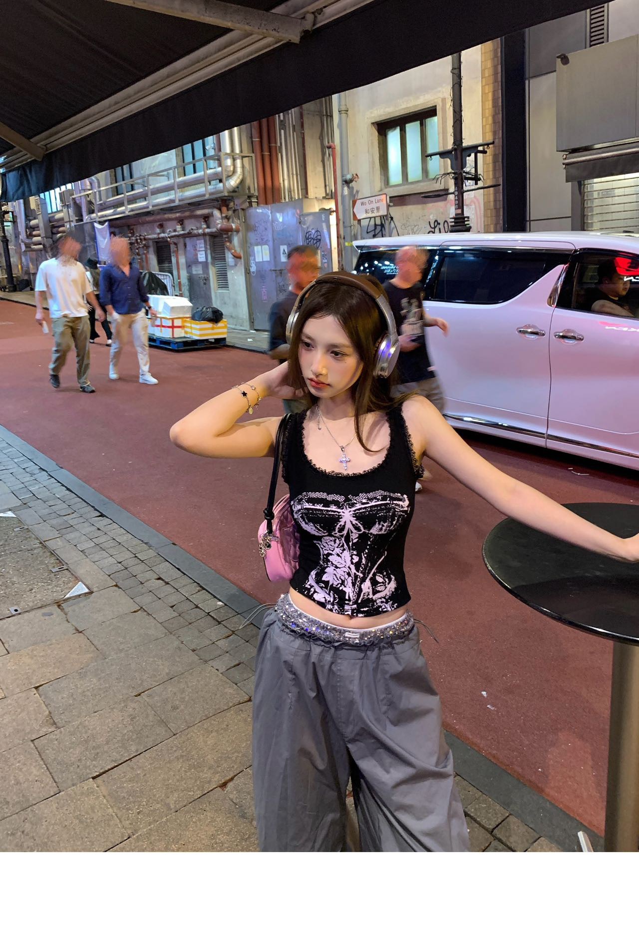 美式甜辣妹吊带背心蕾丝花边个性印花带胸垫内搭紧身外穿无袖上衣 English | 投诉