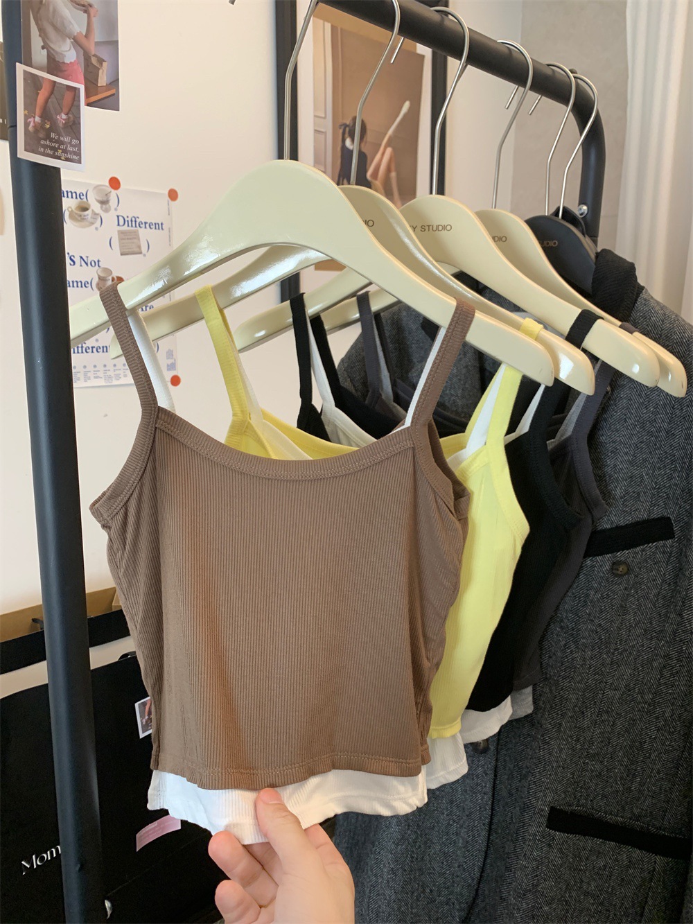 主面料成分: 棉 产品类别: 吊带背心 产地: 汕头 货号: 9124 颜色: 灰色,黑色,黄色,咖色 尺码: 均码 款式: 背心式 风格: 性感 领型: 圆领 季节: 四季通用 重量: 0.1 kg/件