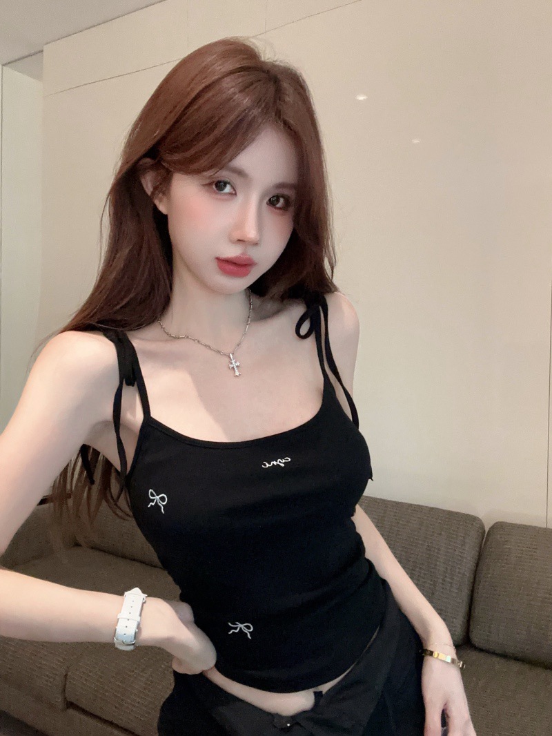 纯欲辣妹露肩蝴蝶结刺绣系带吊带背心带胸垫修身外穿内搭上衣 English | 投诉