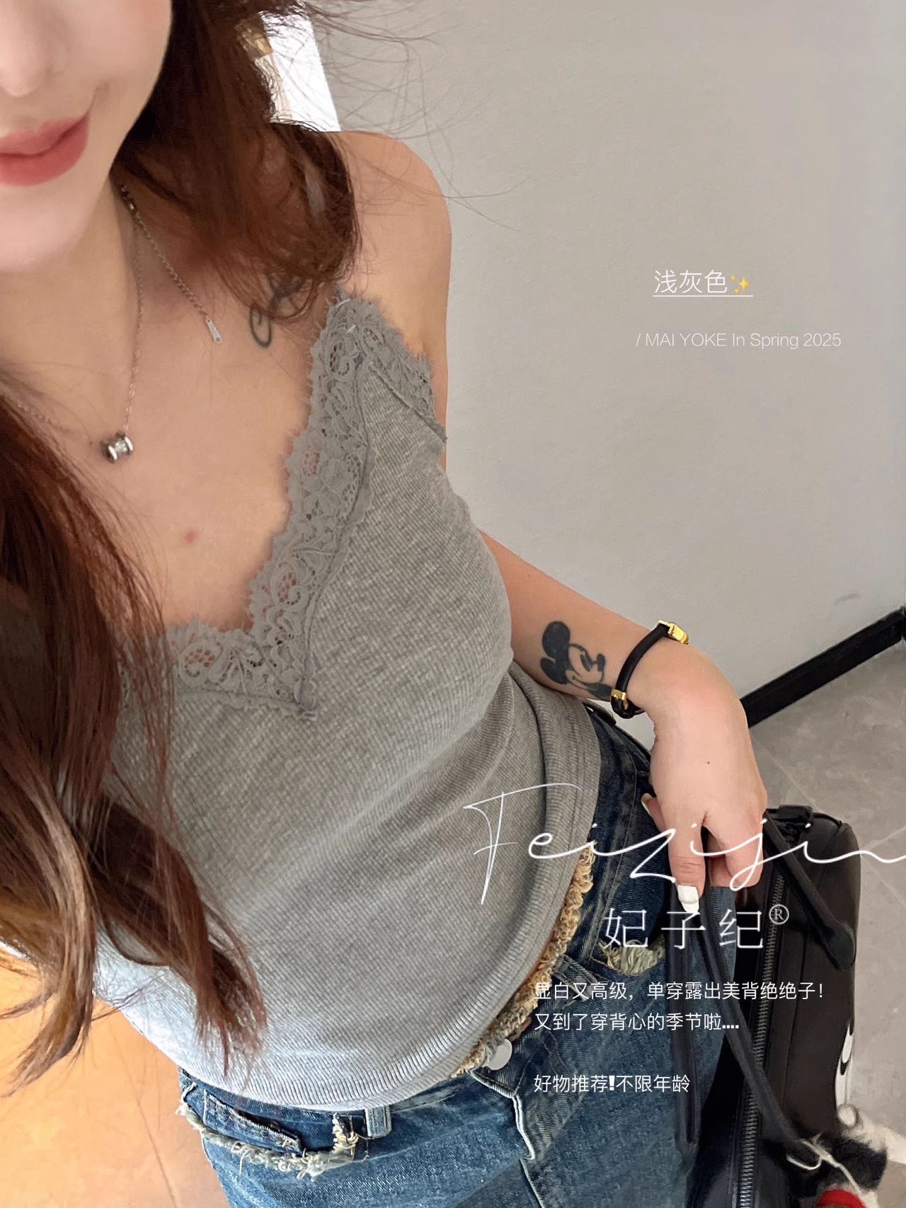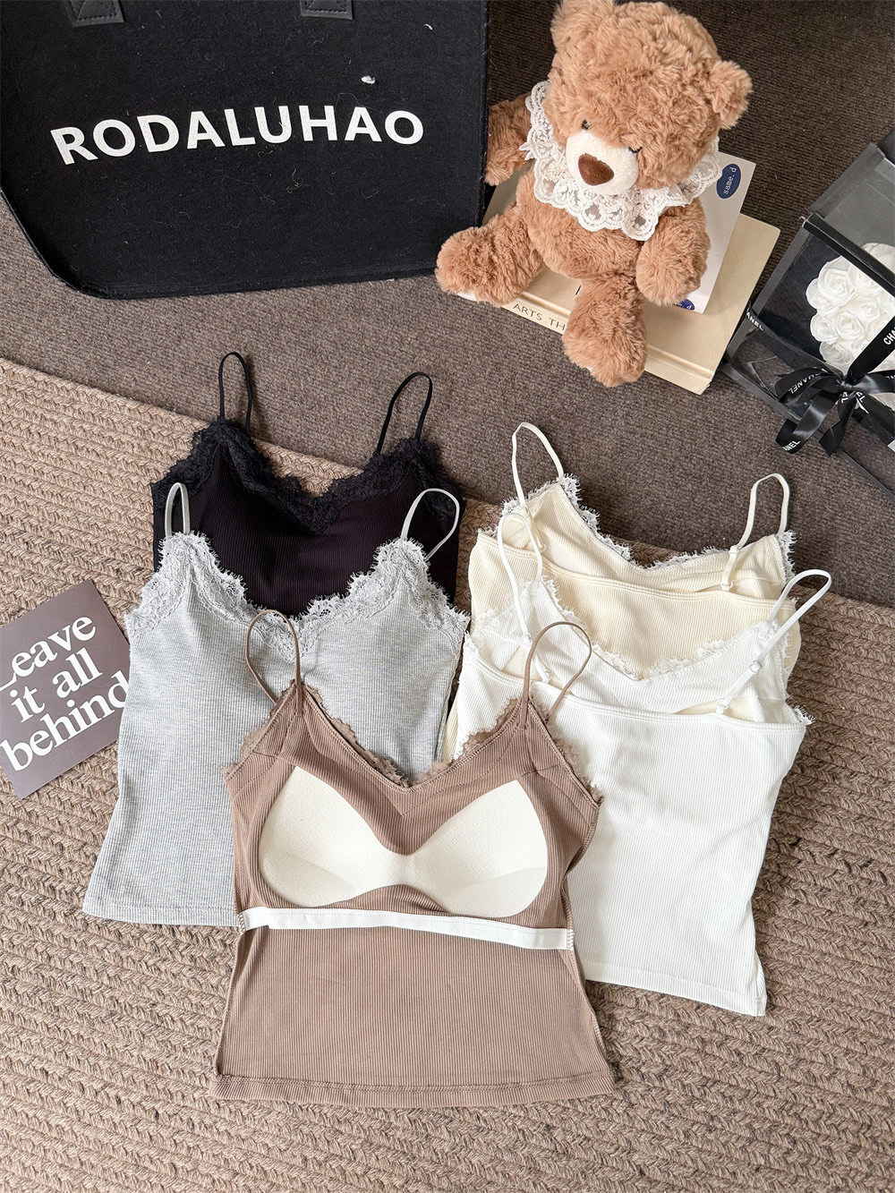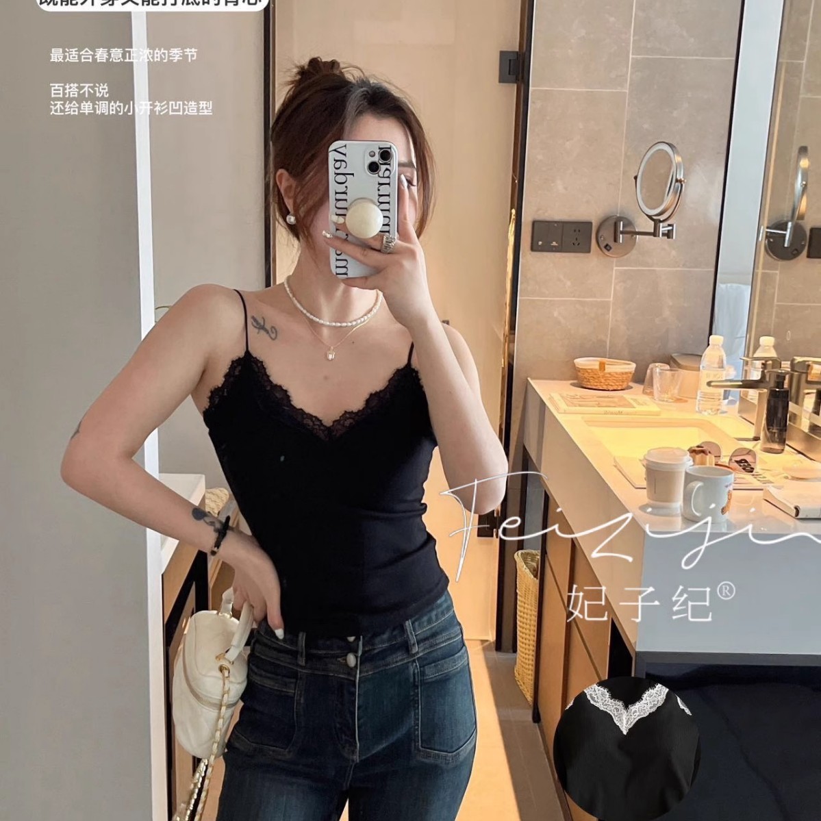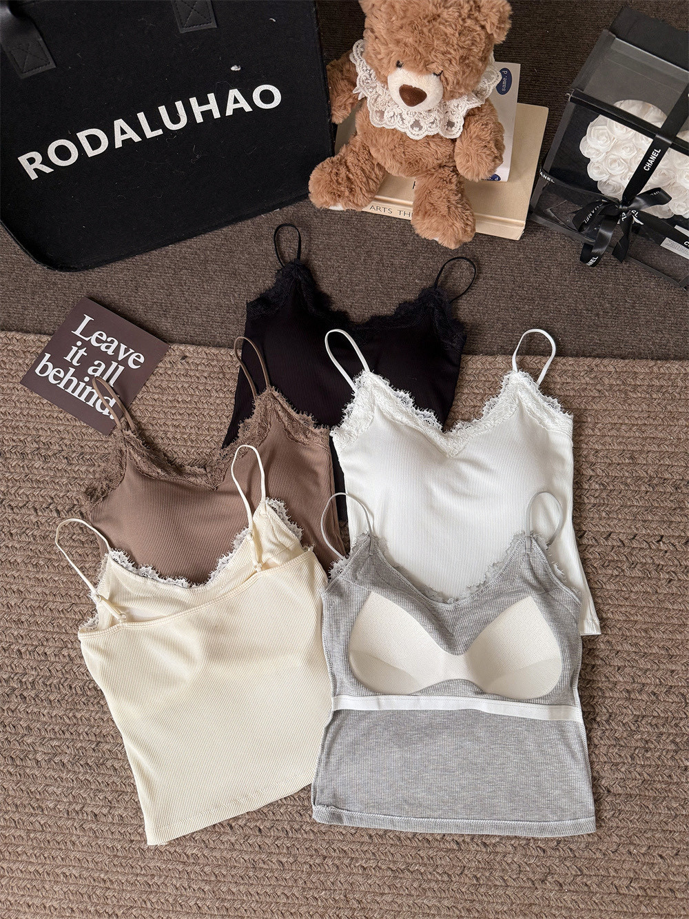 主面料成分: 人棉 产品类别: 吊带背心 产地: 汕头 货号: 6971 颜色: 白色,杏色,灰色,咖色,黑色 尺码: 均码 款式细节: 海绵垫,蕾丝花边 款式: 吊带 风格: 甜美 领型: V领 重量: 0.1 kg/件
