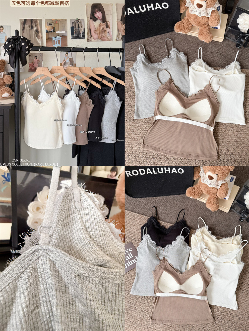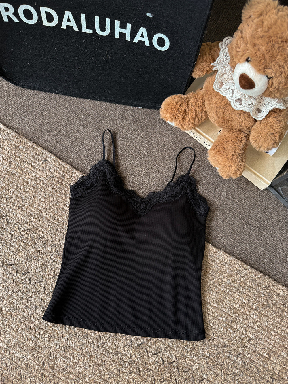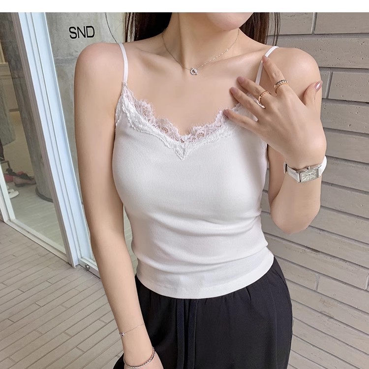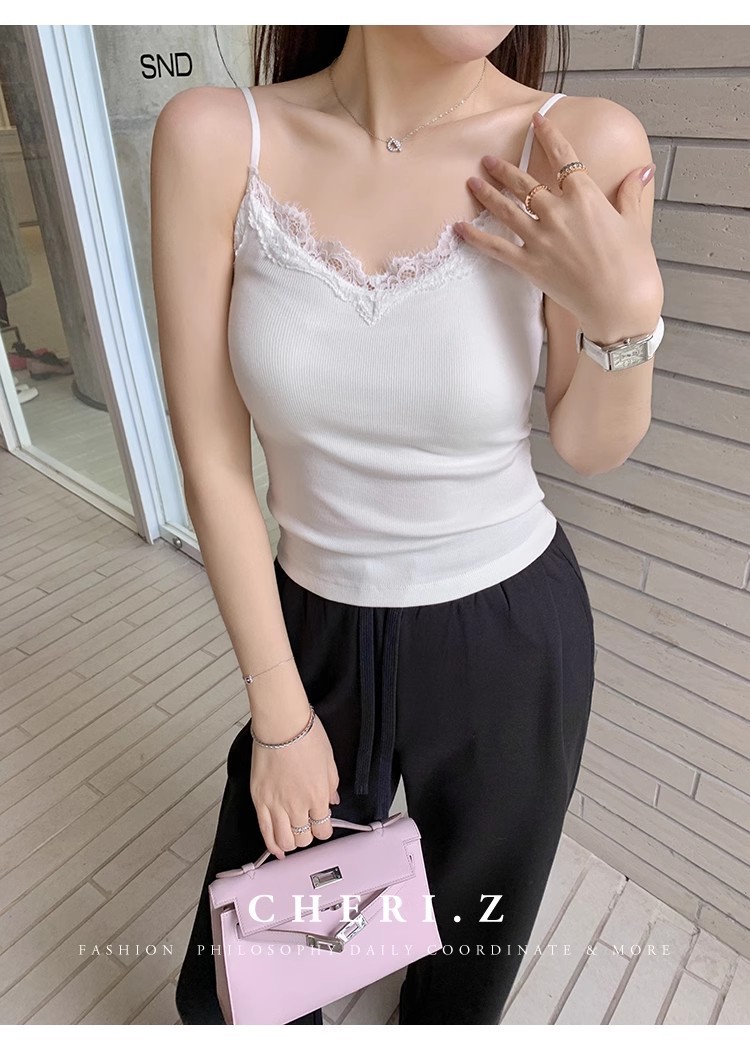 6971#人棉花边吊带背心纯欲性感辣妹带胸垫打底内搭外穿无袖上衣 English | 投诉