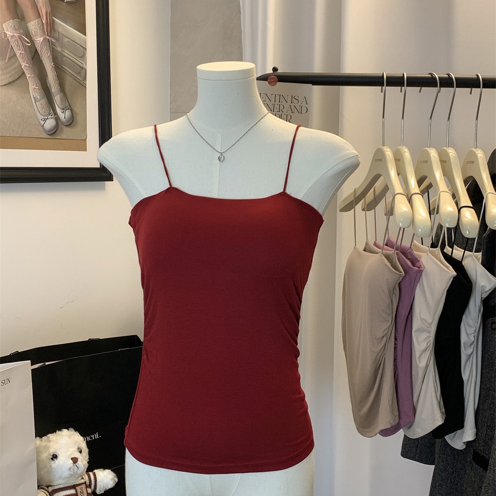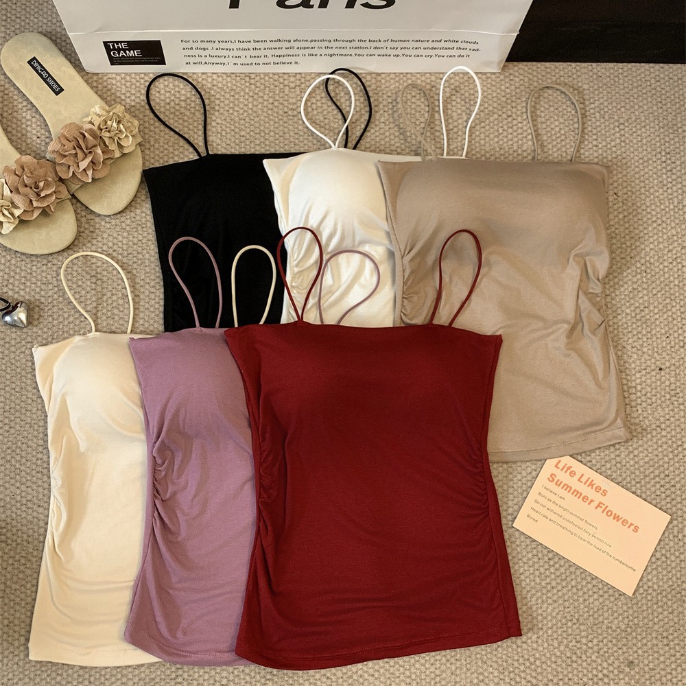 6857#纯欲辣妹褶皱吊带背心带胸垫抹胸内搭外穿打底美背修身上衣