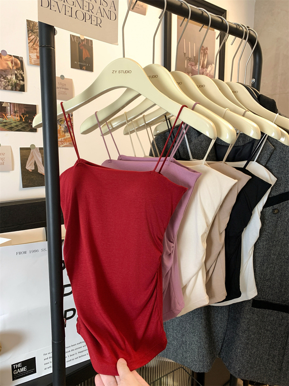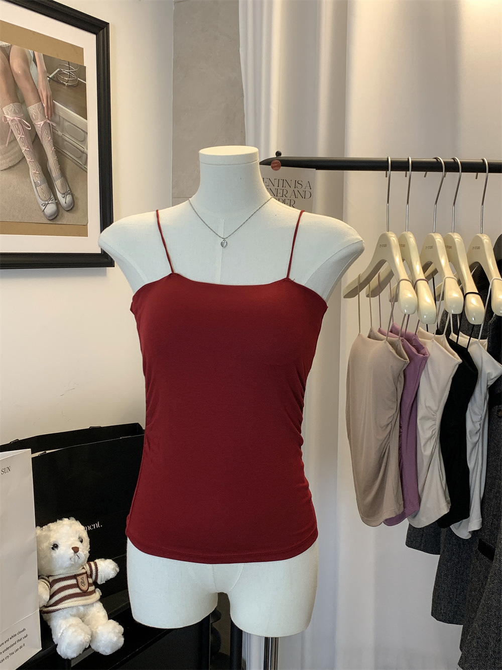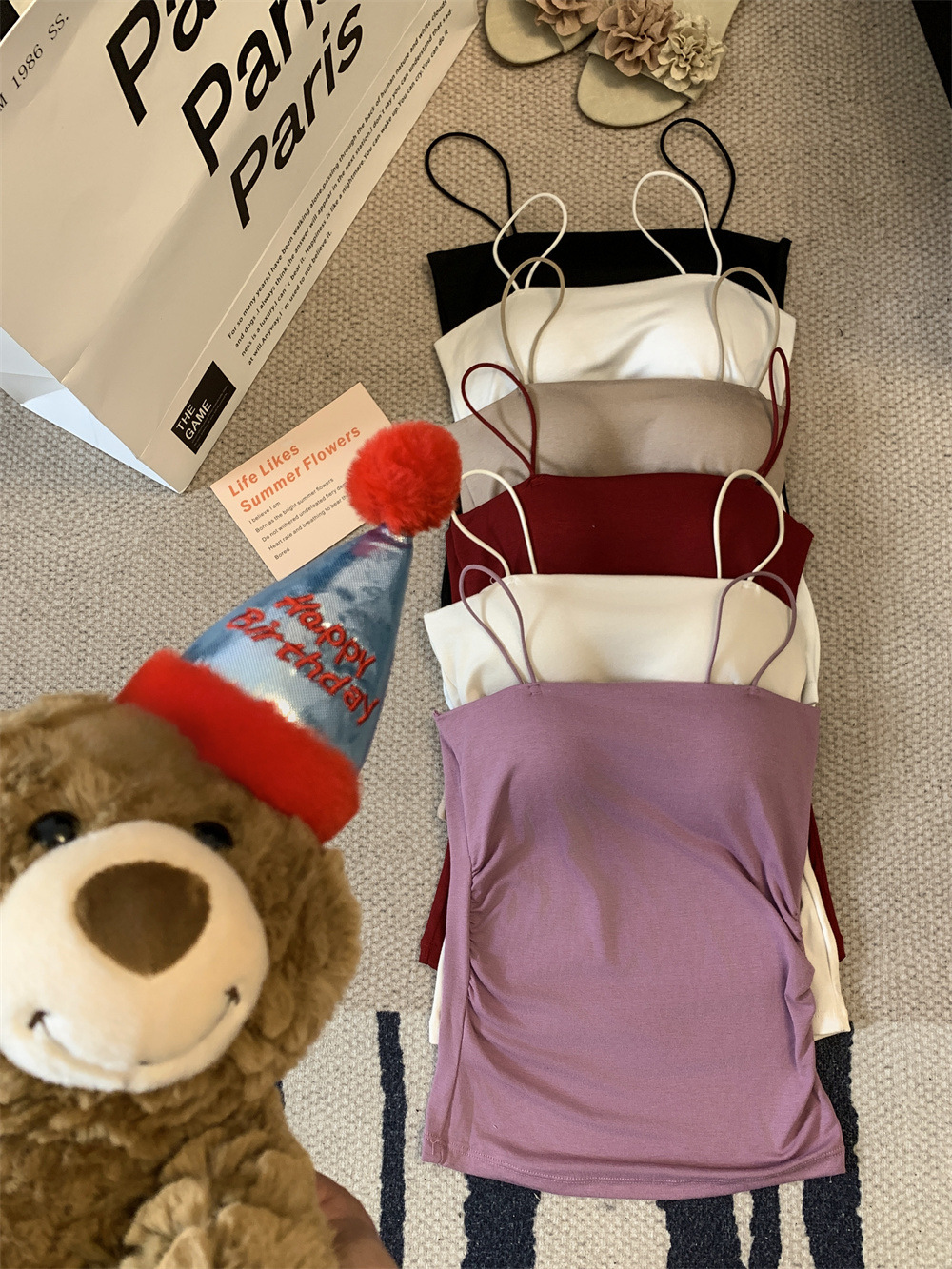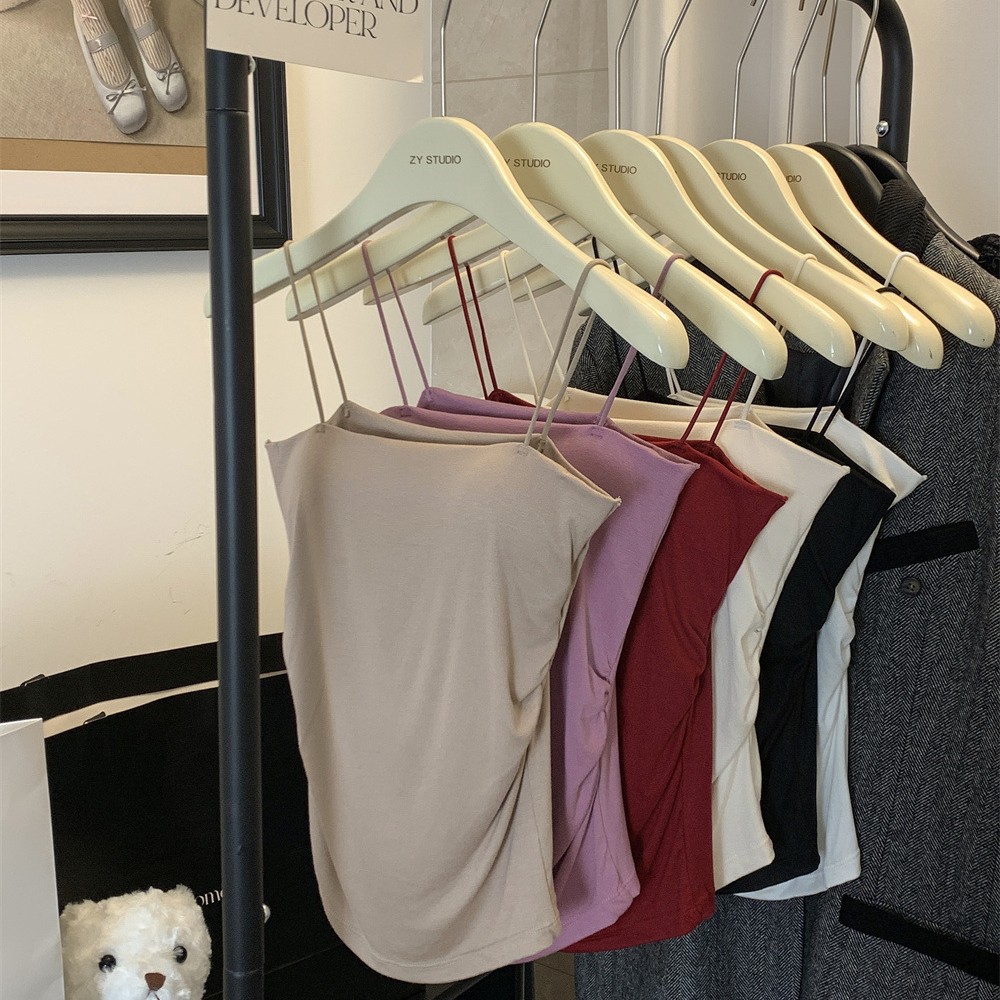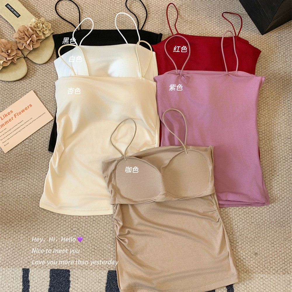 6857#纯欲辣妹褶皱吊带背心带胸垫抹胸内搭外穿打底美背修身上衣 English | 投诉