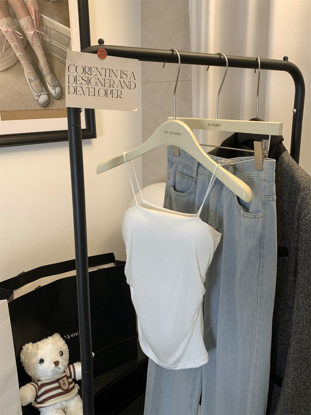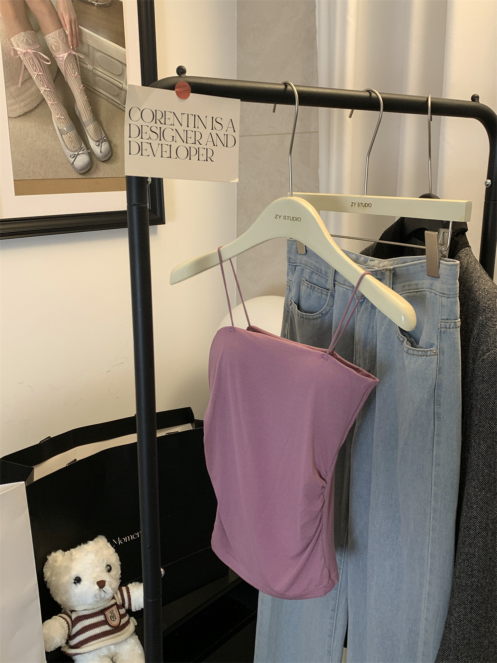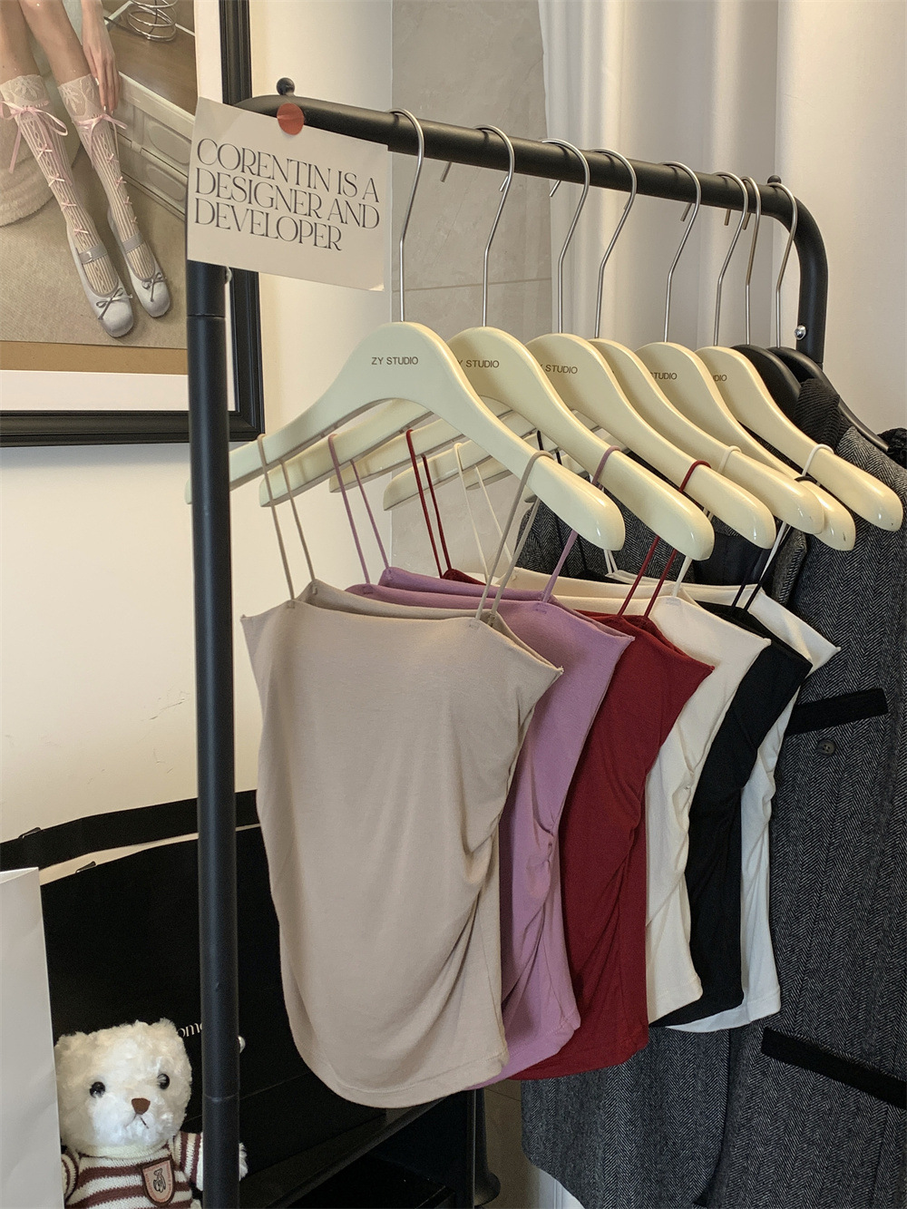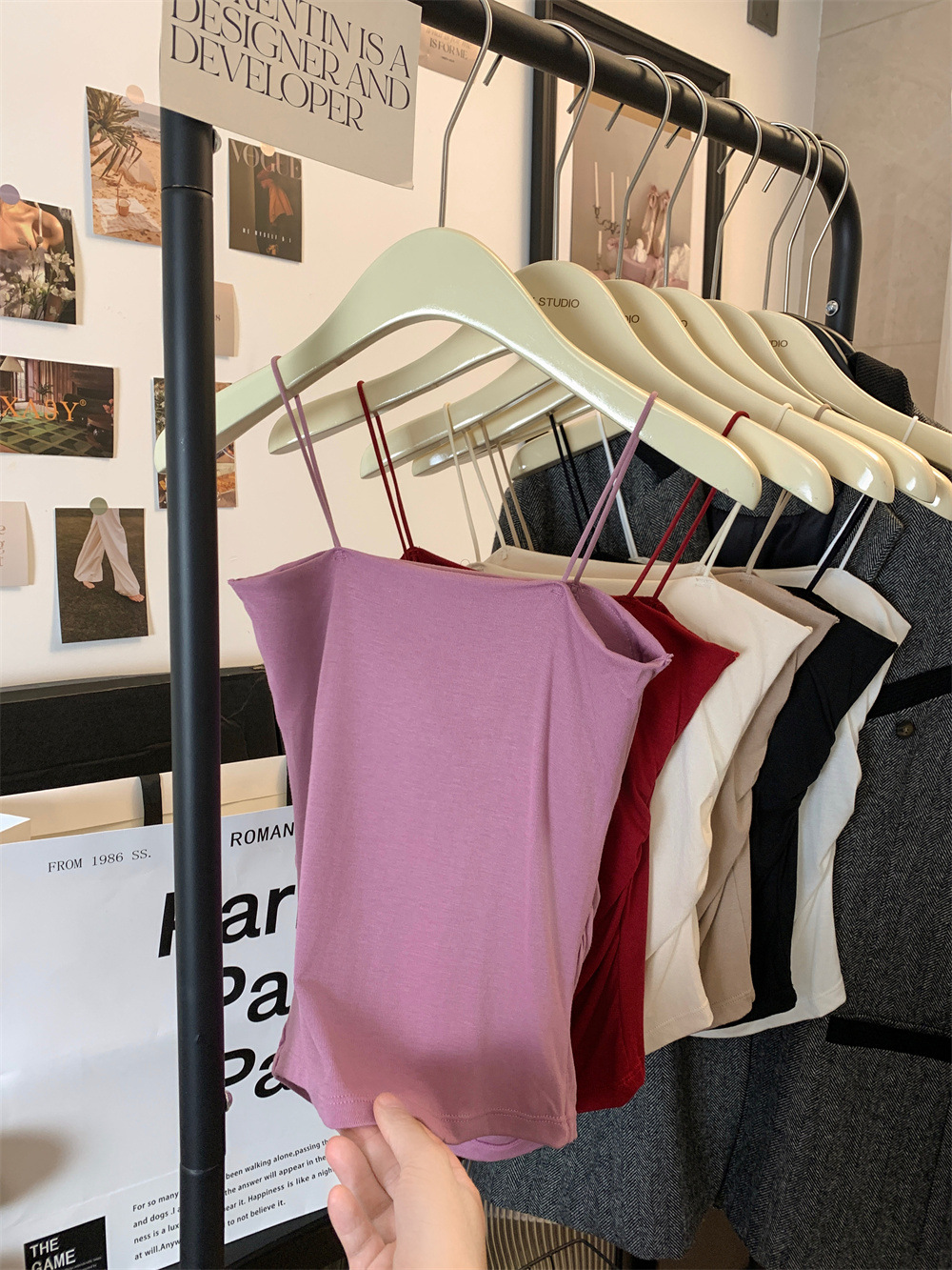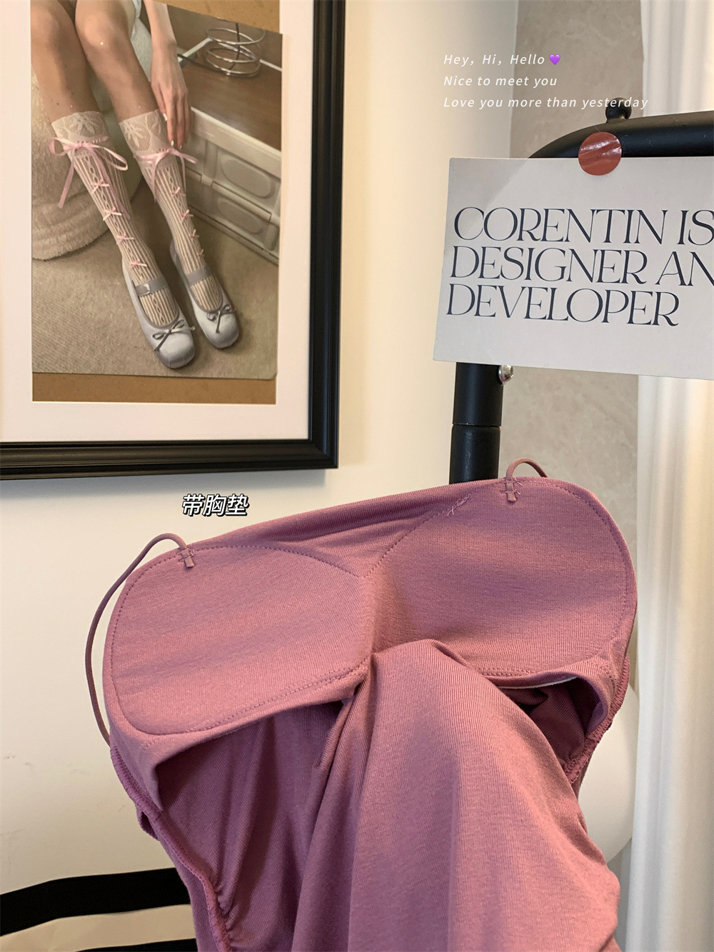 6857#纯欲辣妹褶皱吊带背心带胸垫抹胸内搭外穿打底美背修身上衣 English | 投诉