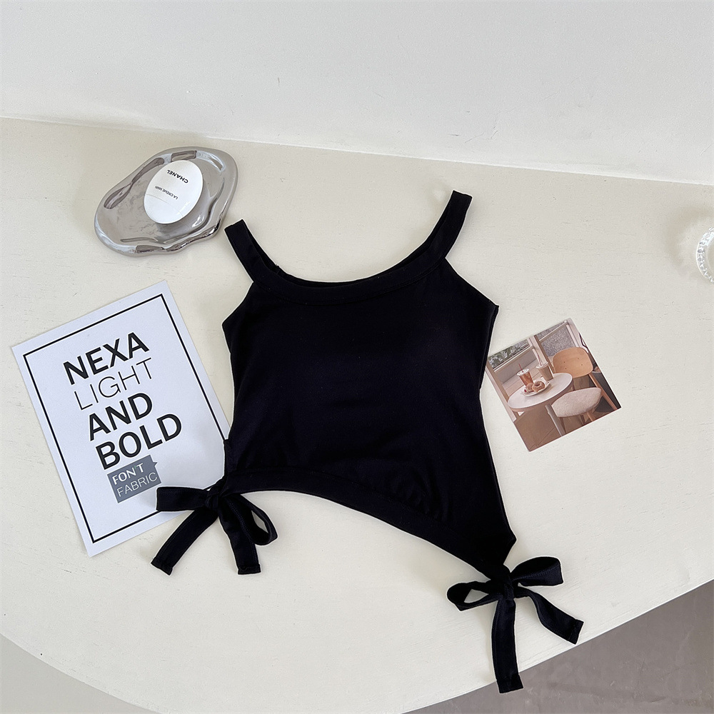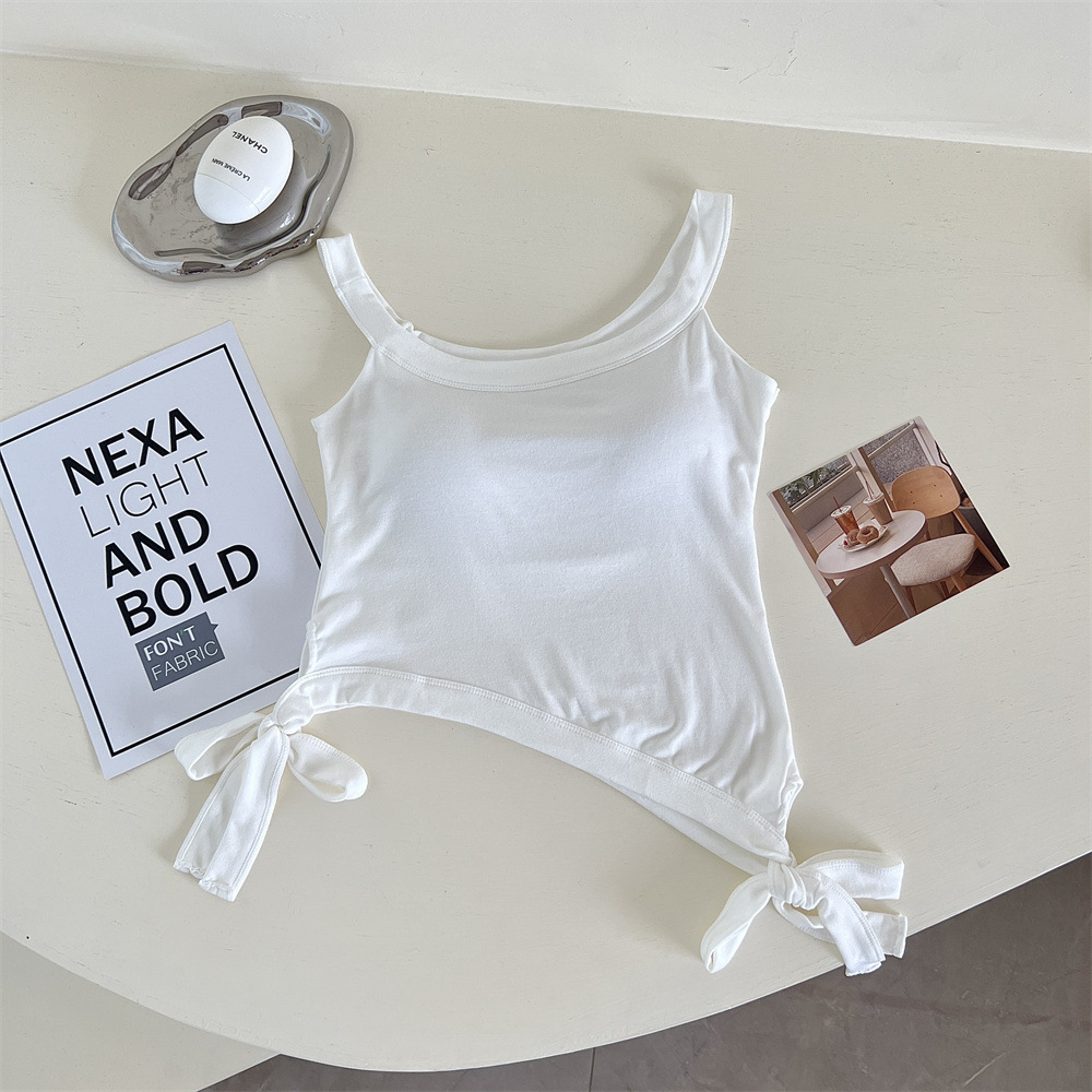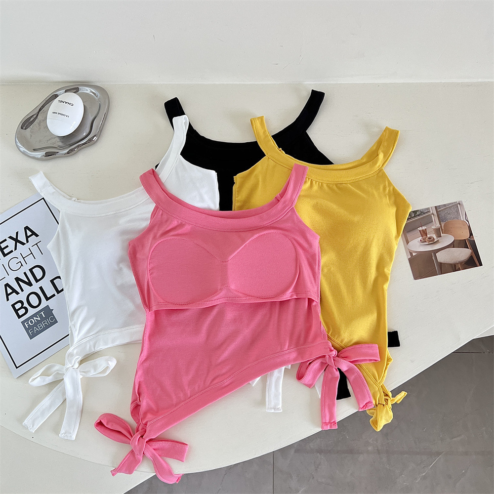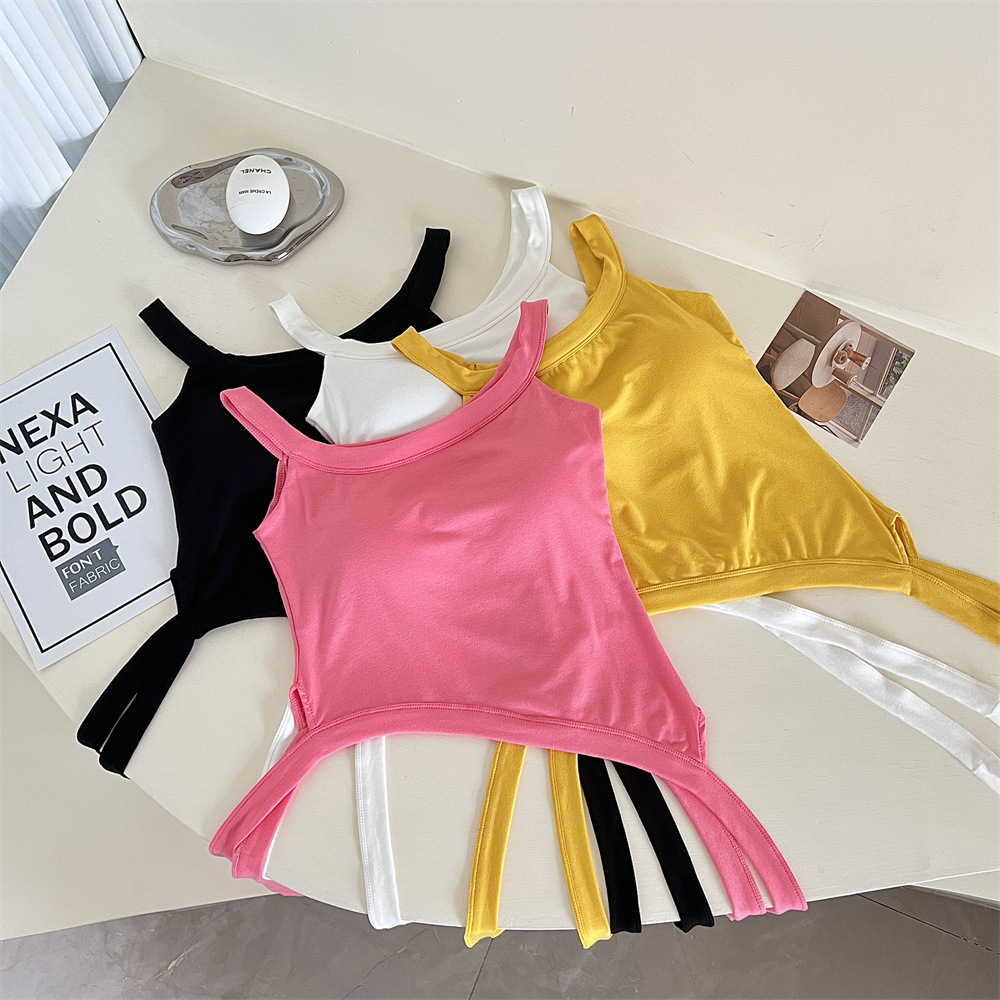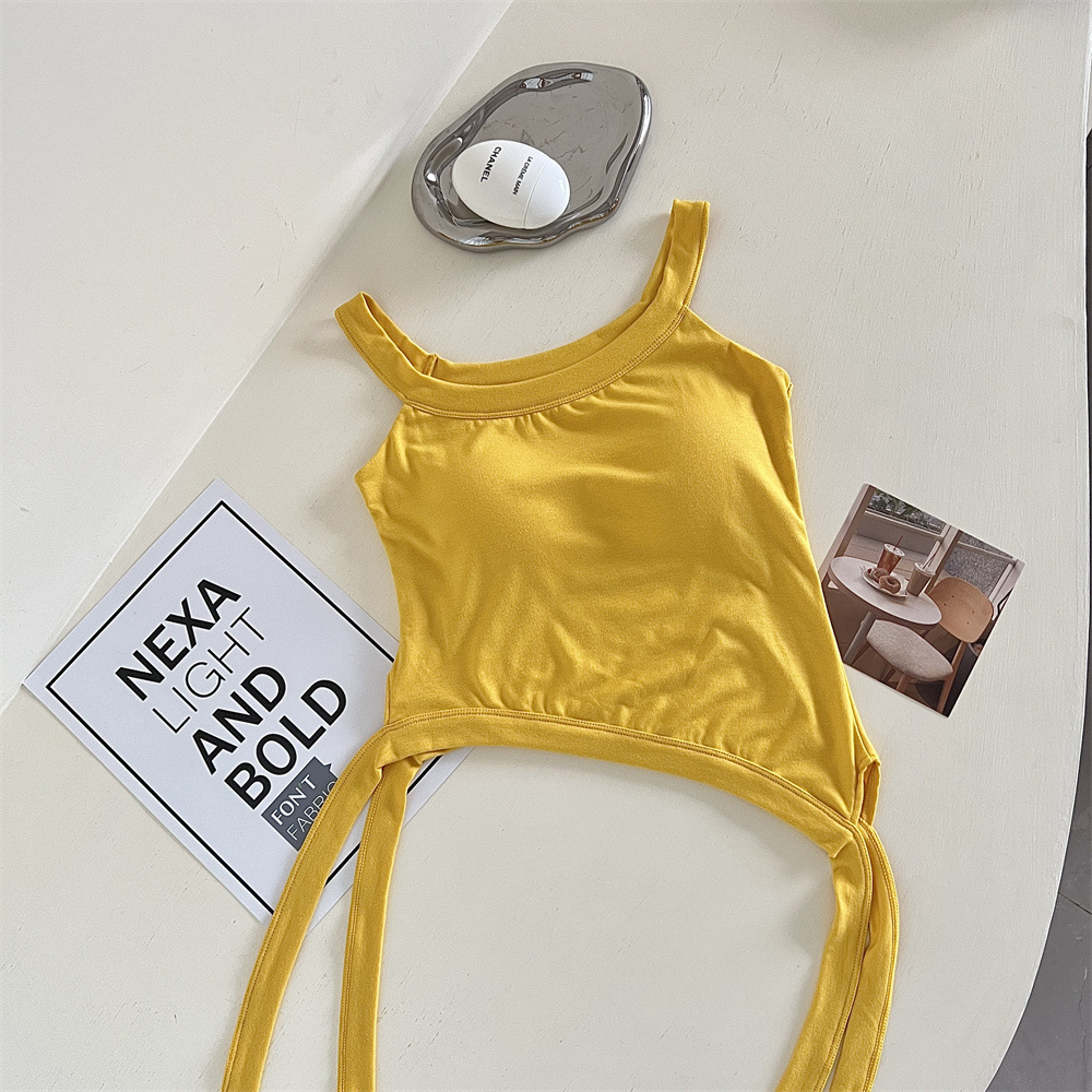 纯欲辣妹性感带胸垫吊带设计感小众不规则下摆美式露肩背心上衣