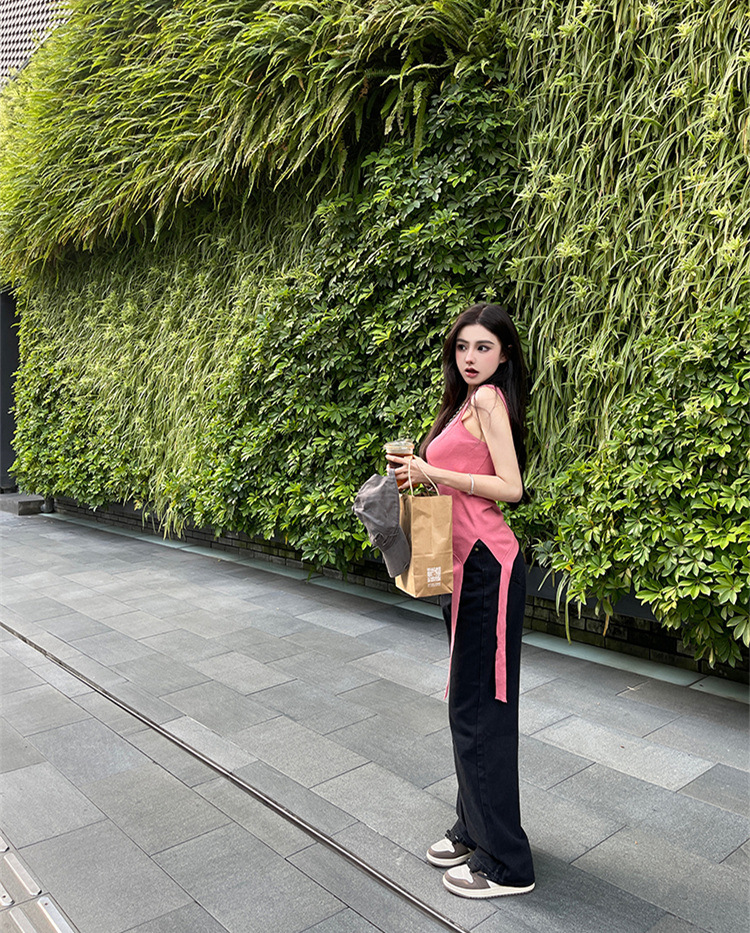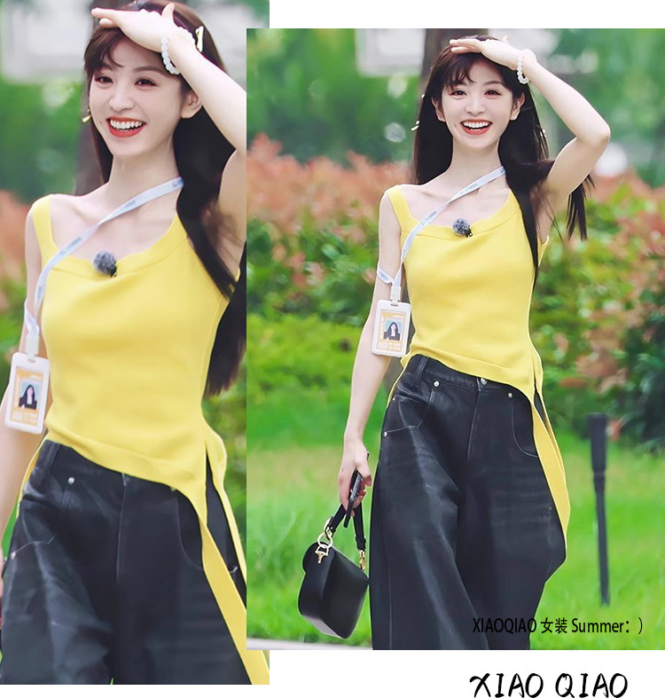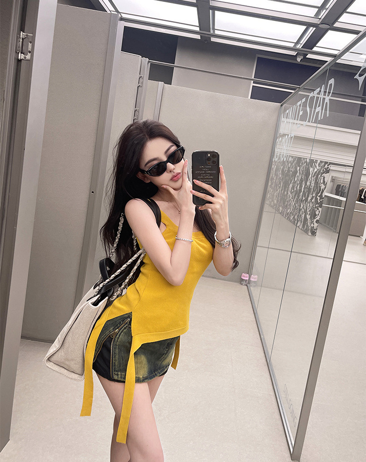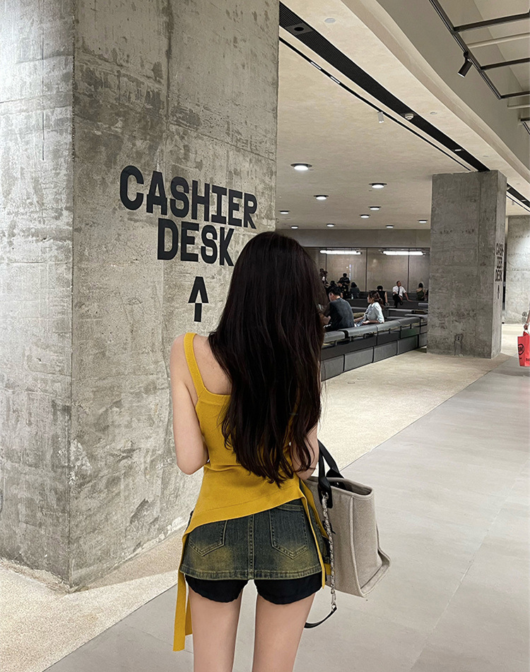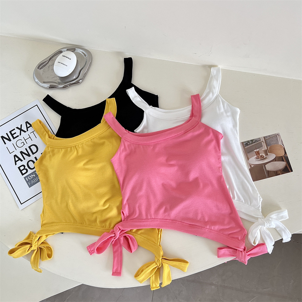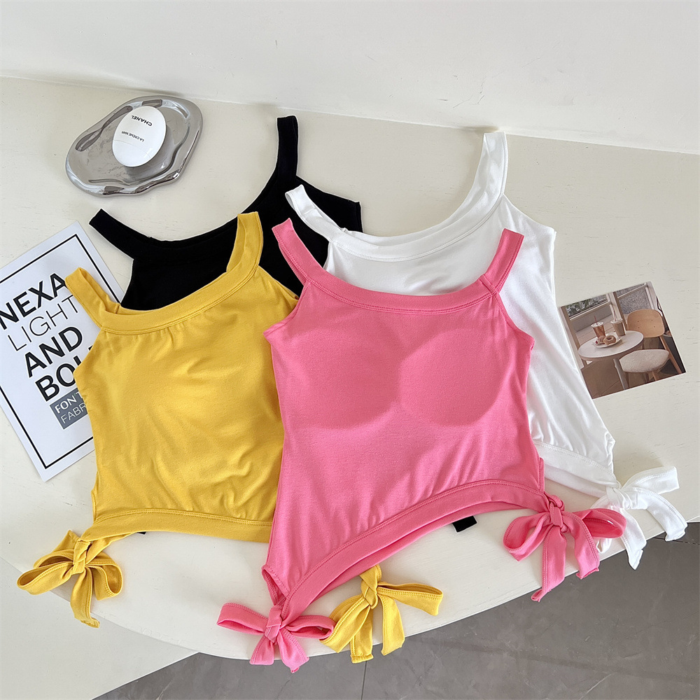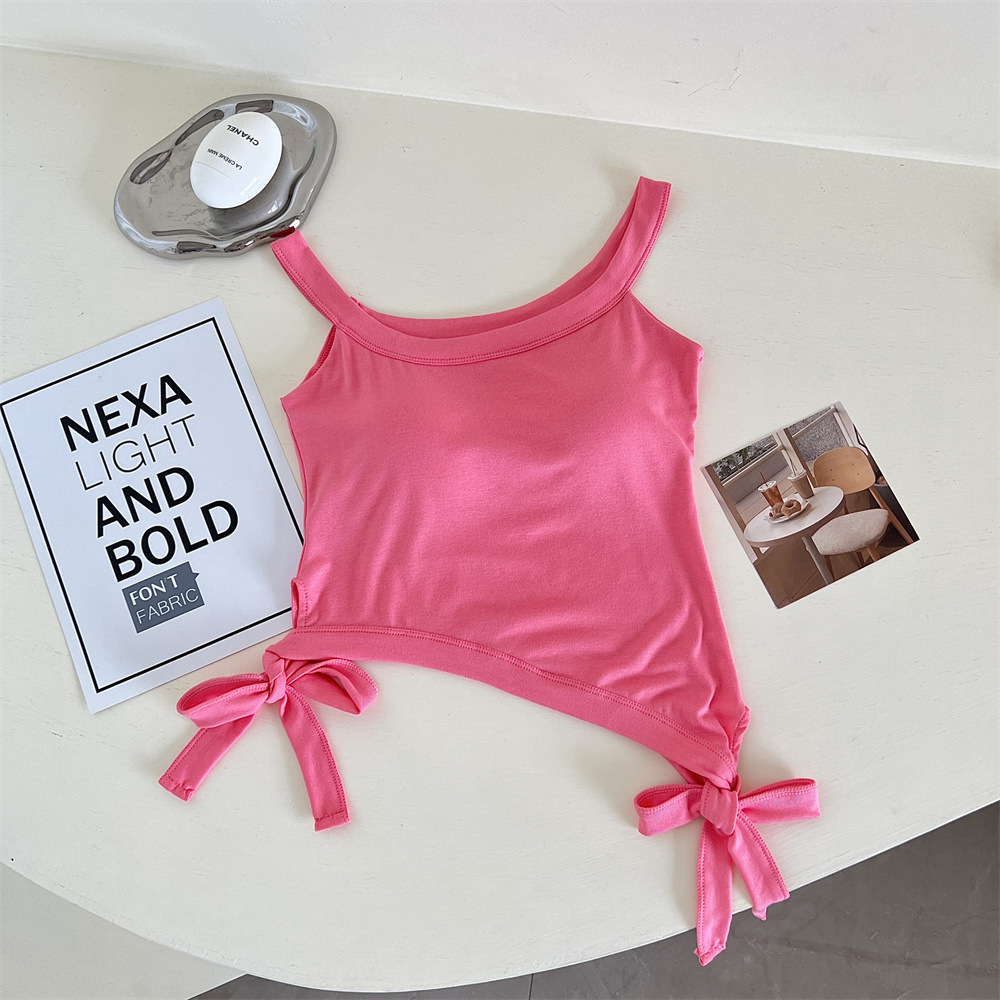 纯欲辣妹性感带胸垫吊带设计感小众不规则下摆美式露肩背心上衣
