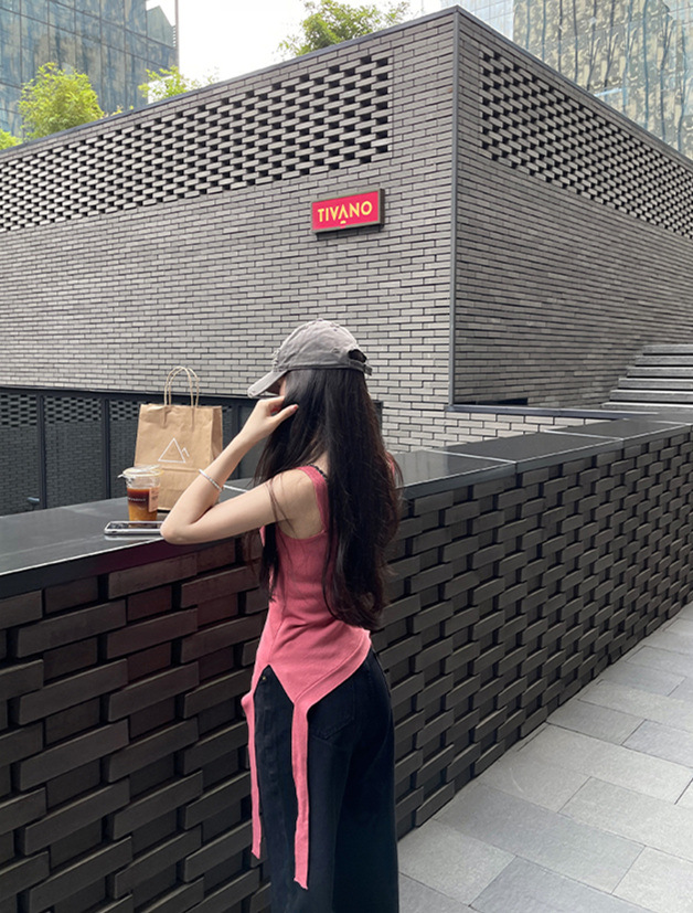 纯欲辣妹性感带胸垫吊带设计感小众不规则下摆美式露肩背心上衣 English | 投诉