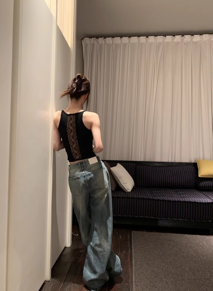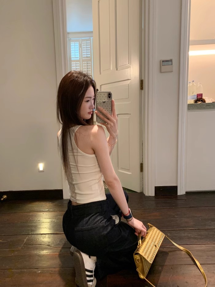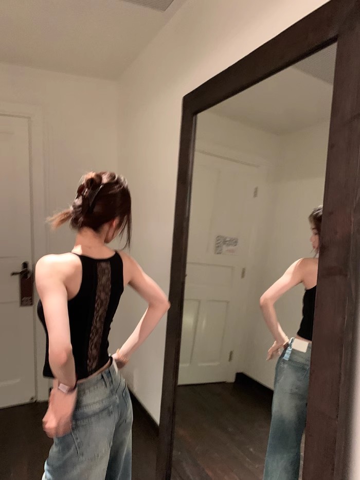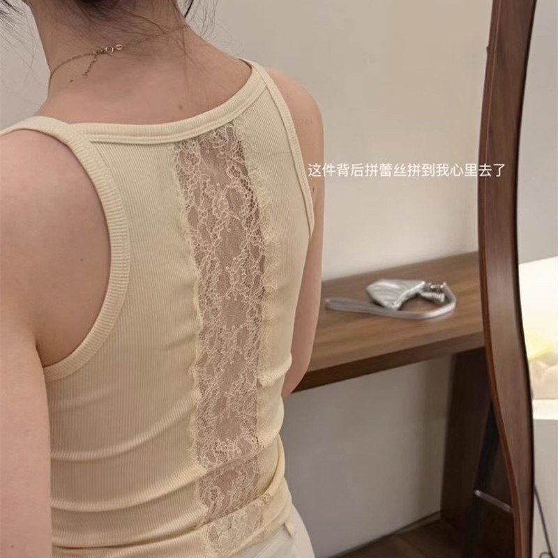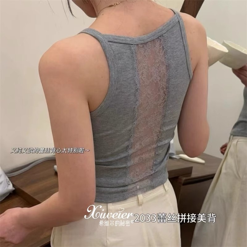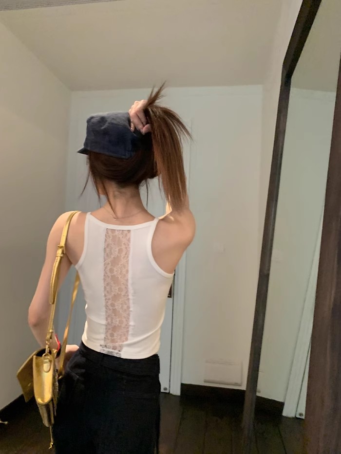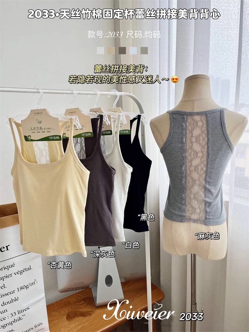 6986#性感辣妹方领后背蕾丝拼接背心带胸垫修身显瘦外穿美背上衣 English | 投诉