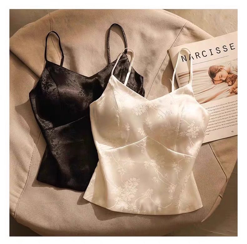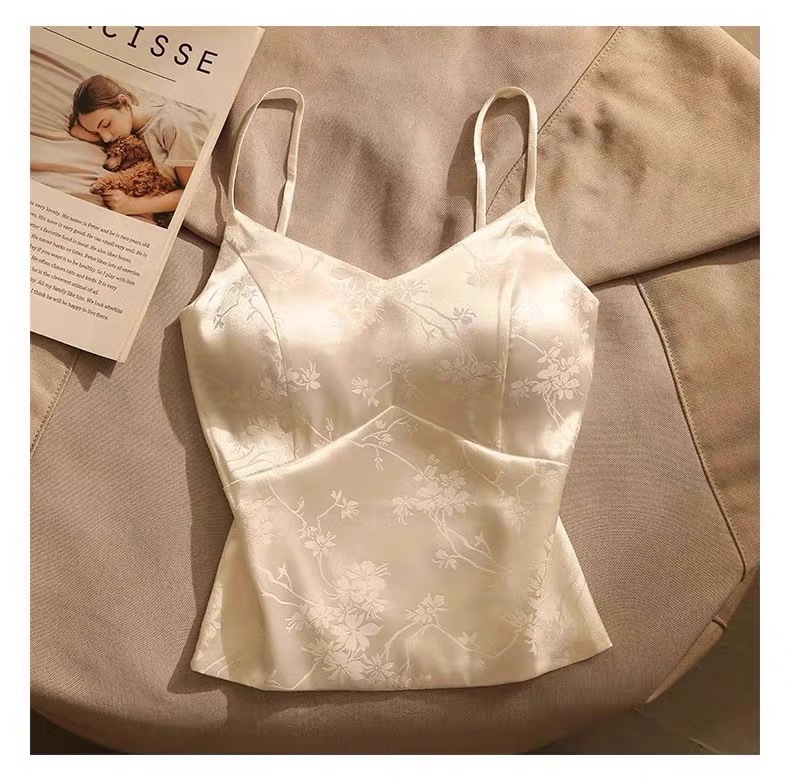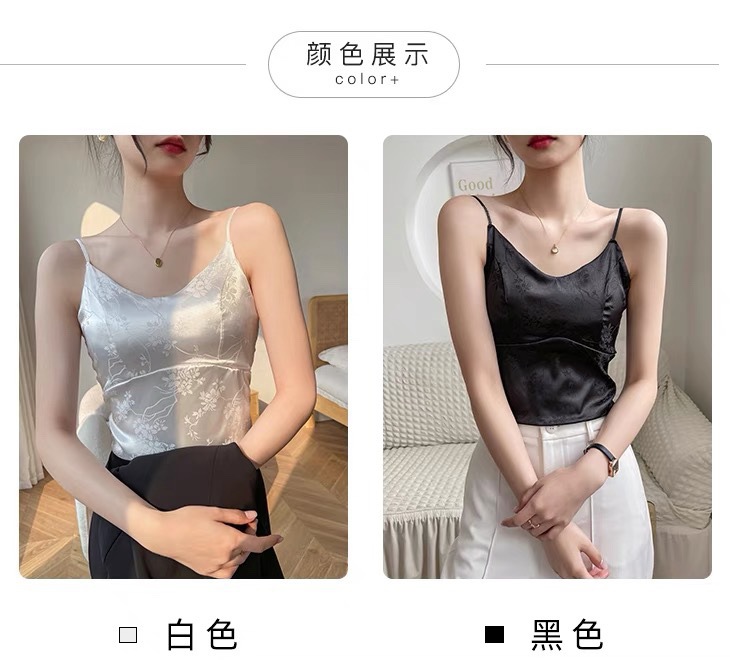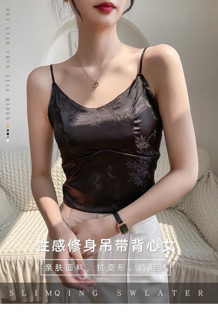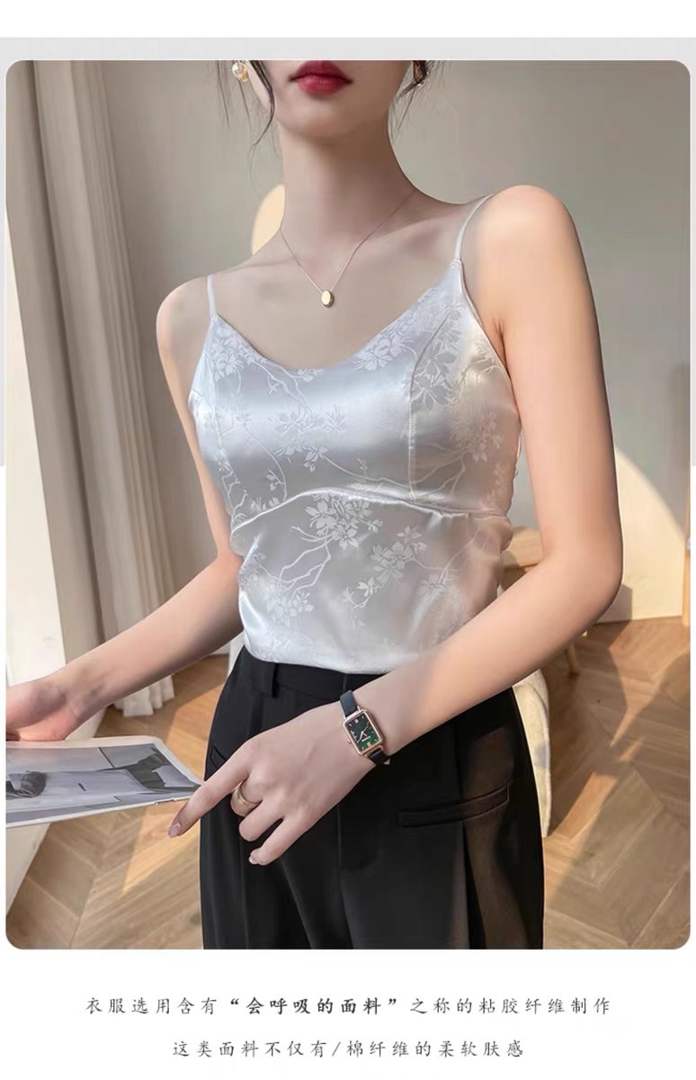 中国风绸缎提花吊带背心夏季新中式带胸垫V领美背显瘦气质西装内 English | 投诉