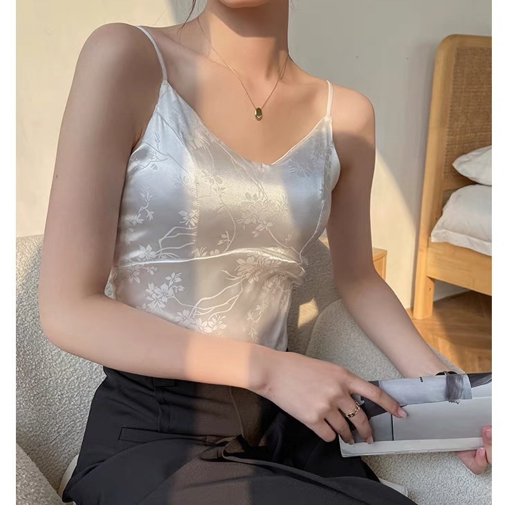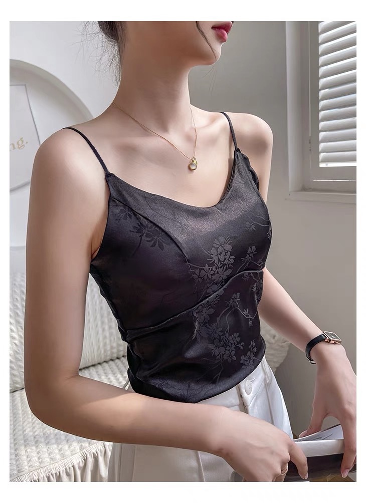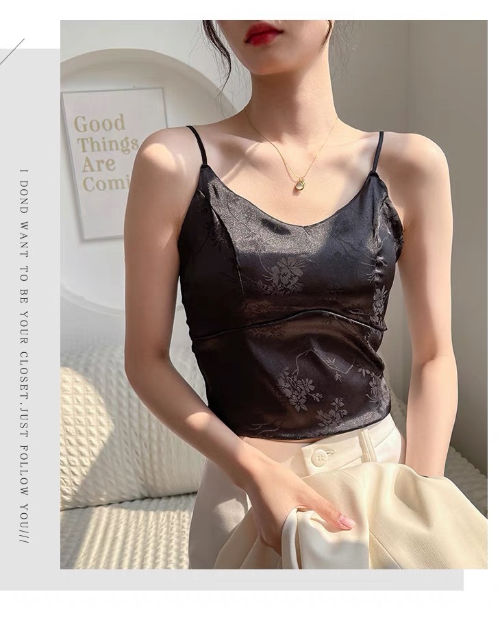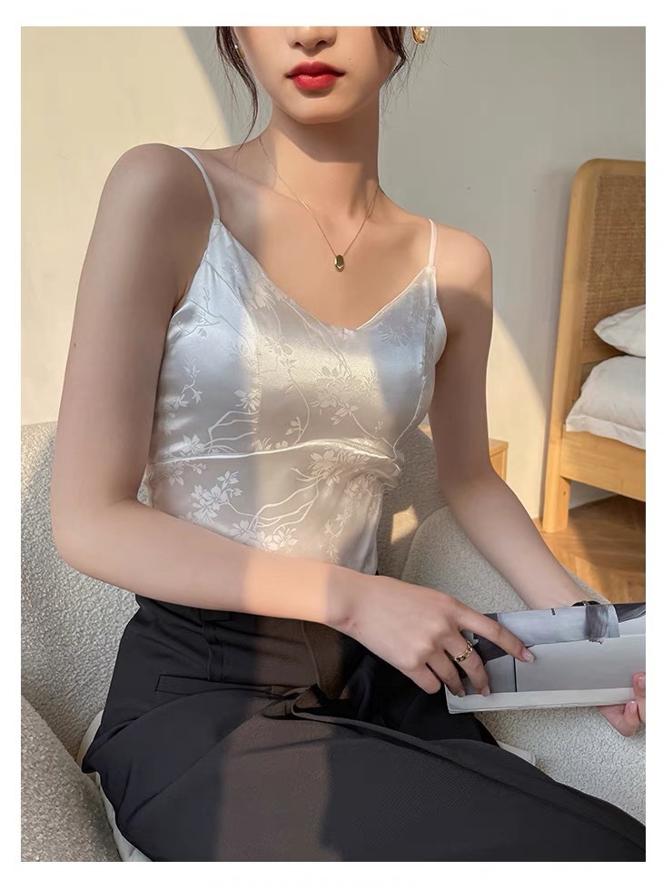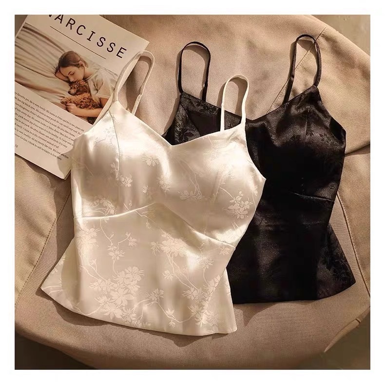 中国风绸缎提花吊带背心夏季新中式带胸垫V领美背显瘦气质西装内 English | 投诉