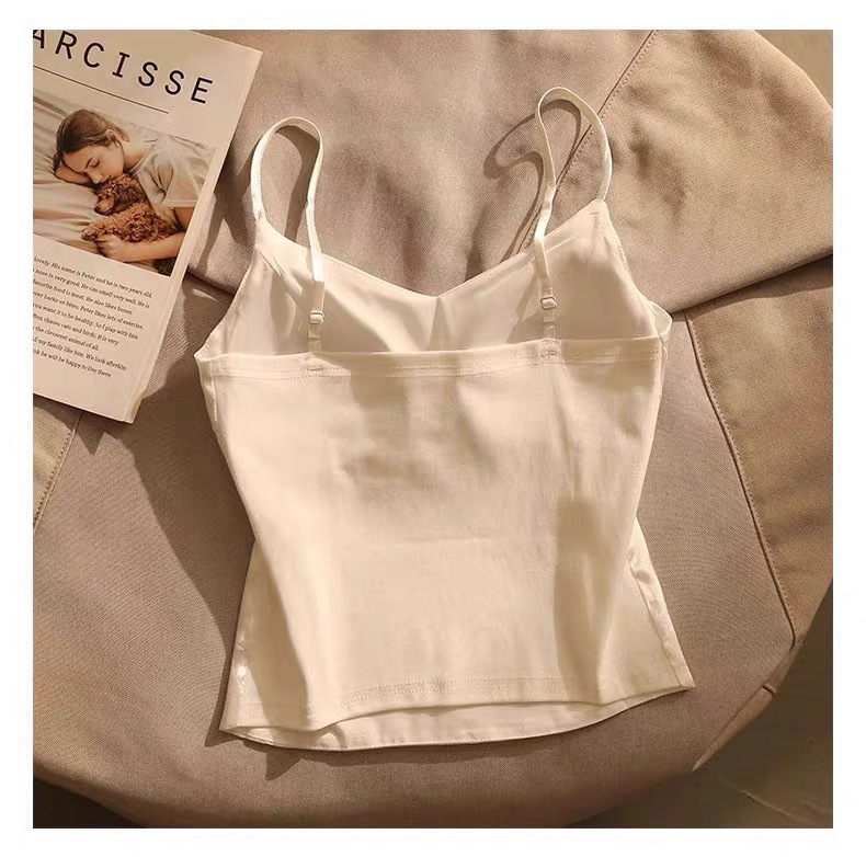 主面料成分: 锦纶 产品类别: 吊带背心 产地: 汕头 货号: 8103 颜色: 白色,黑色 尺码: 均码 款式细节: 海绵垫 款式: 吊带 风格: 中国风 领型: V领 重量: 0.1 kg/件