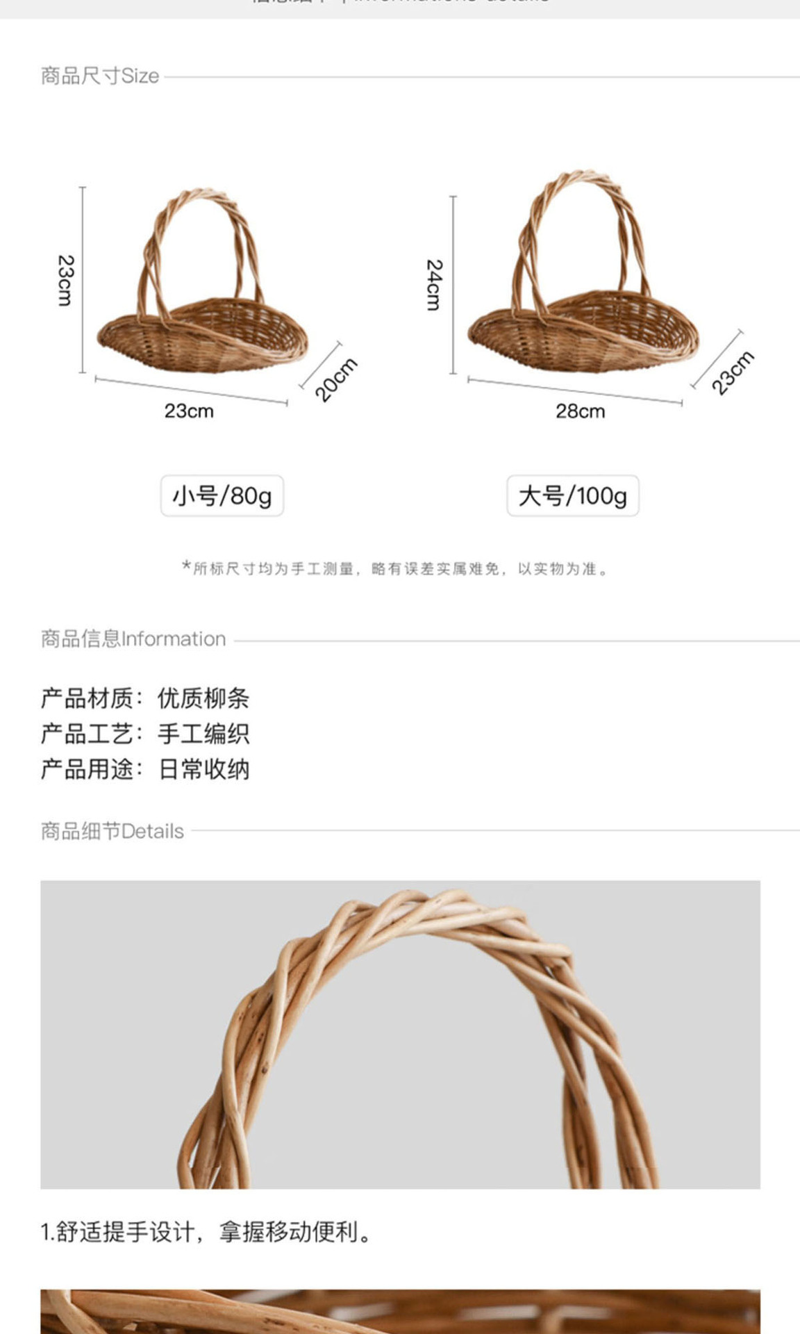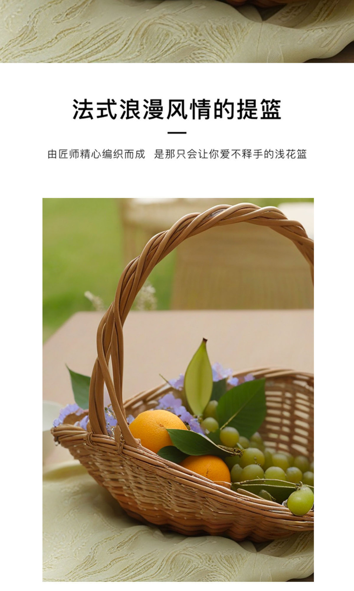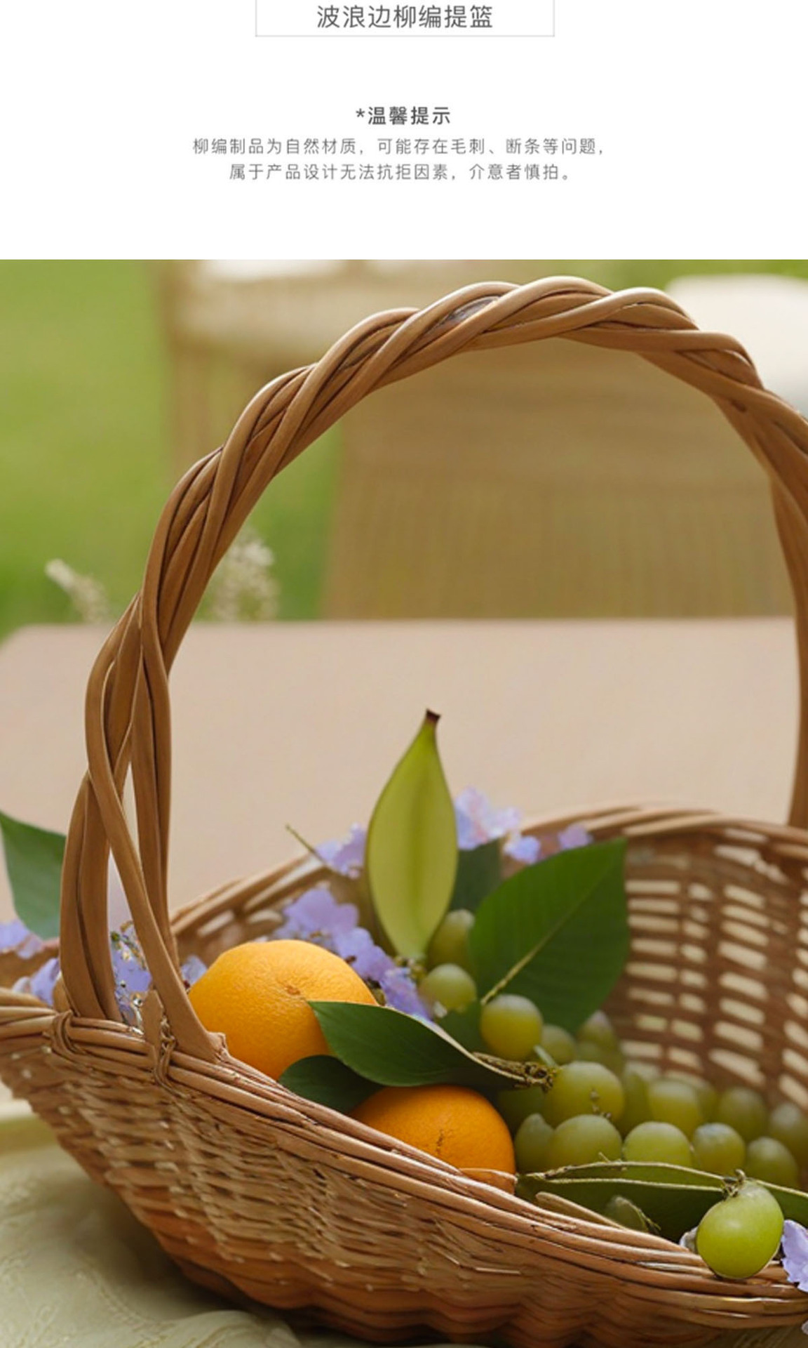 花篮草编藤编柳编手工编织鲜花插花篮手提收纳篮竹编水果采摘篮子 投诉