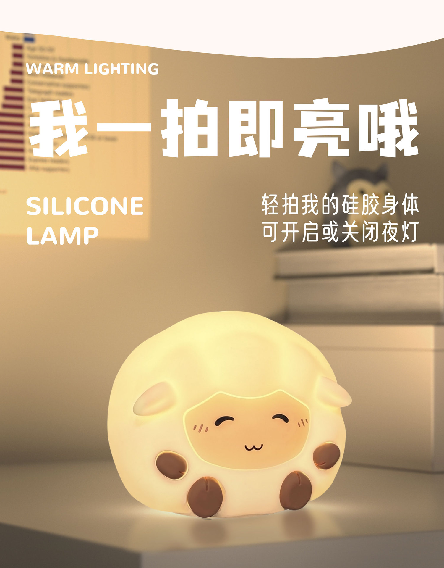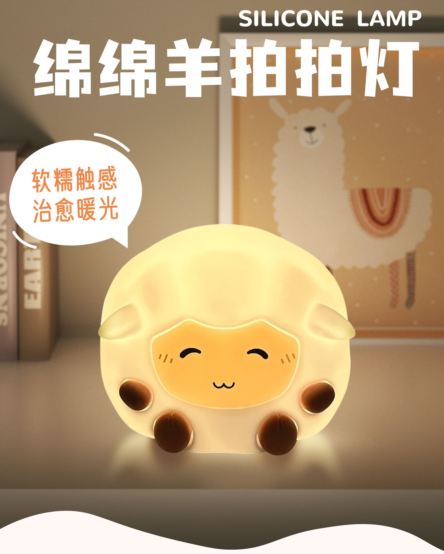 咩咩羊新款拍拍灯卡通创意氛围灯硅胶小夜灯便携式暖光卧室床头灯
