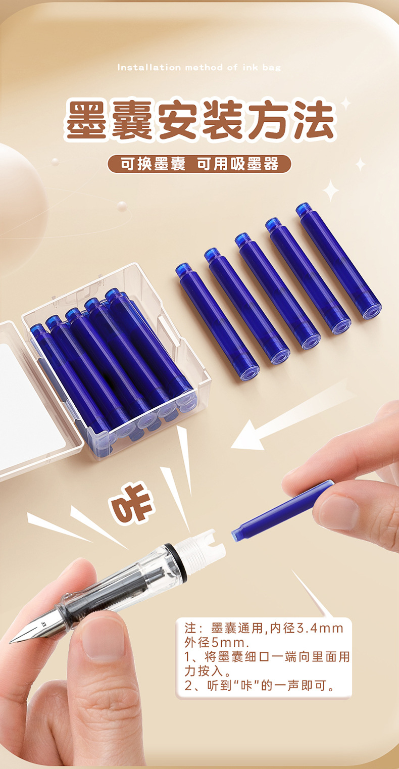 小学生三年级正姿钢笔高颜值可换墨囊的蓝黑墨水钢笔儿童练字专用
