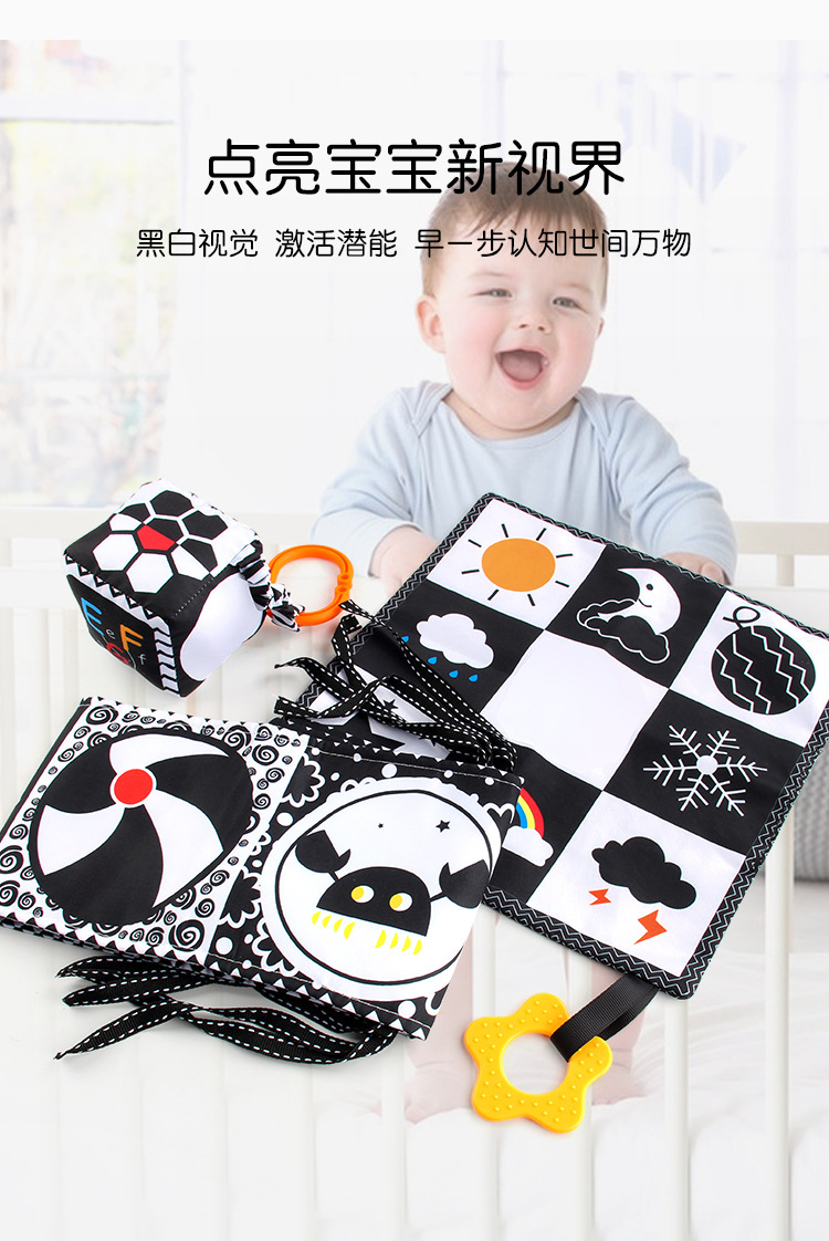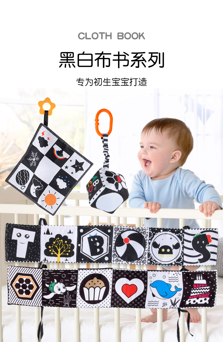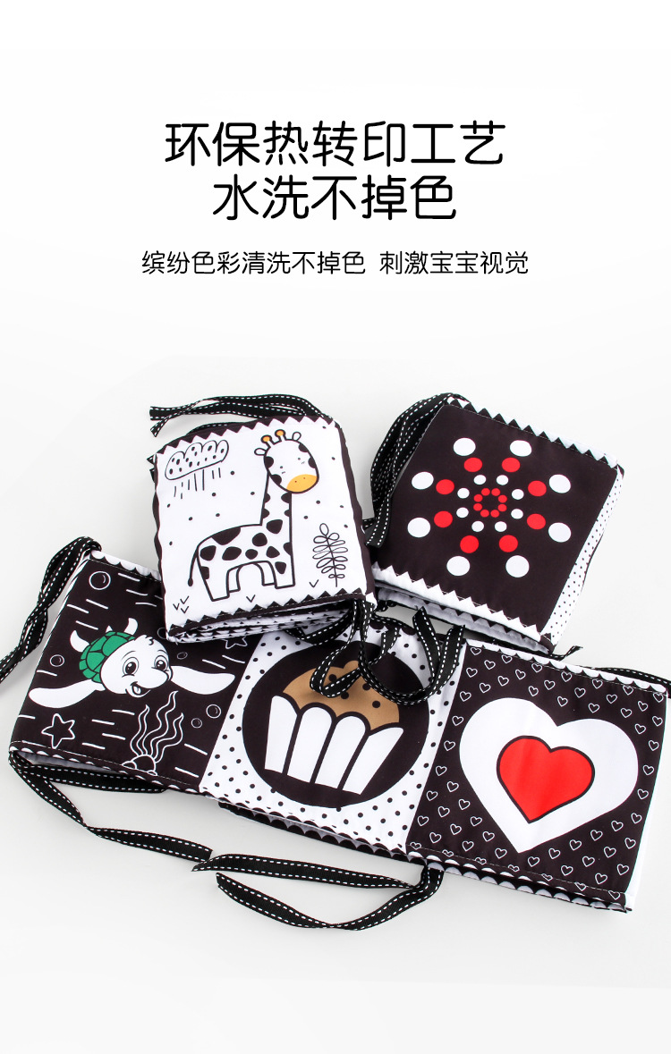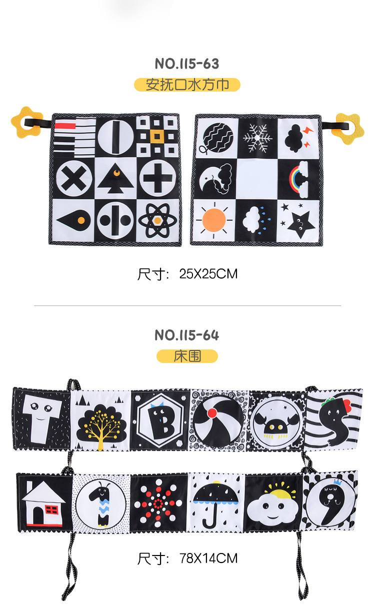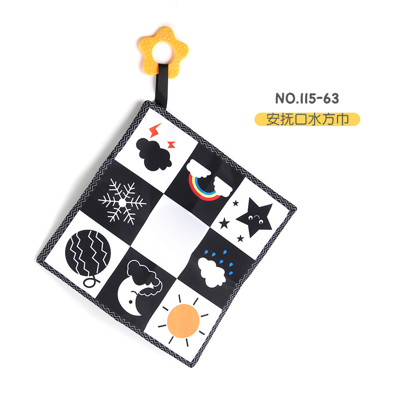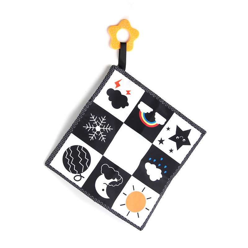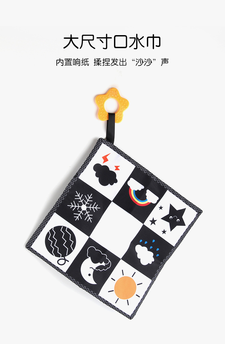 婴儿早教益智玩具双面黑白布书儿童床围挂件口水方巾认知形状布书