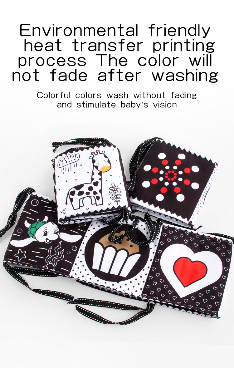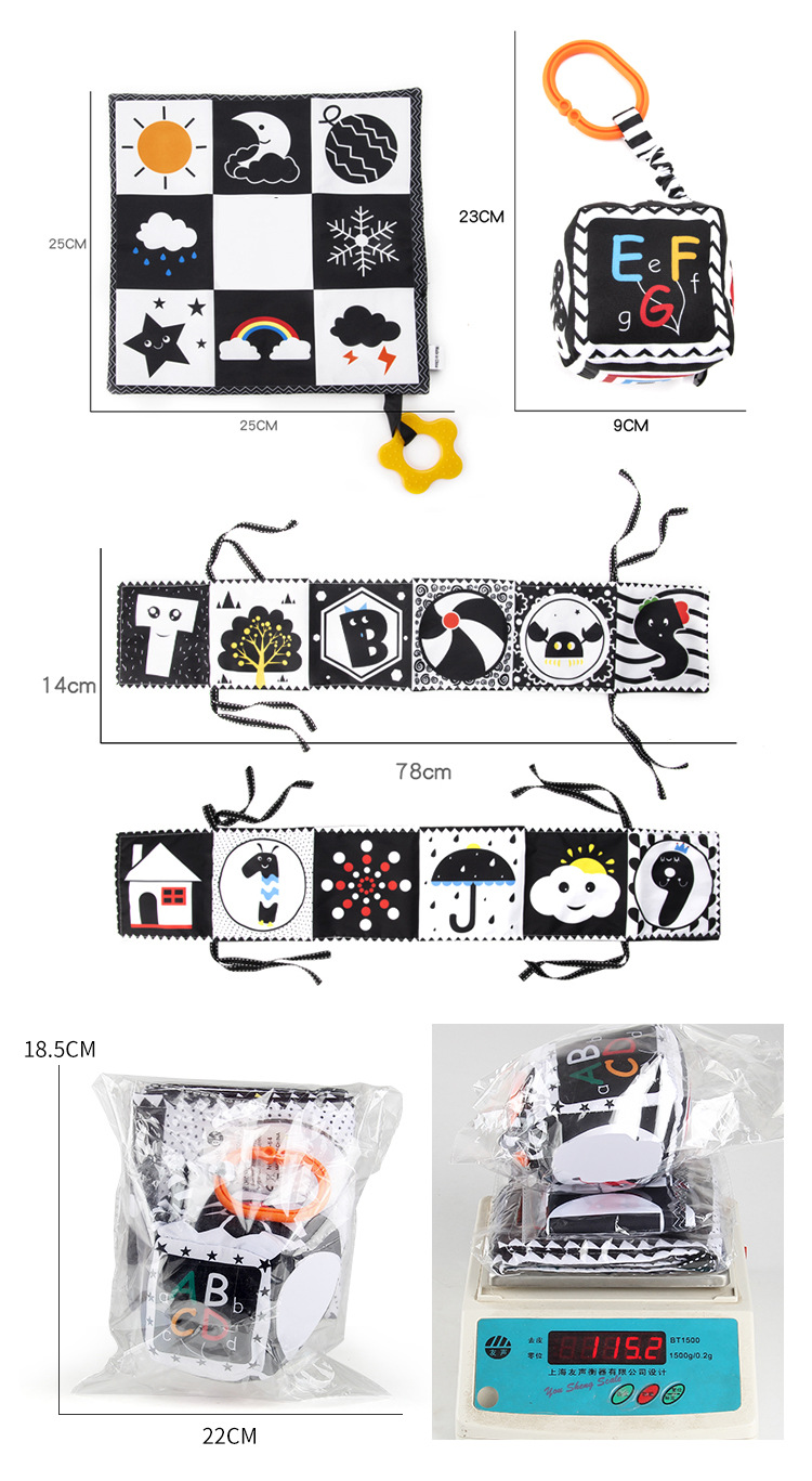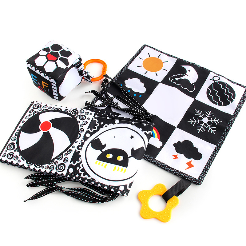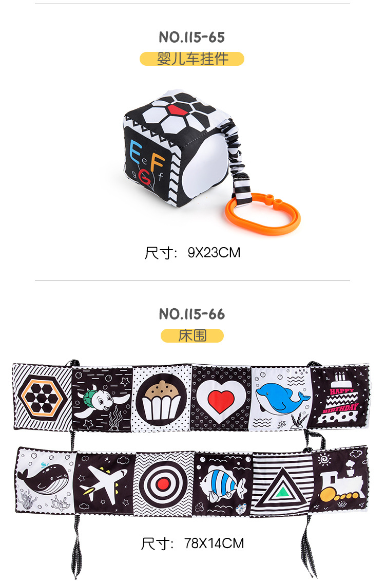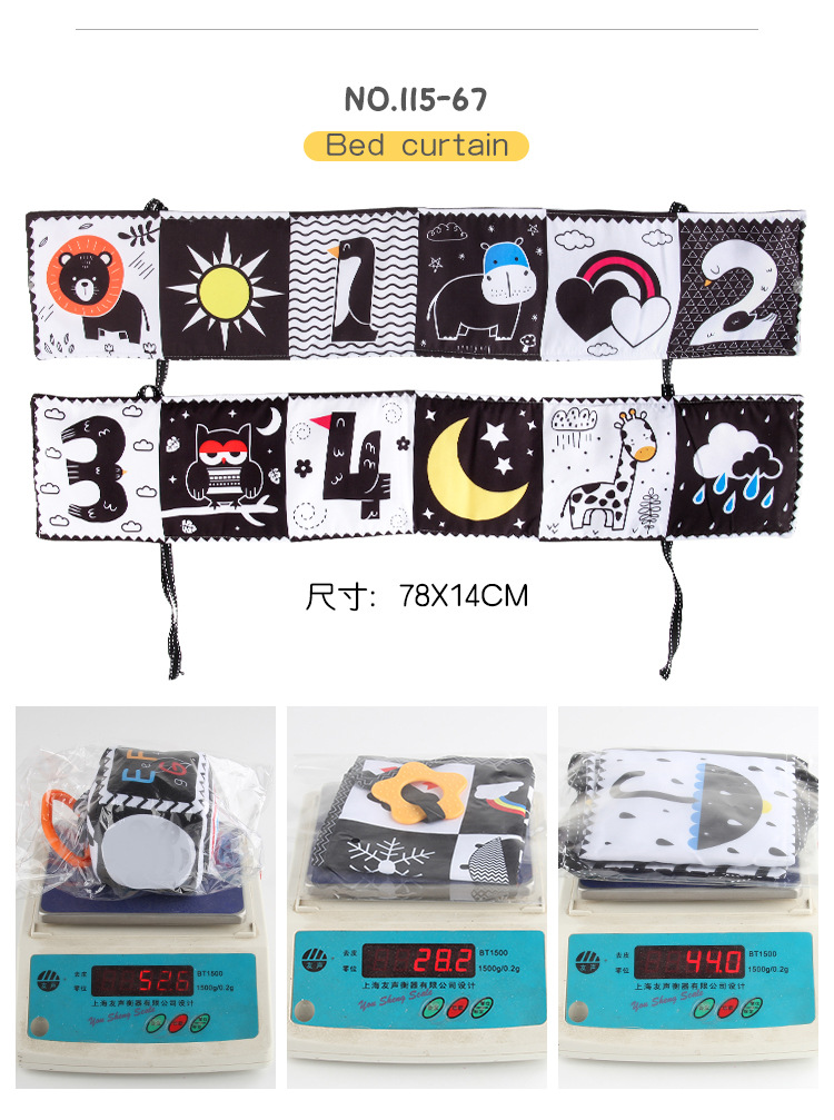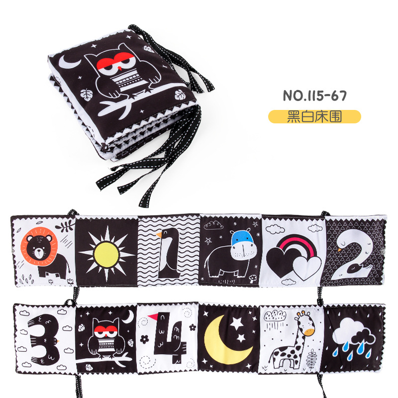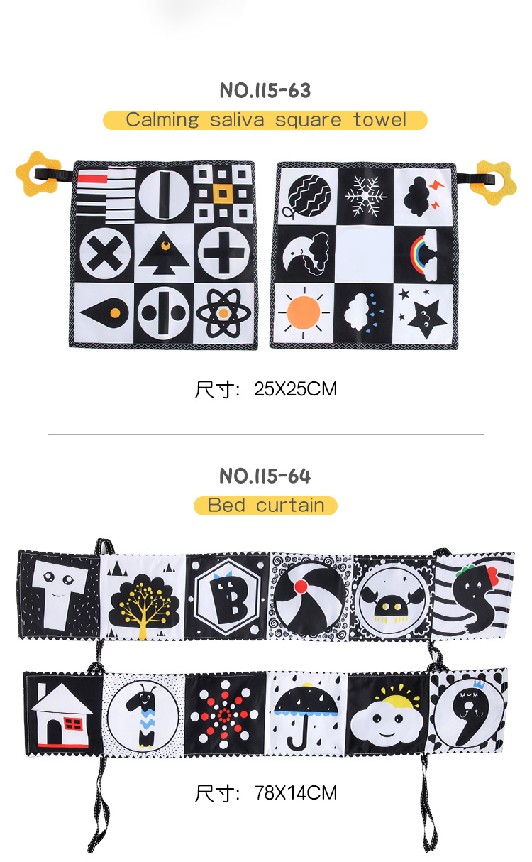 婴儿早教益智玩具双面黑白布书儿童床围挂件口水方巾认知形状布书
