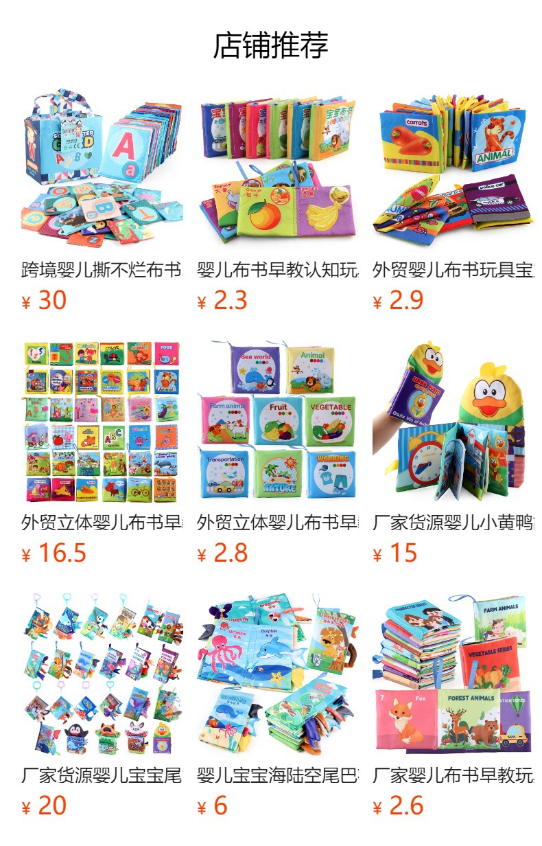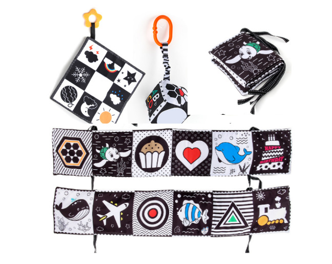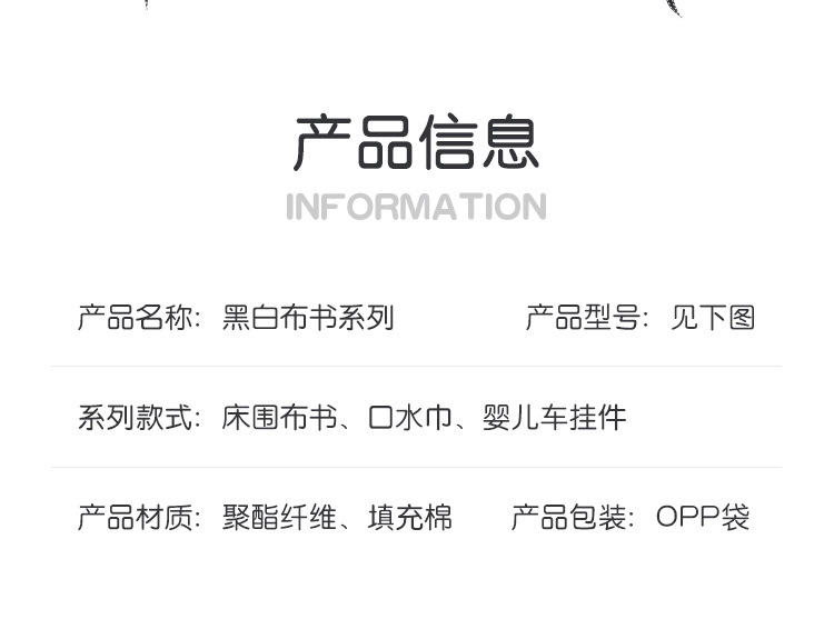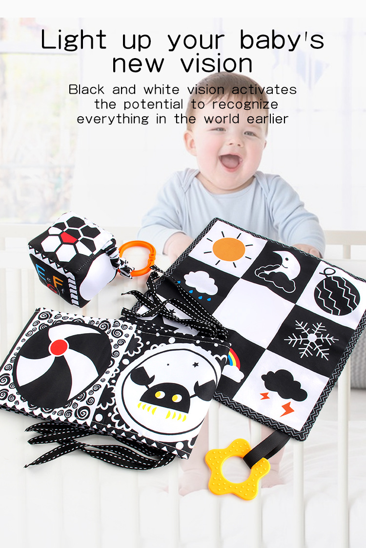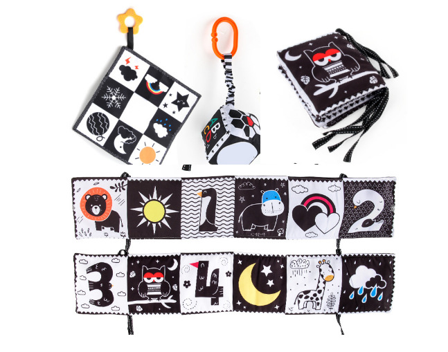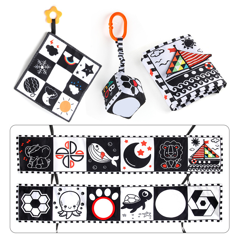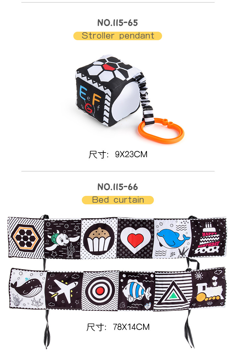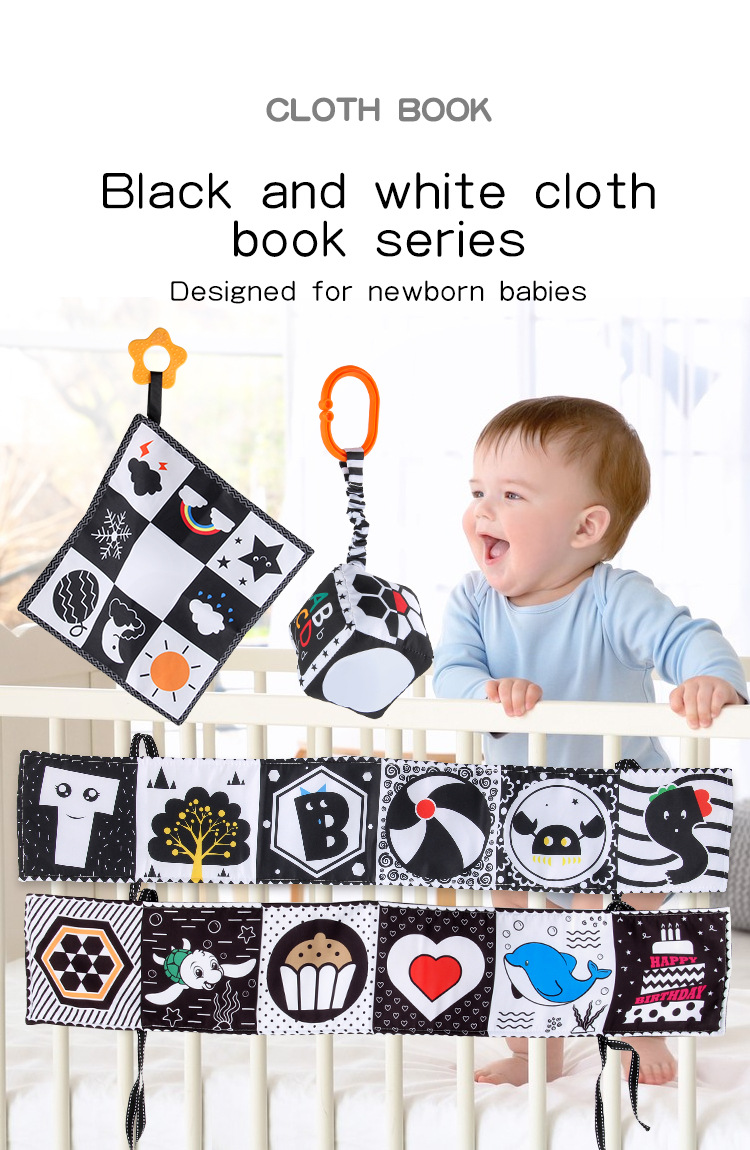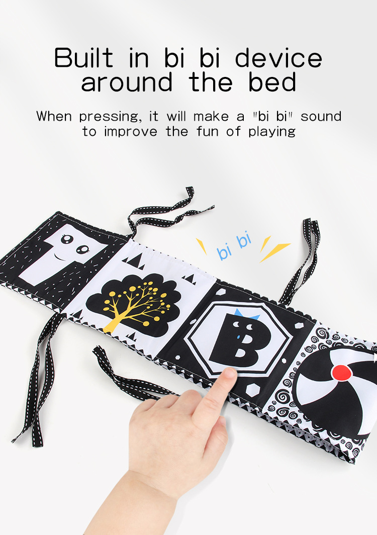 婴儿早教益智玩具双面黑白布书儿童床围挂件口水方巾认知形状布书