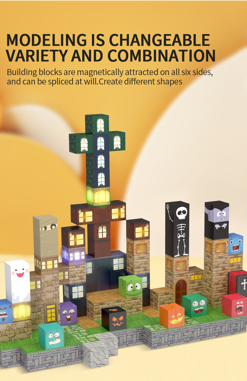 B168-825万圣节磁力方块套装(带灯光)137 pcs