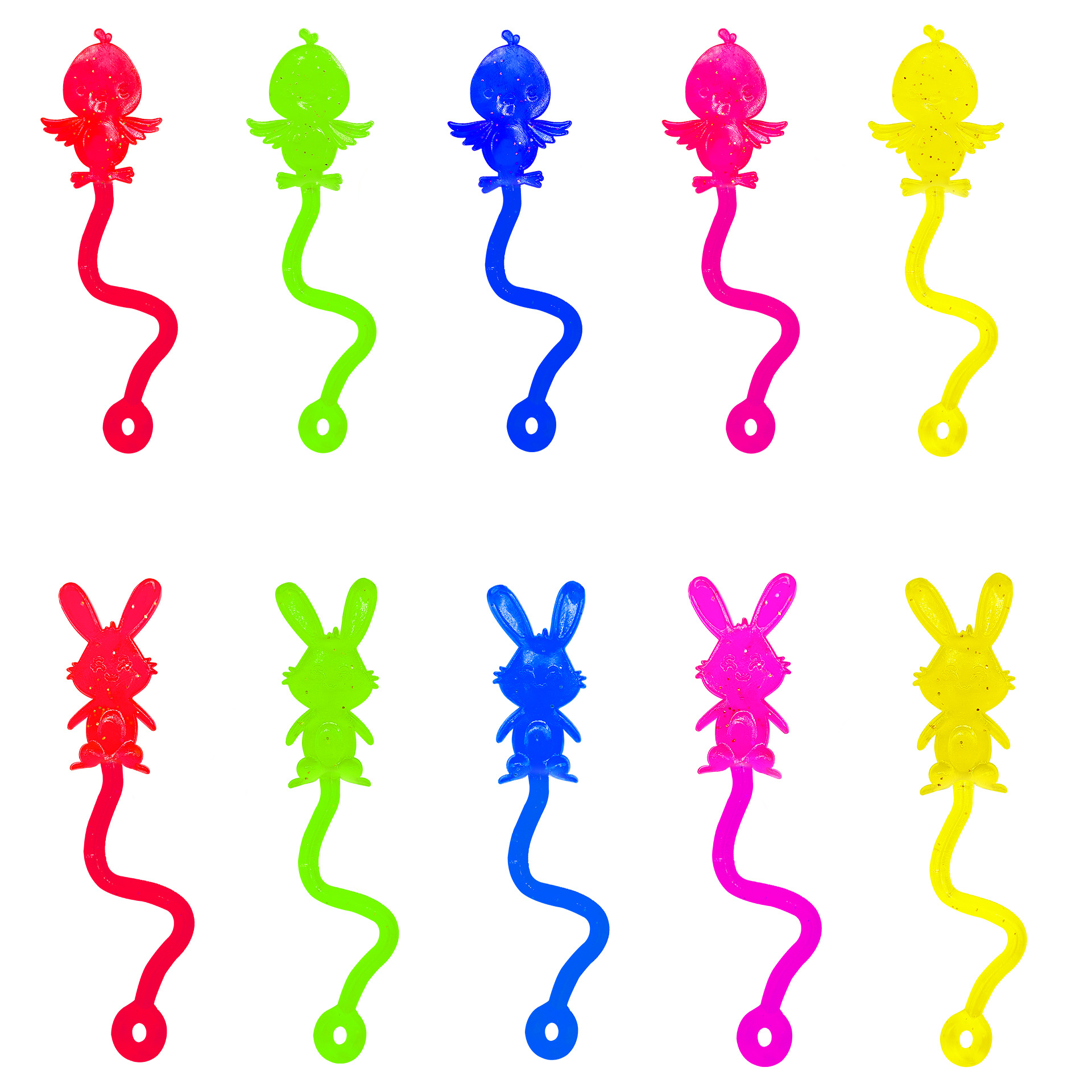 跨境弹性复活节兔子小鸡软胶玩具彩色金葱金粉创意爬墙粘性小玩具