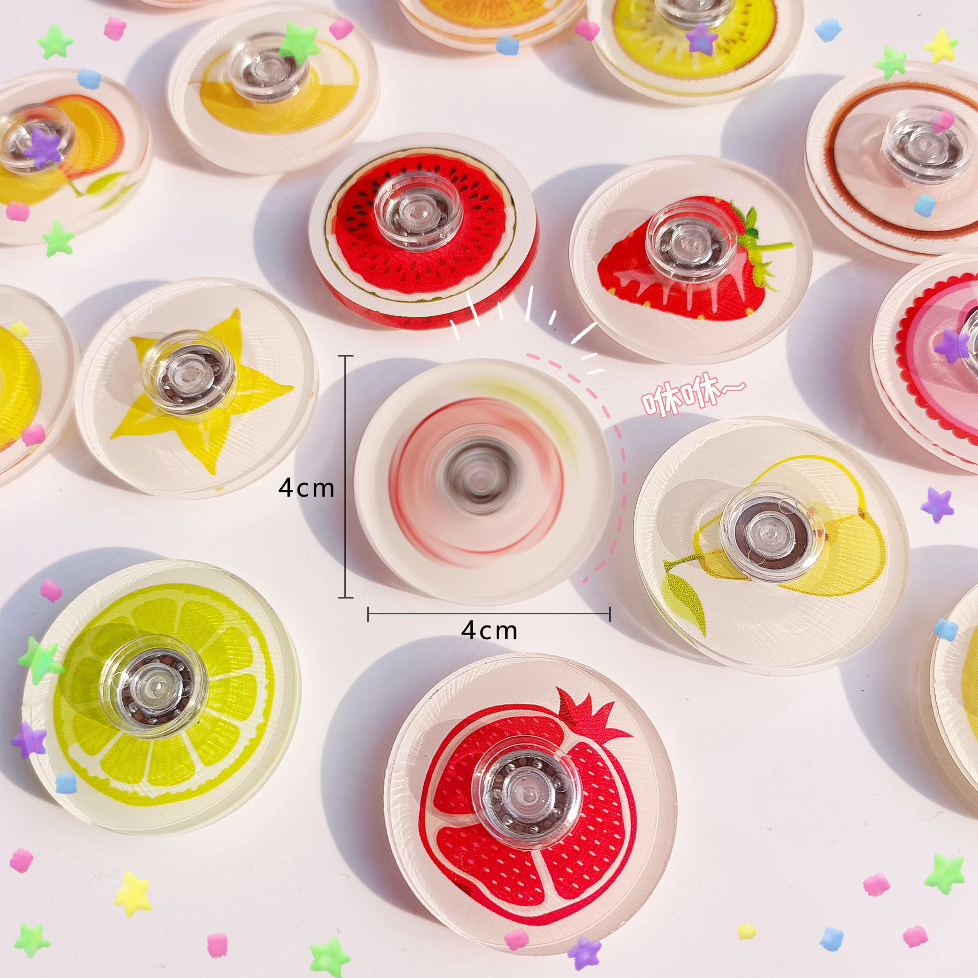 创意指尖陀螺亚克力水果手指陀螺蛋壳配件益智解压玩具小礼品批发 English | 投诉