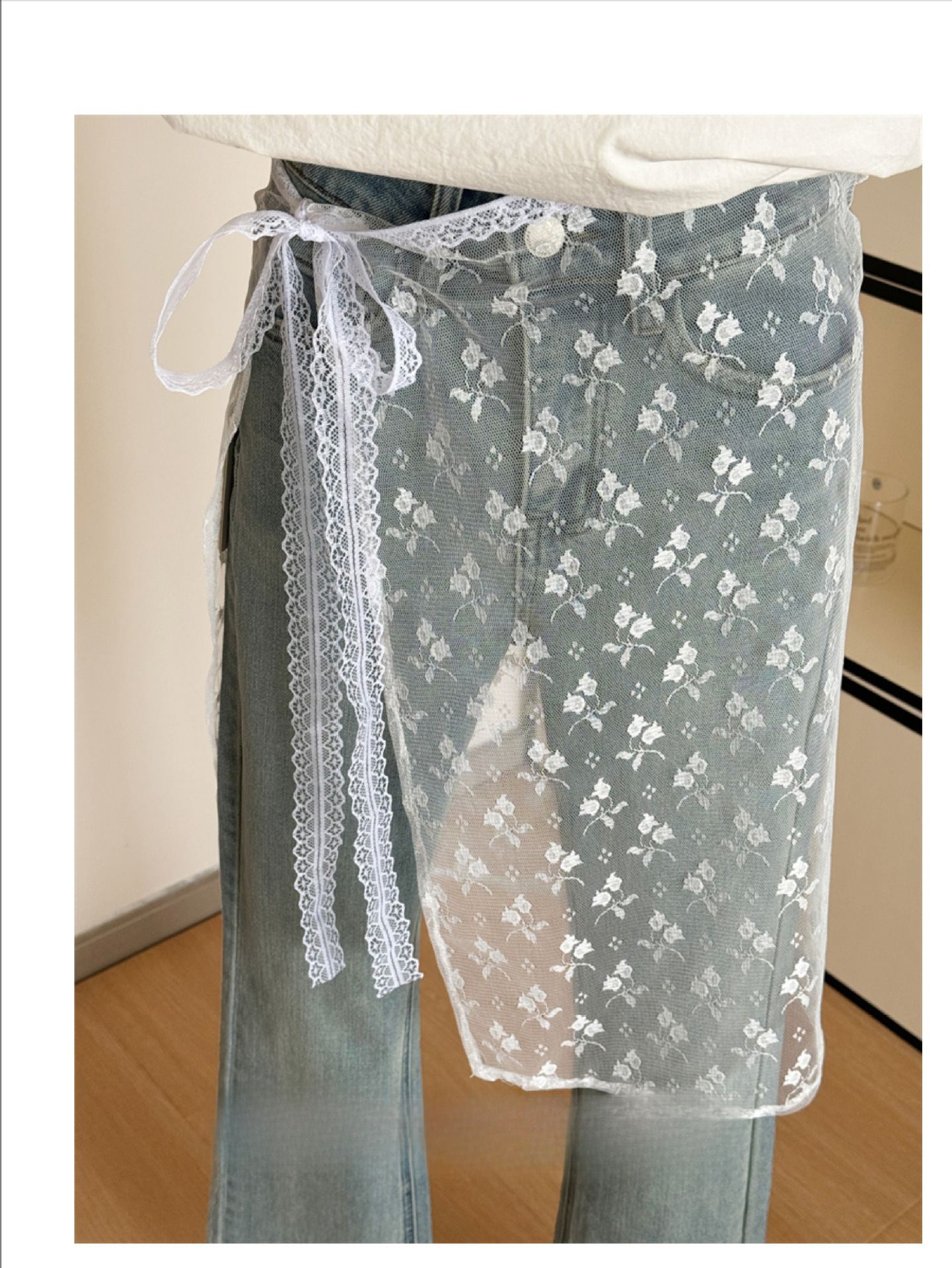 春季新款蕾丝裙帘罩叠穿裙层次感搭配半身裙围裙屁帘网纱碎花裙子 投诉
